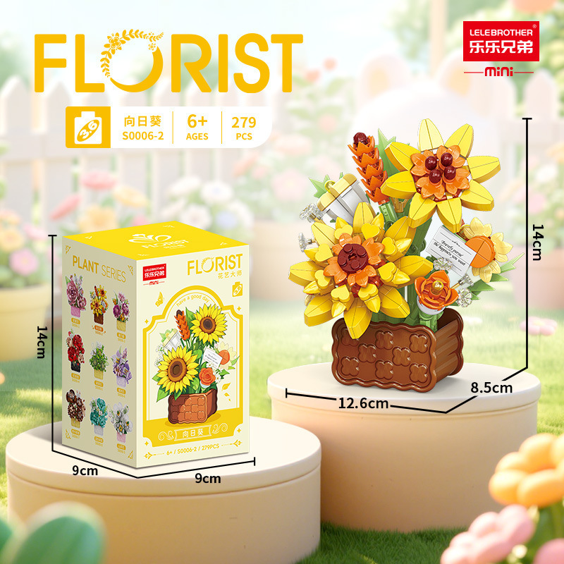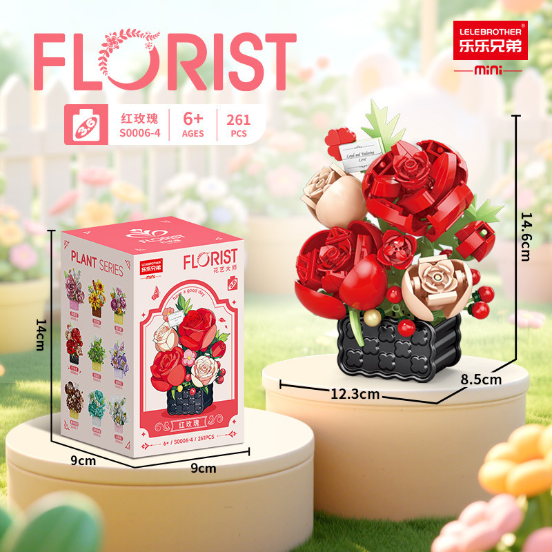 Lele Brothers S0005 고기 화분 영원한 꽃 시리즈 어린이 날 절묘한 데스크탑 장식품 빌딩 블록 도매스토어 가기