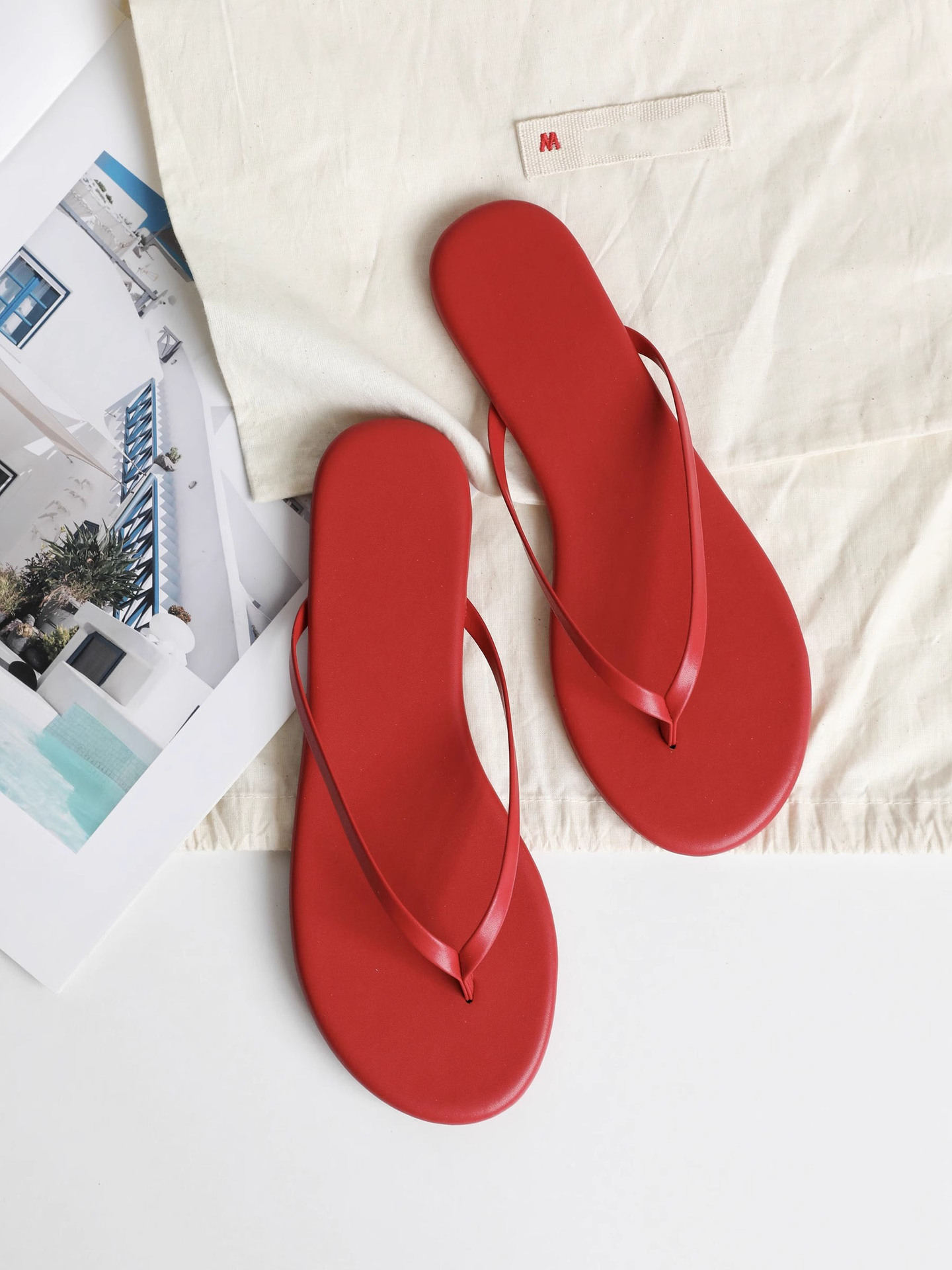 2025 여름 미니멀리스트 플립플롭, 부드럽고 편안한 플랫 슬리퍼, 캐주얼한 아우터용, 진짜 부드러운 가죽 샌들