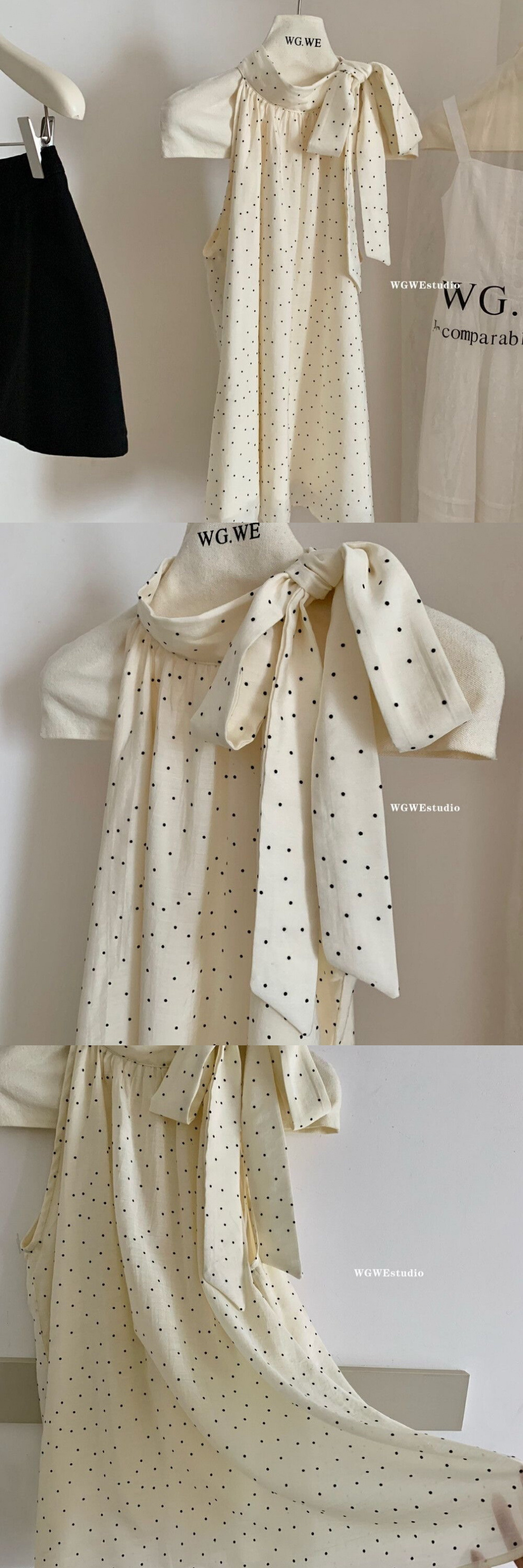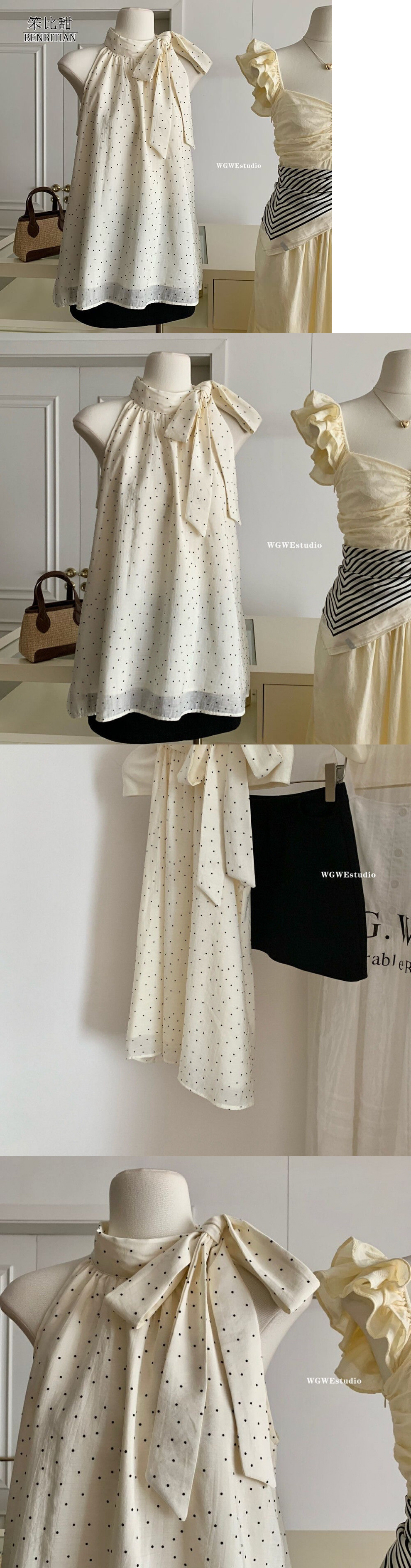 여름 여성을 위한 프렌치 레이스업 보우 홀터넥 민소매 셔츠, 상큼한 폴카 도트 슈퍼 요정 조끼, 루즈하고 스타일리시한 탑스토어 가기