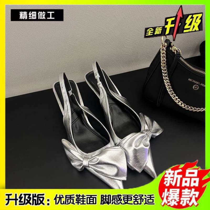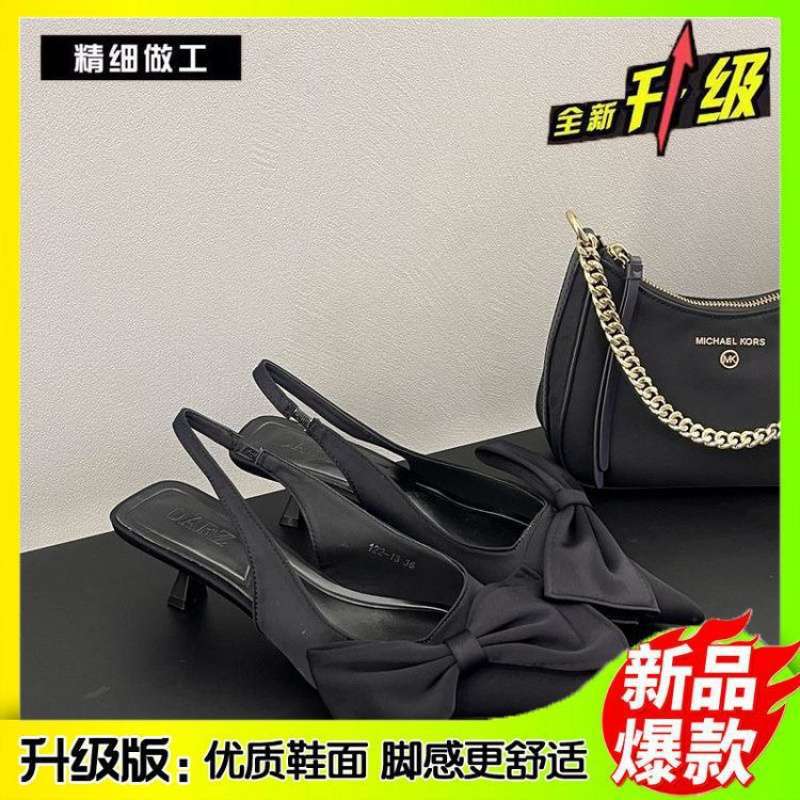 2025 봄 여름 신작 리본 포인티드 토 스틸레토 미드힐 싱글 슈즈 하이힐 펌프스 여성화 스위트 스타일 데일리웨어