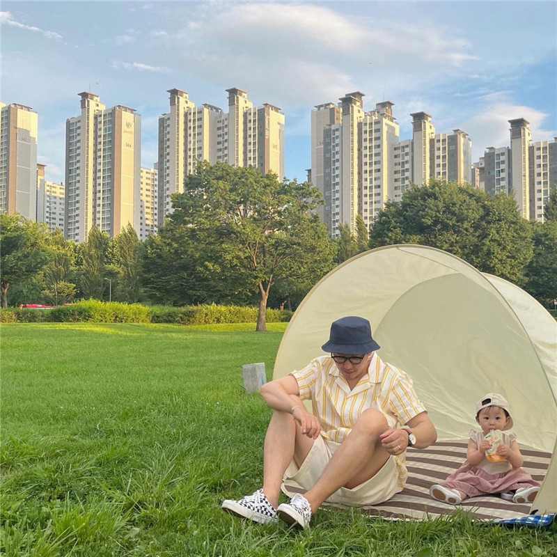 한국의 편리한 어린이 텐트 야외 캠핑 1초 속도로 열리는 초대형 공간 차양 해변 텐트스토어 가기