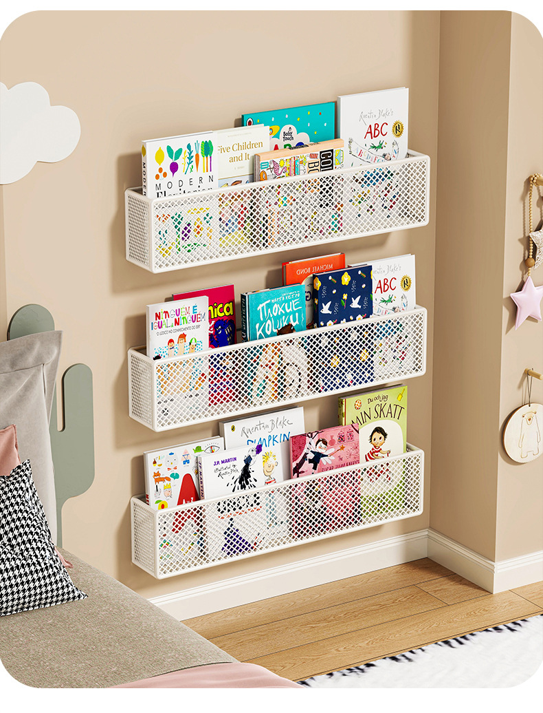 그림책 수납선반, 어린이 책장, 벽걸이형 간이 디스플레이선반, 문 뒤 책벽면, 펀치 없는 수납선반