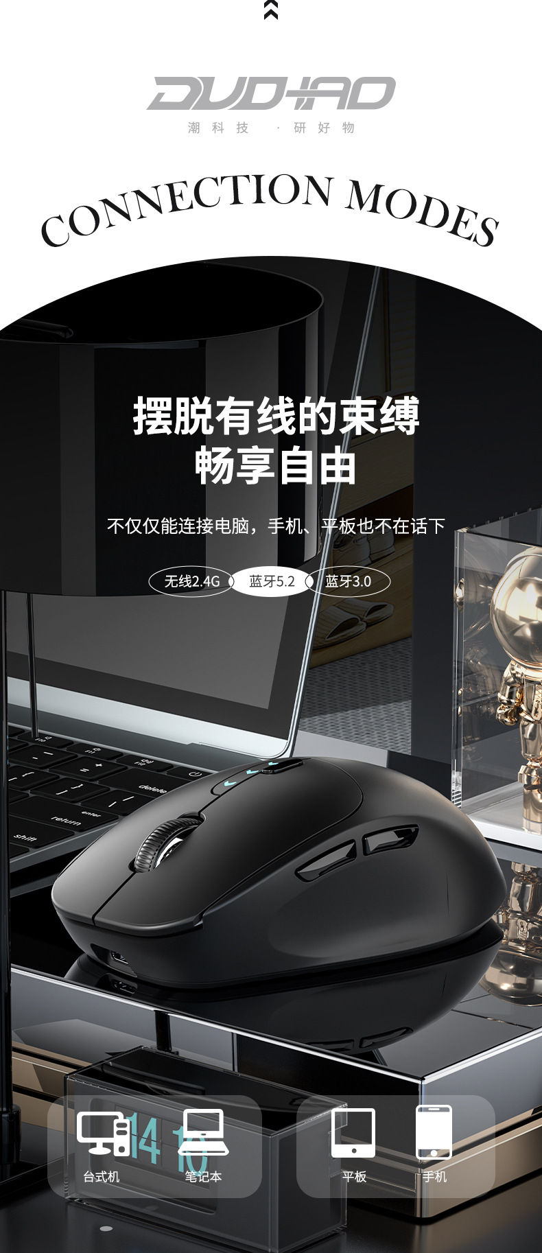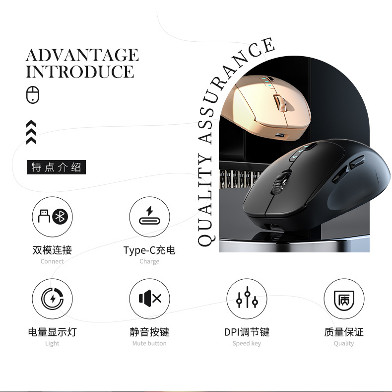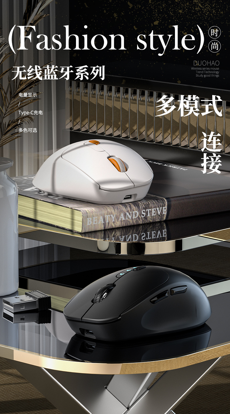 블루투스 듀얼 모드 무선 충전 마우스 세련된 다채로운 전원 디스플레이 노트북 빛나는 자동 무선 마우스