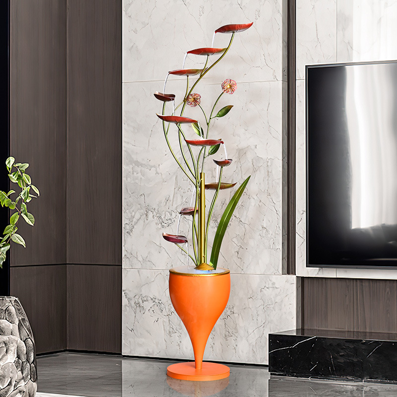 흐르는 물 장식품, 현대식 풍수 휠, 순환하는 물, 가벼운 럭셔리 거실 바닥 장식, 개업 선물, TV 캐비닛 옆에 분수