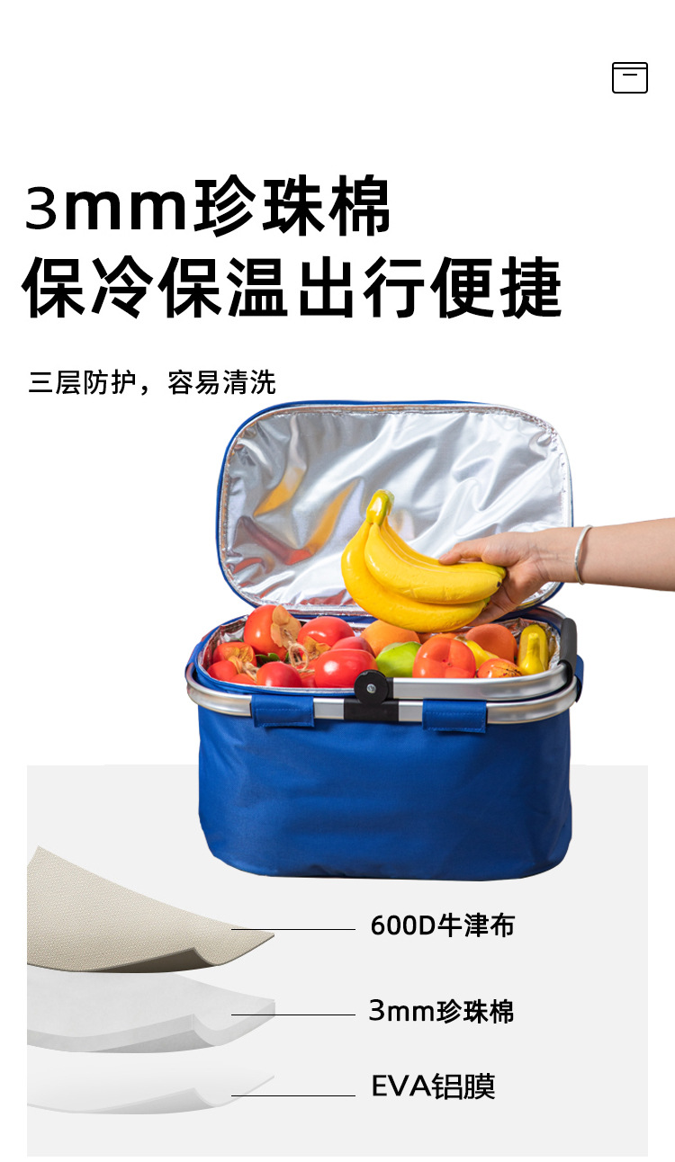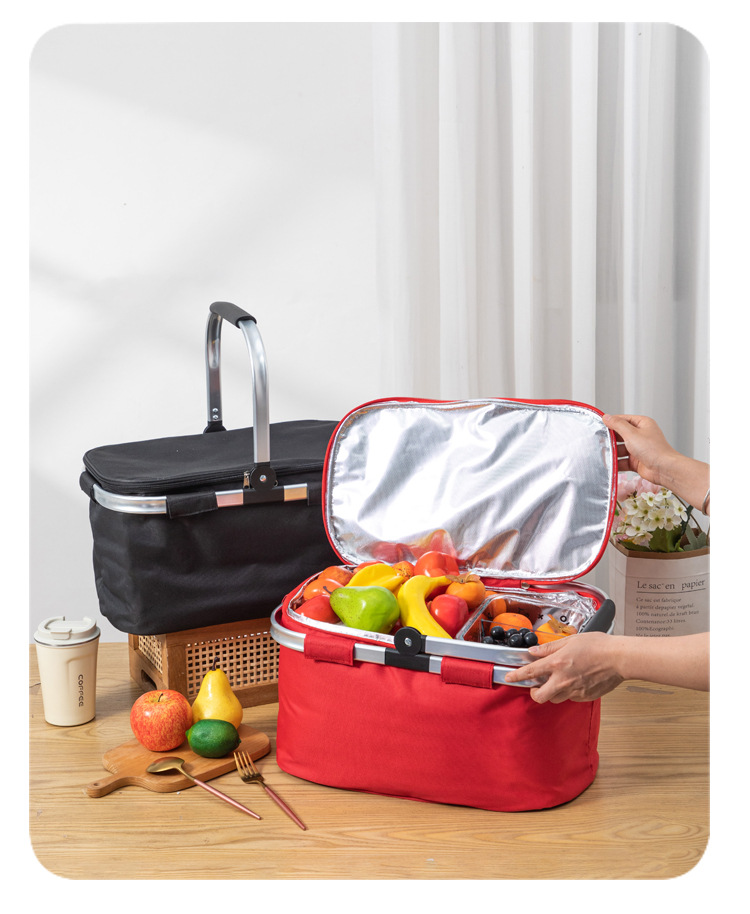 국경 간 새로운 피크닉 바구니 접이식 야외 캠핑 절연 냉장 가방 두꺼운 쇼핑 휴대용 바구니 절연 가방스토어 가기