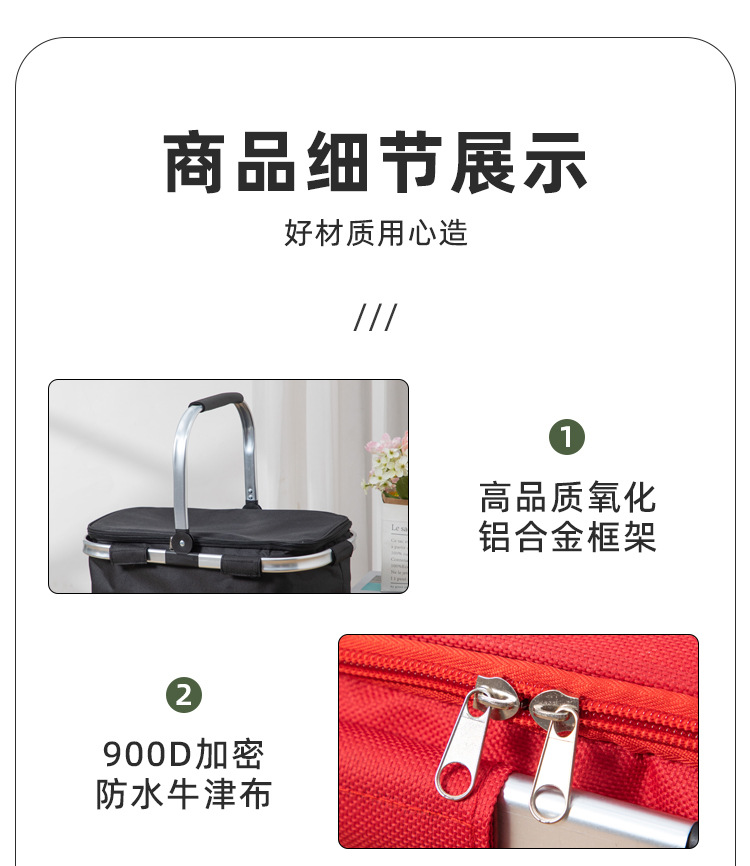 국경 간 새로운 피크닉 바구니 접이식 야외 캠핑 절연 냉장 가방 두꺼운 쇼핑 휴대용 바구니 절연 가방
