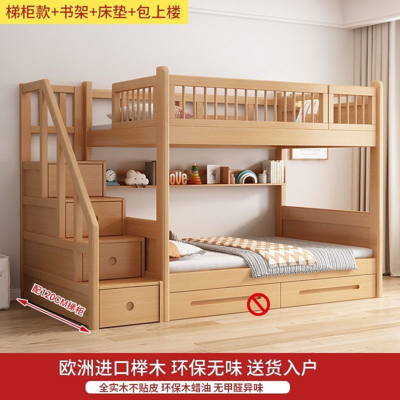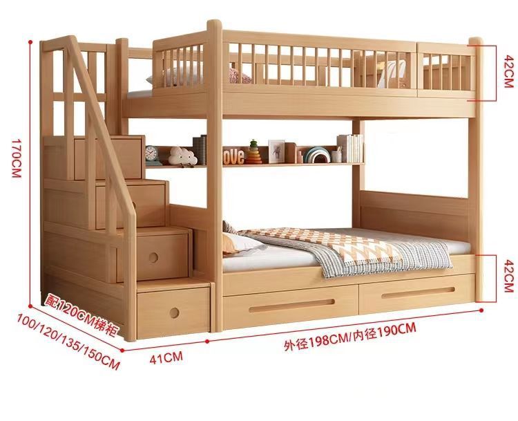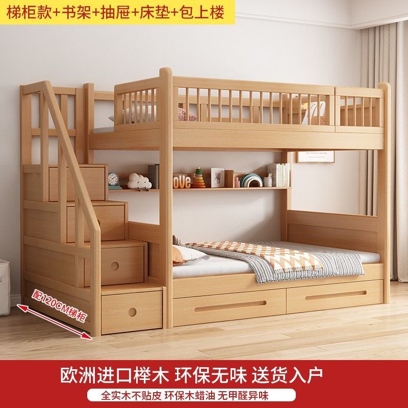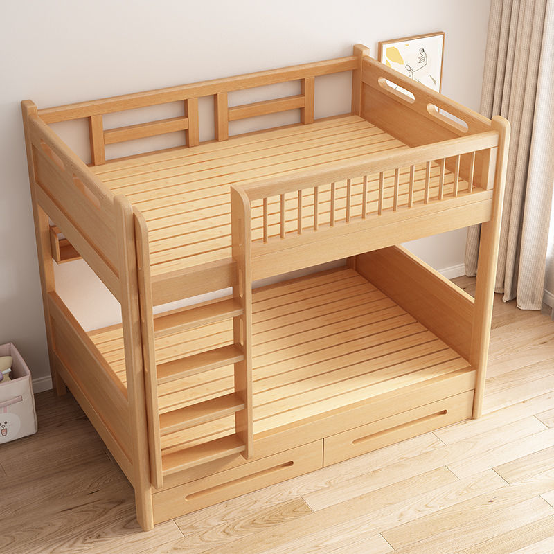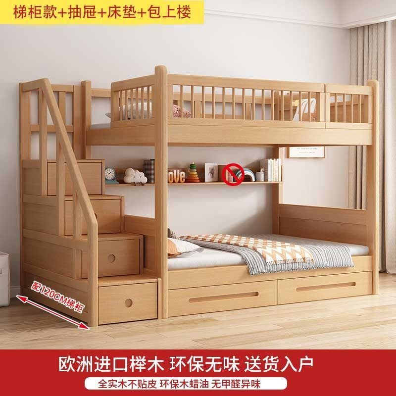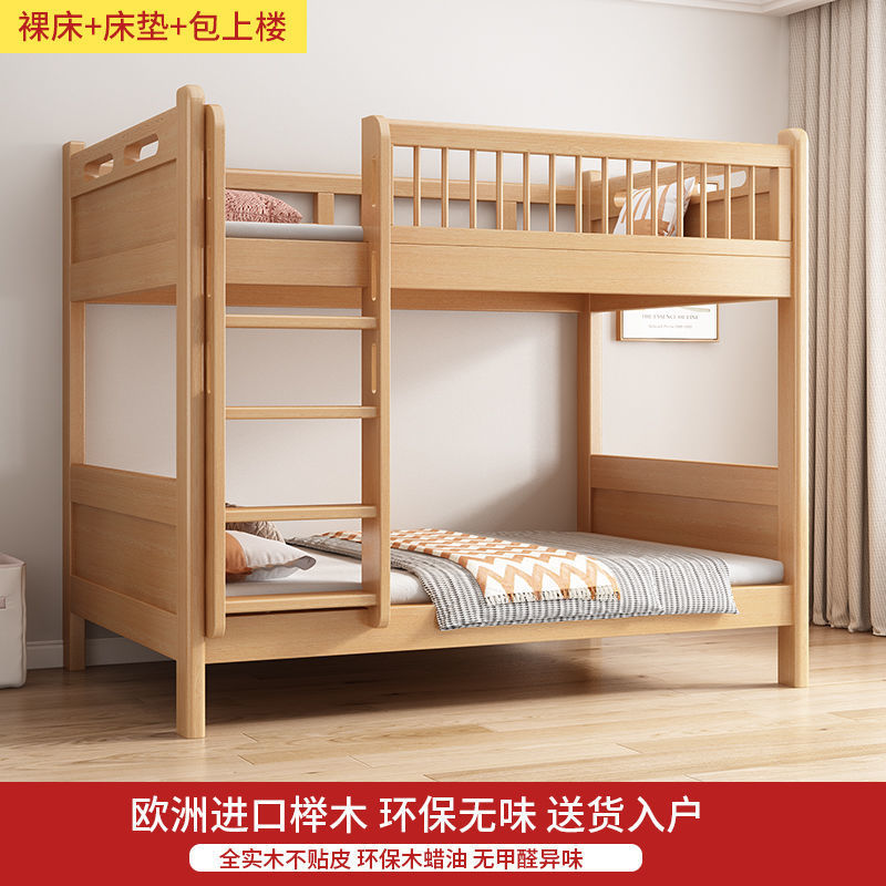 공장 직접 판매 너도밤나무 기숙사 침대 이층 침대 동일한 너비의 이층 침대 전체 단단한 나무 이층 어린이 침대 높낮이 이층 침대