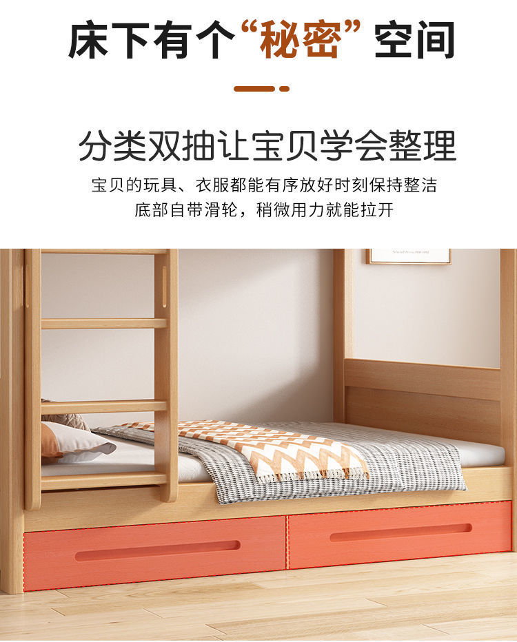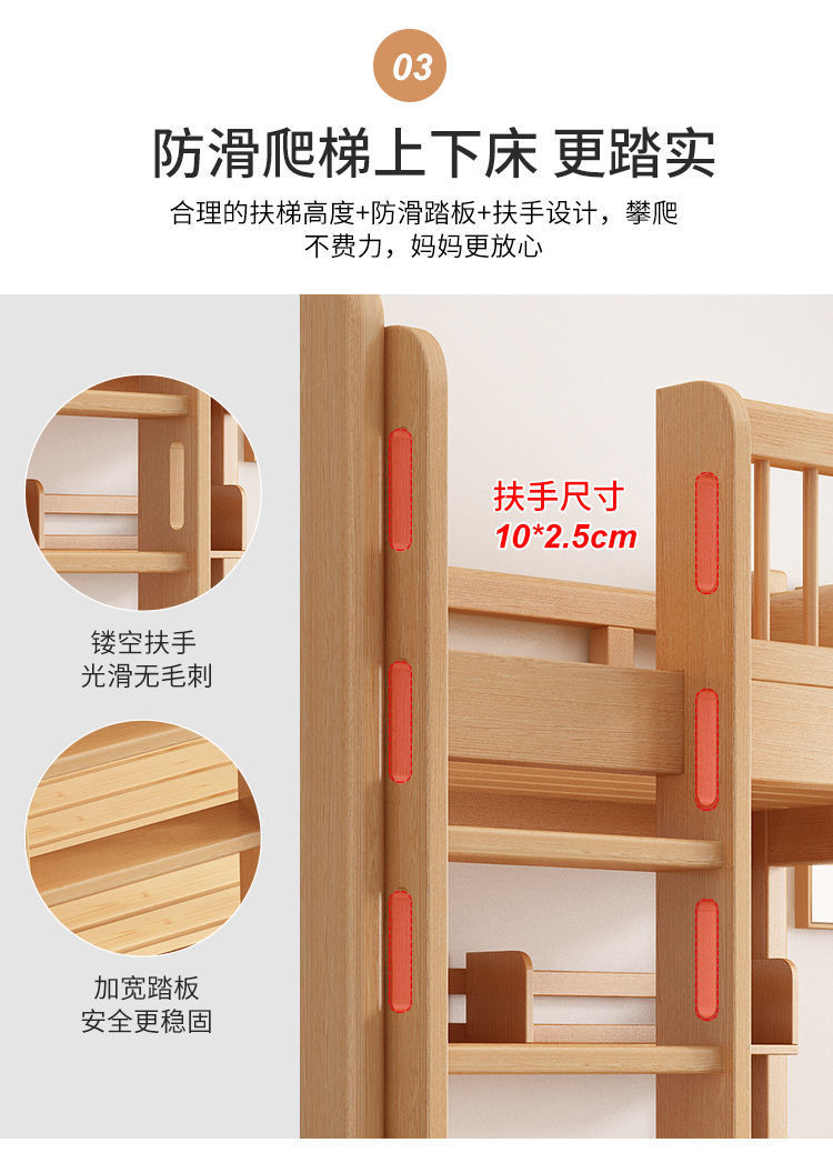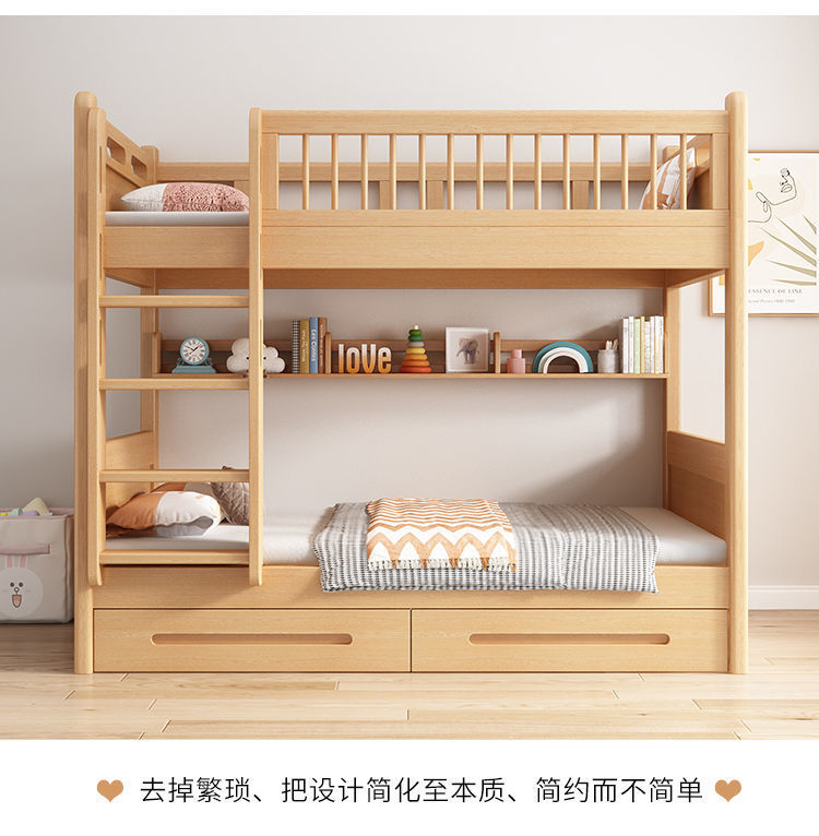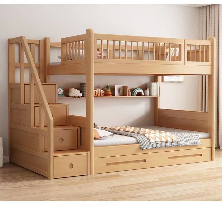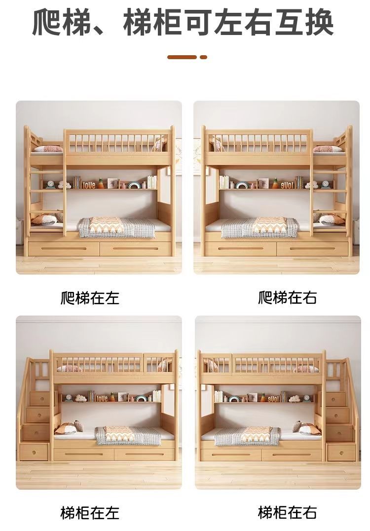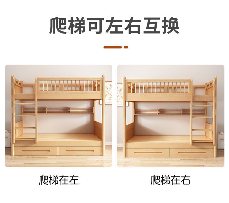 공장 직접 판매 너도밤나무 기숙사 침대 이층 침대 동일한 너비의 이층 침대 전체 단단한 나무 이층 어린이 침대 높낮이 이층 침대