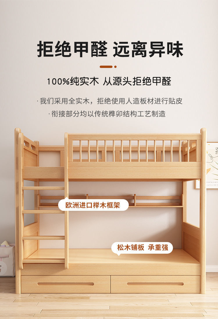 공장 직접 판매 너도밤나무 기숙사 침대 이층 침대 동일한 너비의 이층 침대 전체 단단한 나무 이층 어린이 침대 높낮이 이층 침대스토어 가기