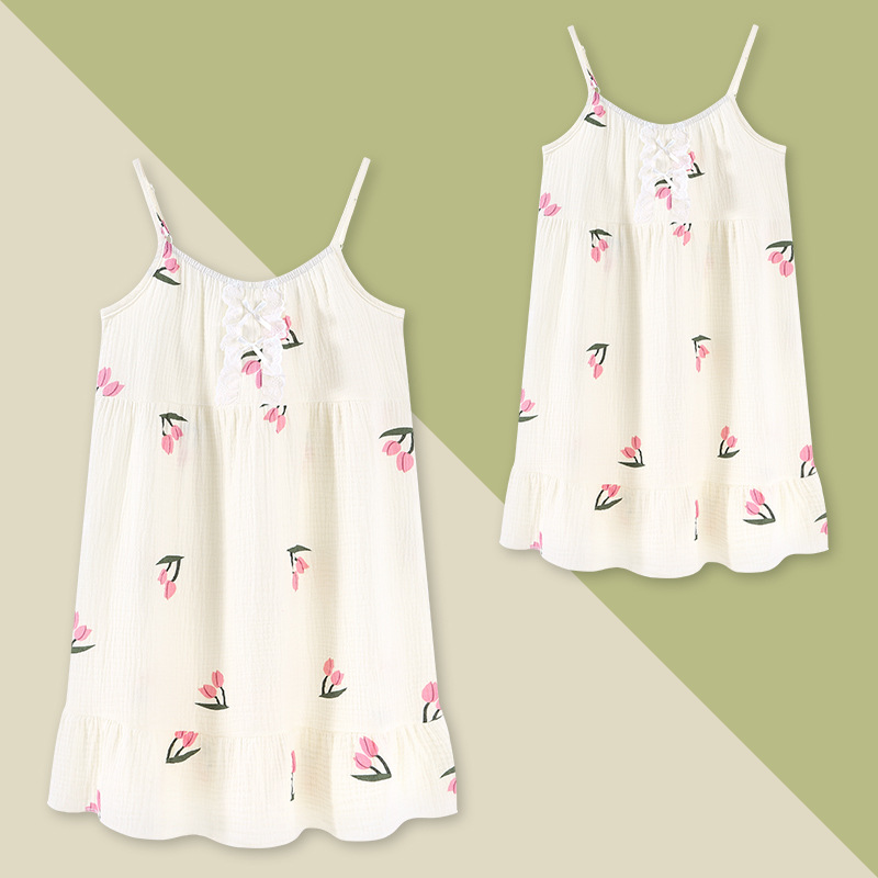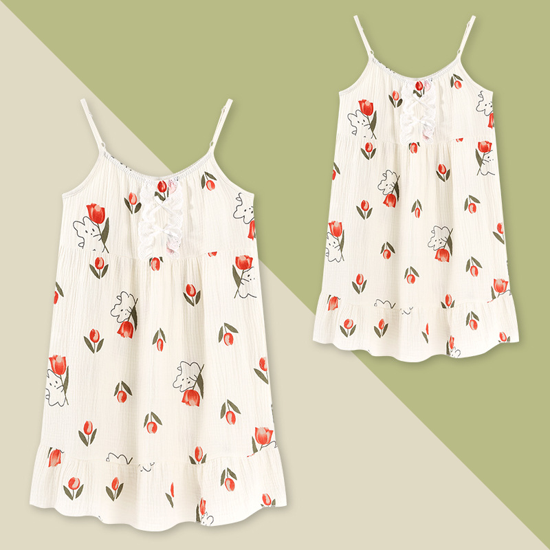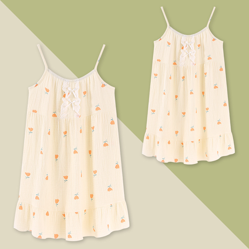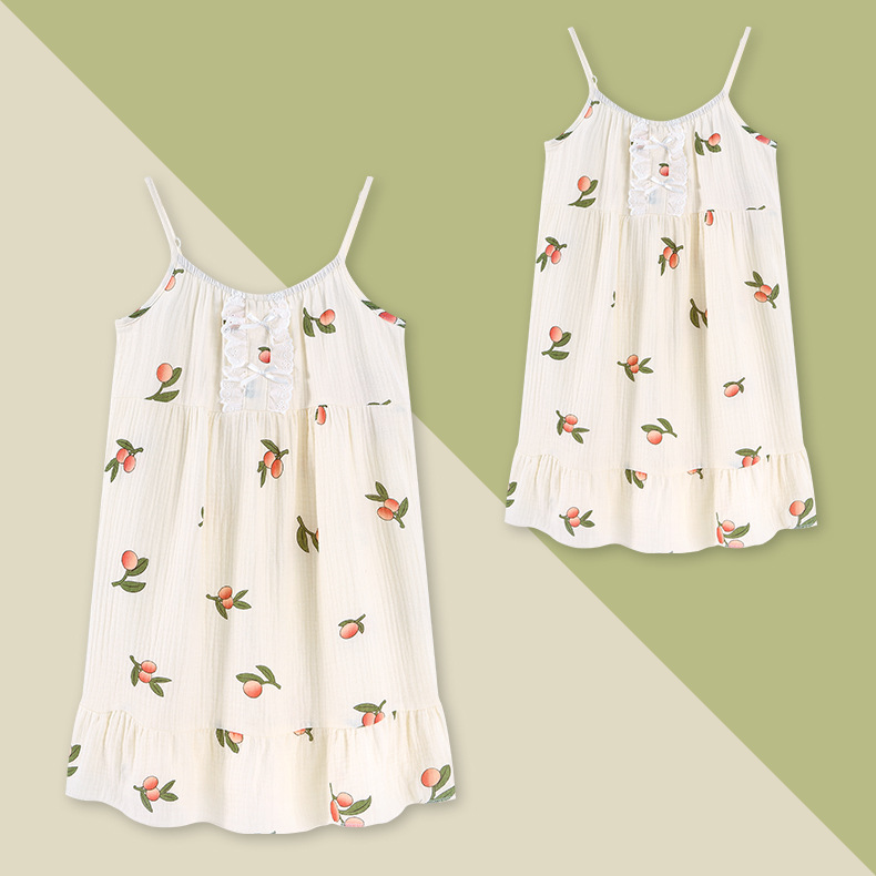 여자 서스펜더 잠옷 순수 코튼 더블 레이어 거즈 서스펜더 여자 코튼 거즈 목가적 인 공주 캐주얼 잠옷 홈웨어 여름