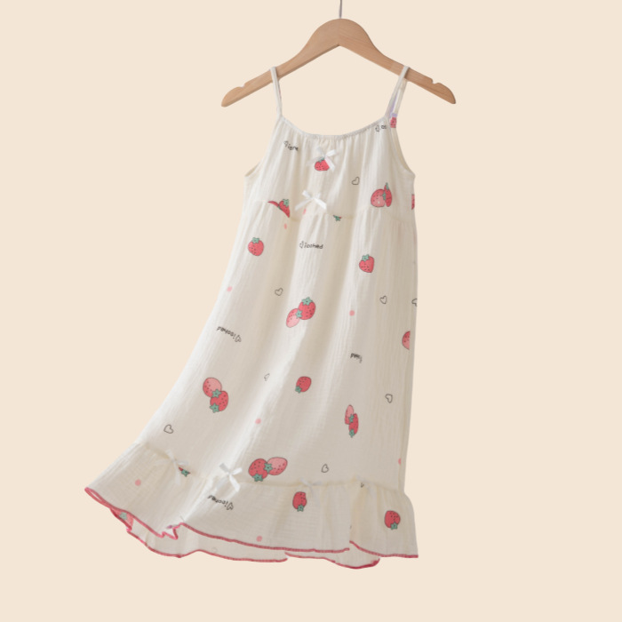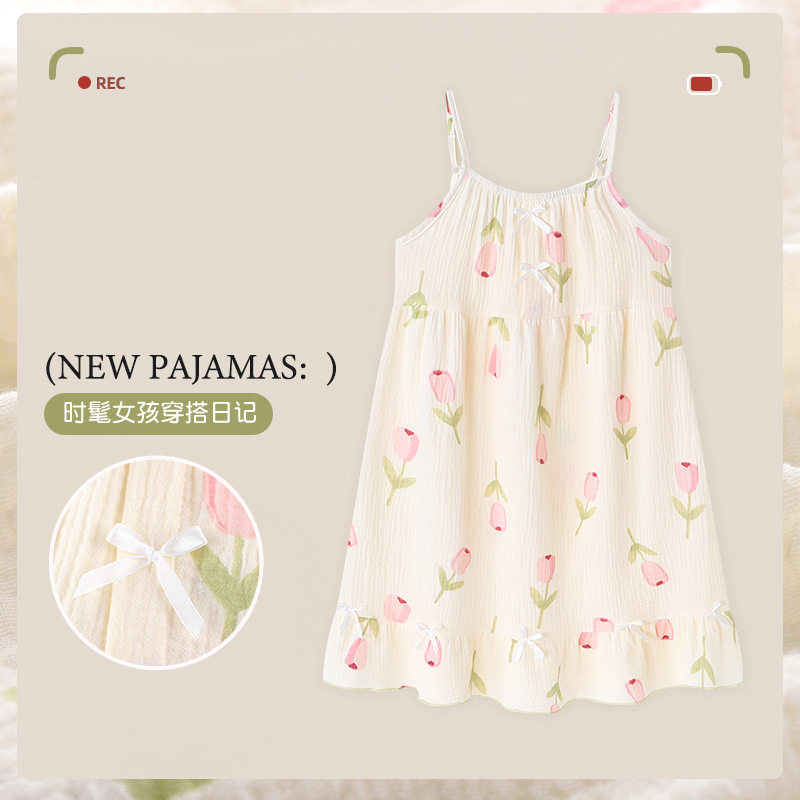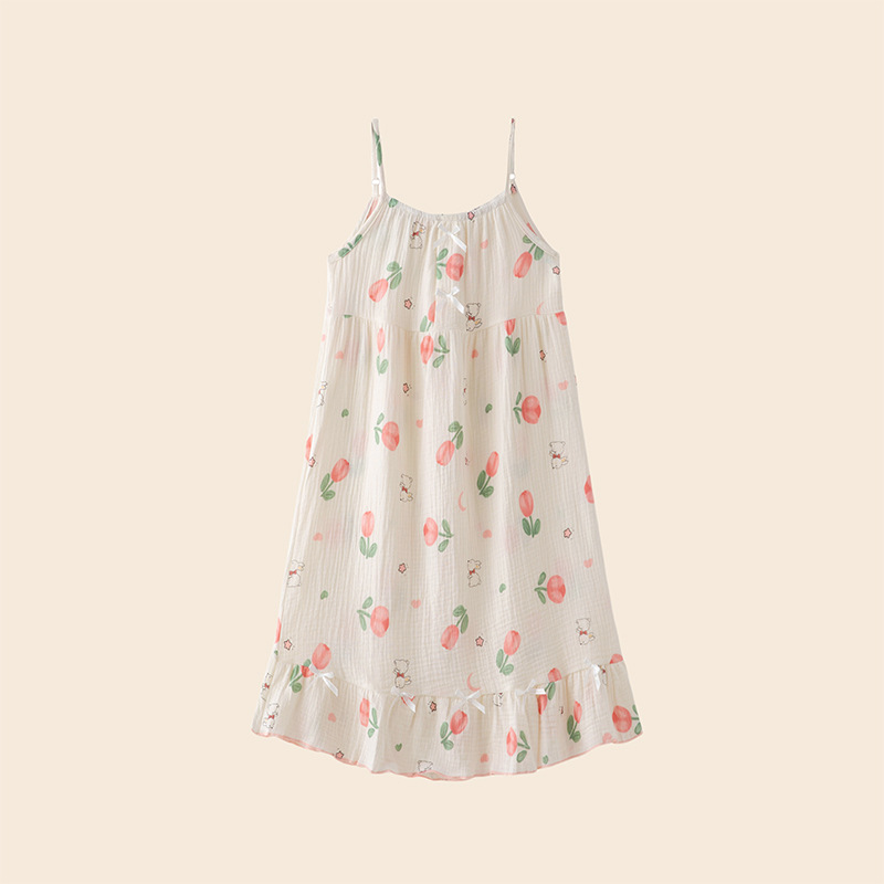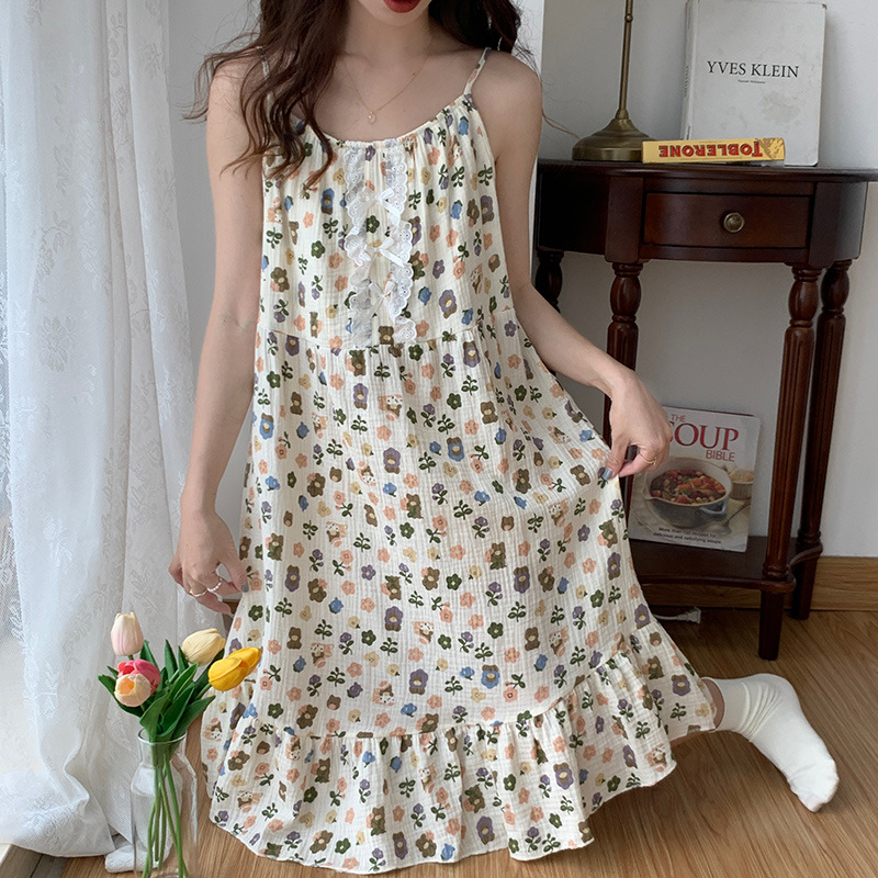 여자 서스펜더 잠옷 순수 코튼 더블 레이어 거즈 서스펜더 여자 코튼 거즈 목가적 인 공주 캐주얼 잠옷 홈웨어 여름스토어 가기