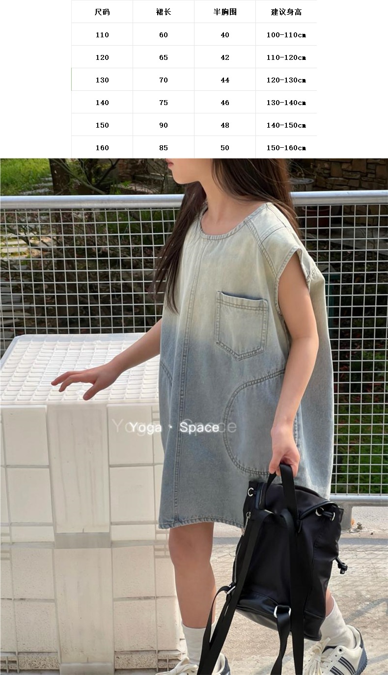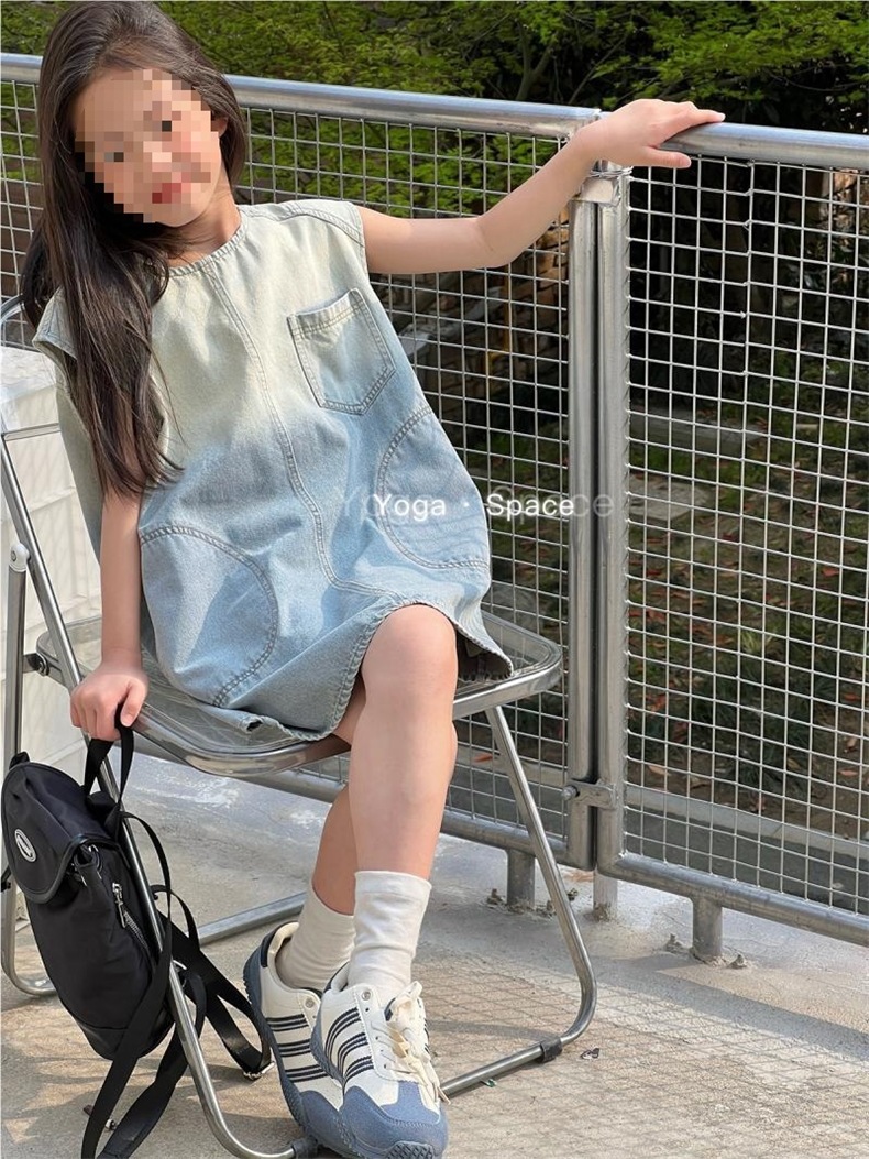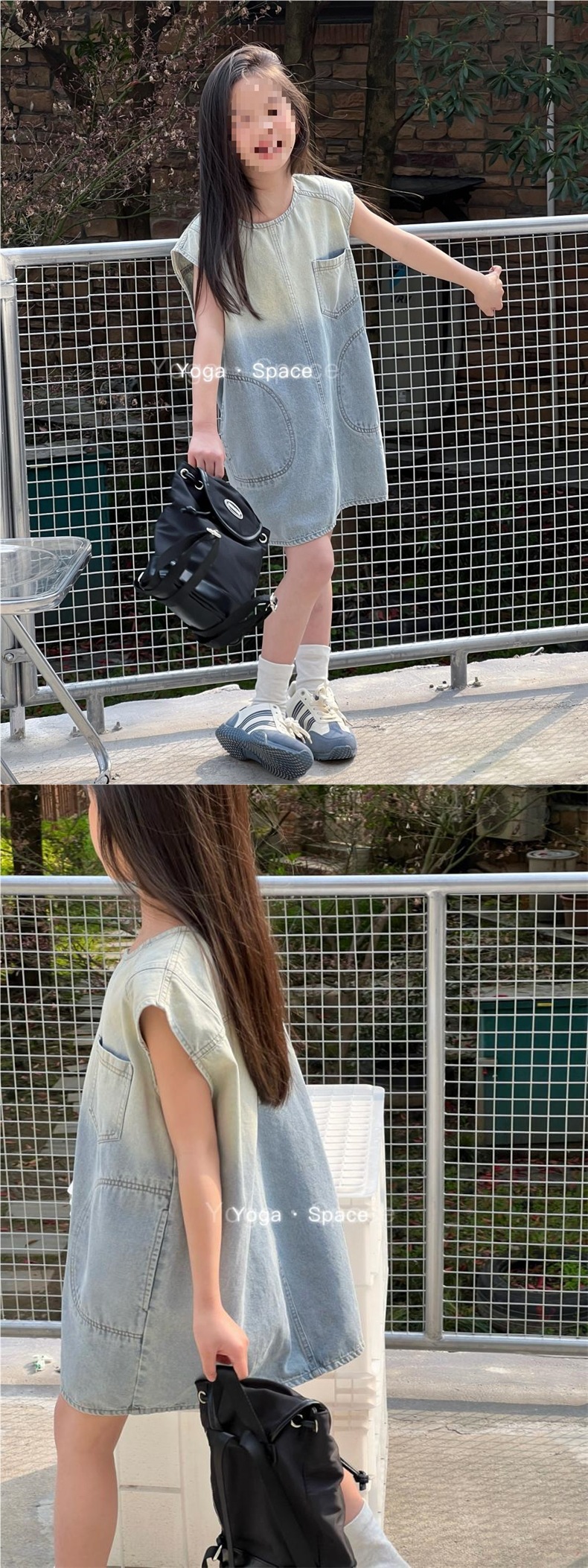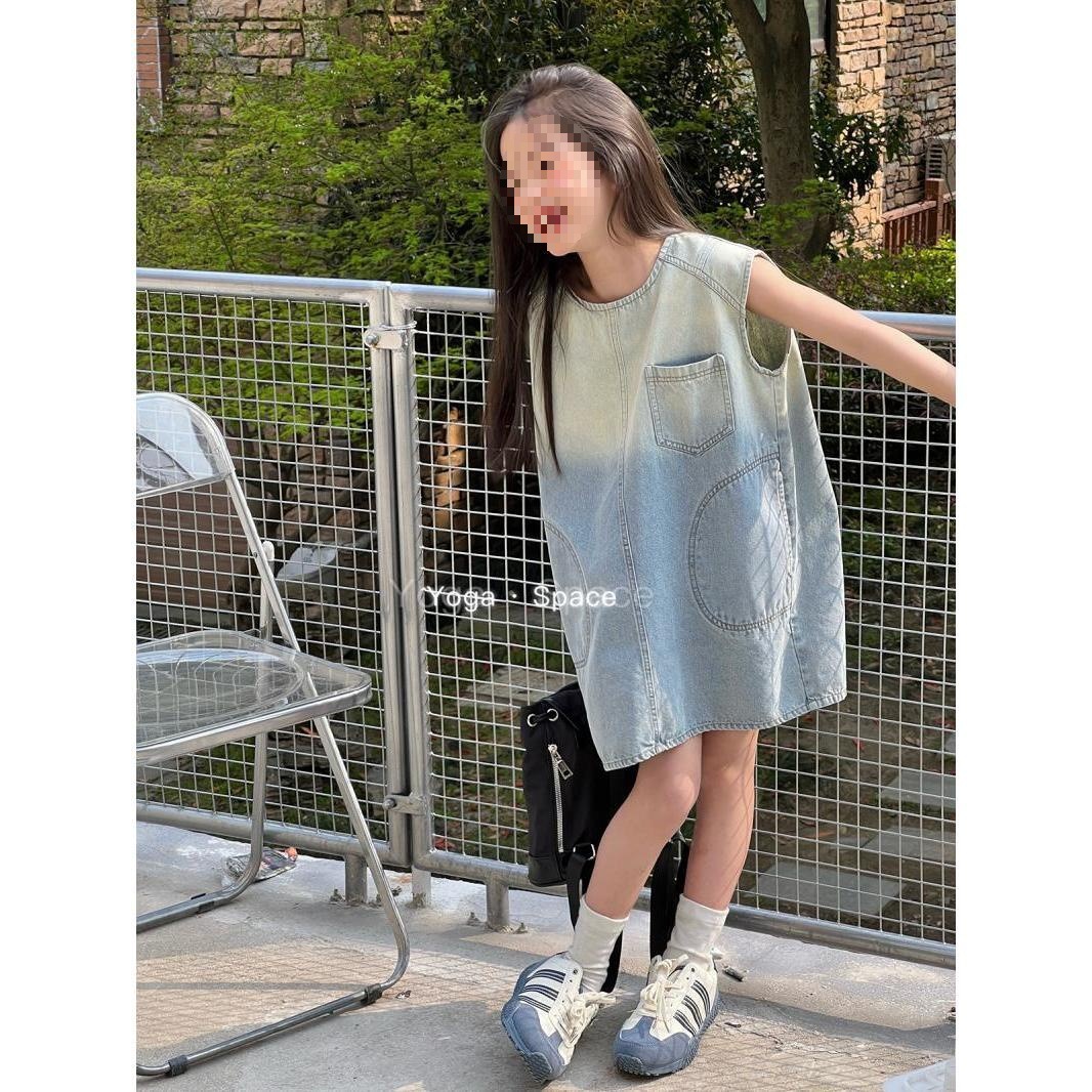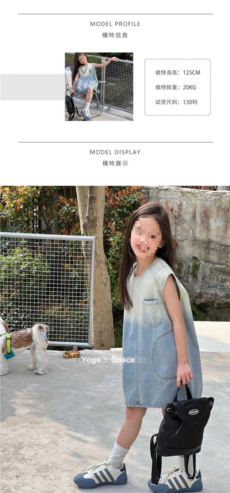 한국 아동복 2024 여름 새로운 그라데이션 컬러 데님 민소매 드레스 스커트 소녀 다재다능하고 세련된스토어 가기