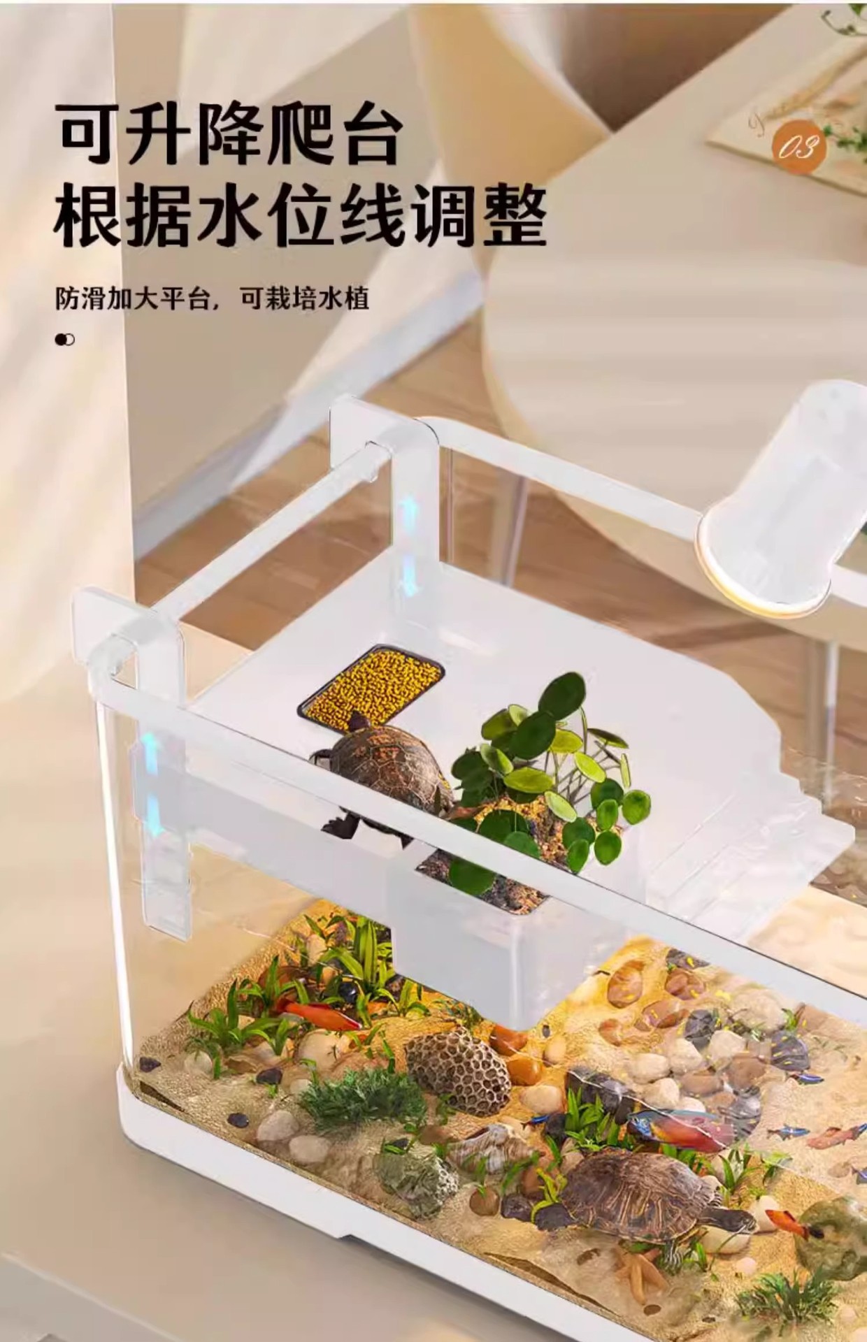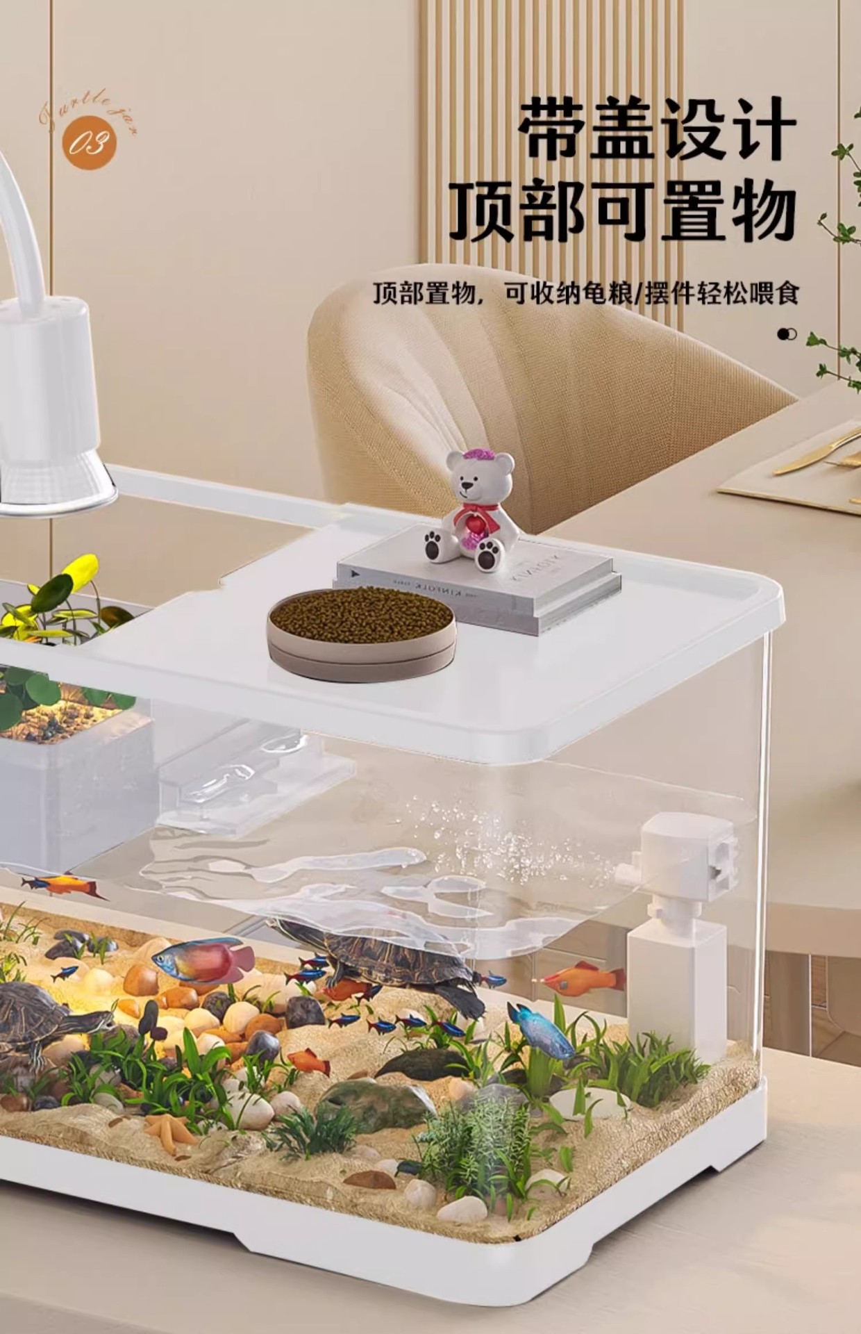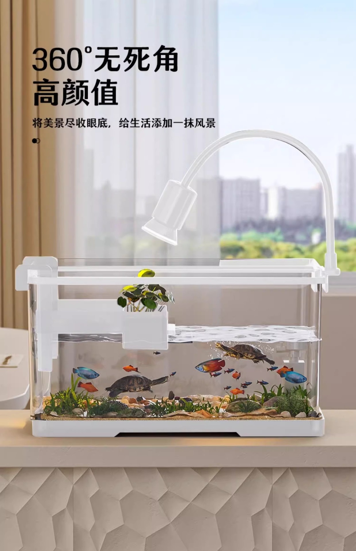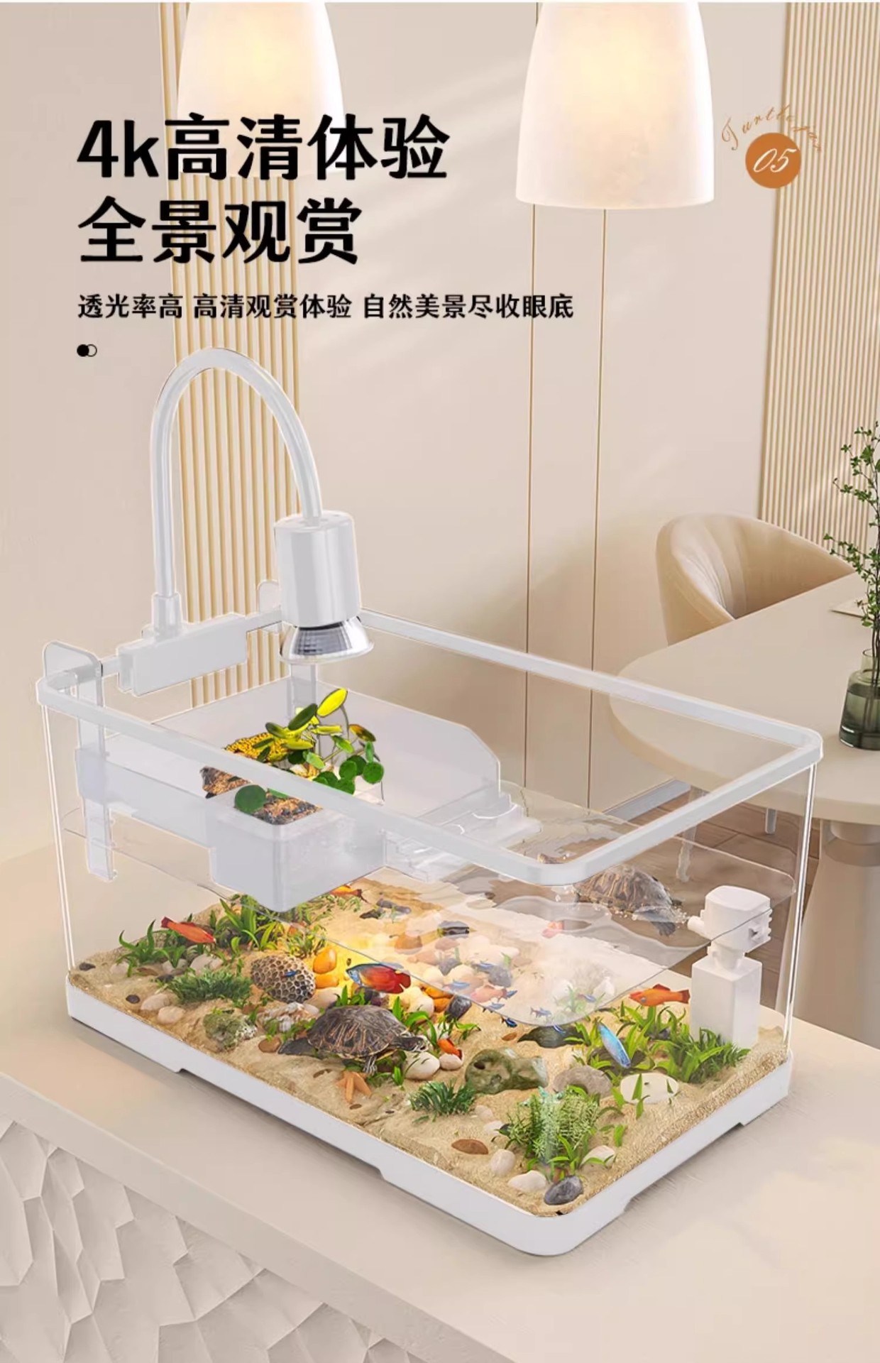 Kuoting 물고기와 거북이 혼합 수조 2024 새로운 거북이 특수 수조 투명 및 흐림 방지 AS 플라스틱 거북이 수조 가정용 소형스토어 가기
