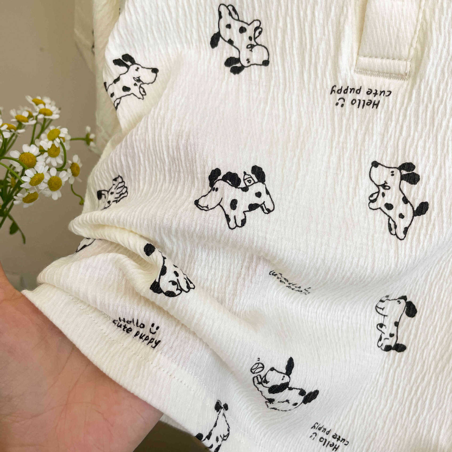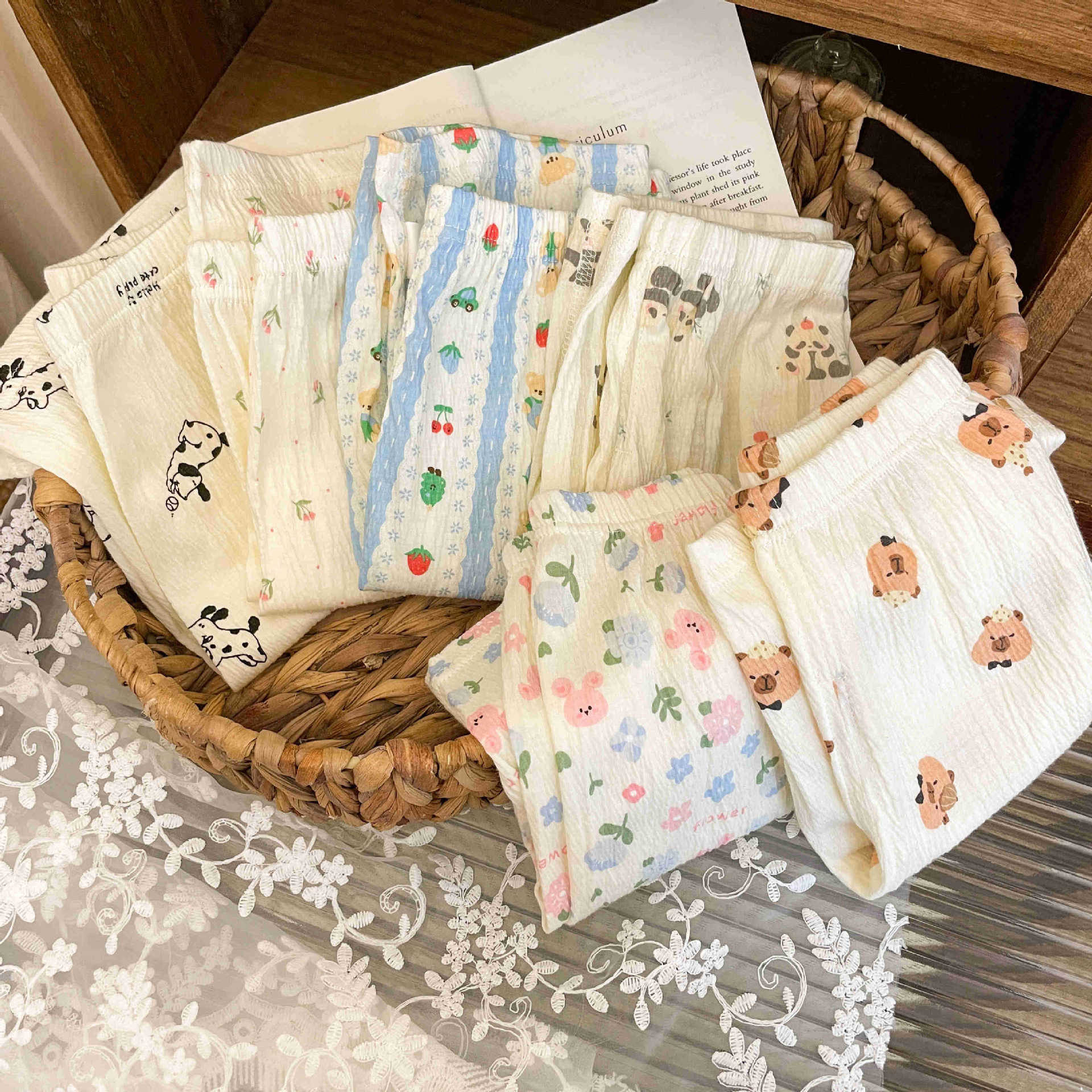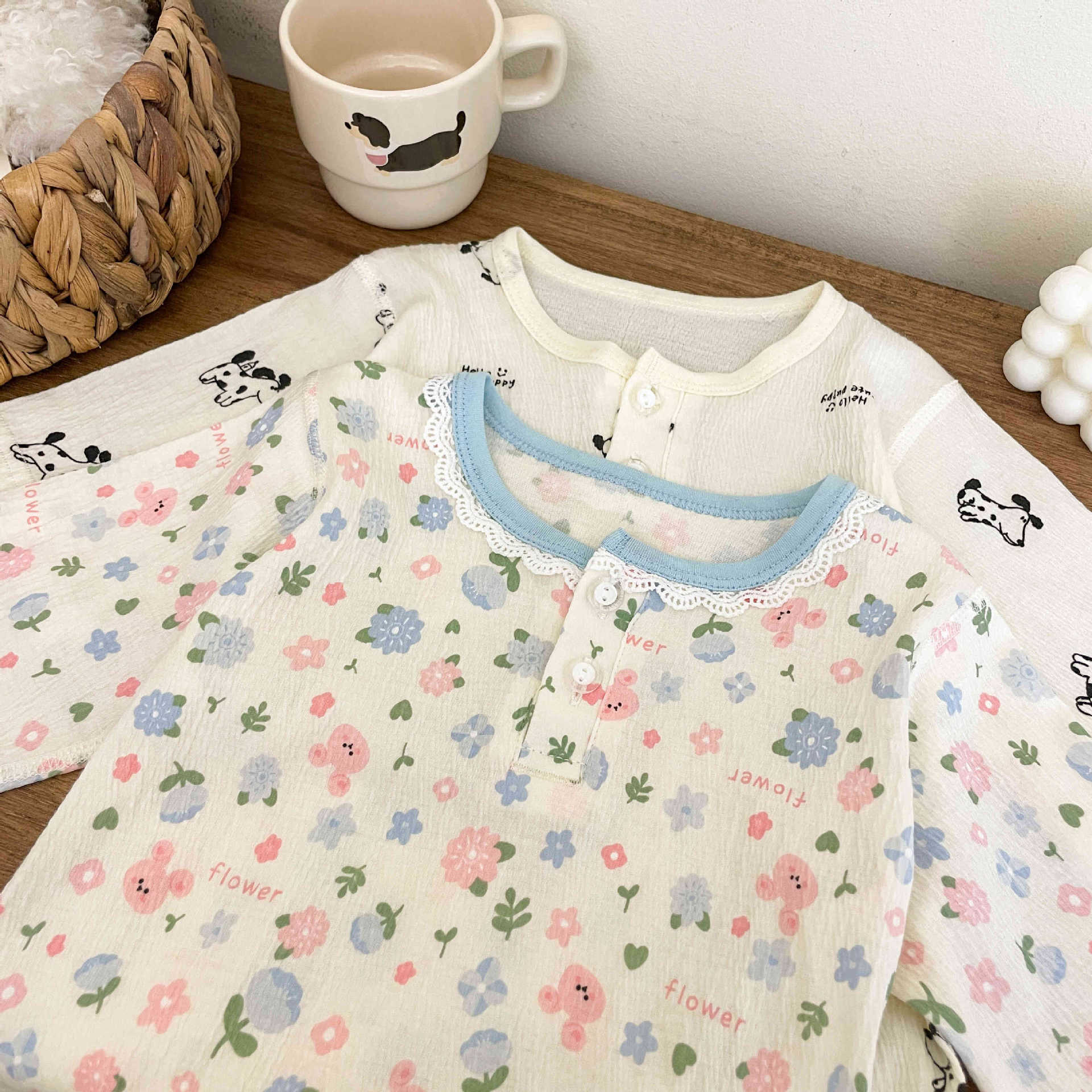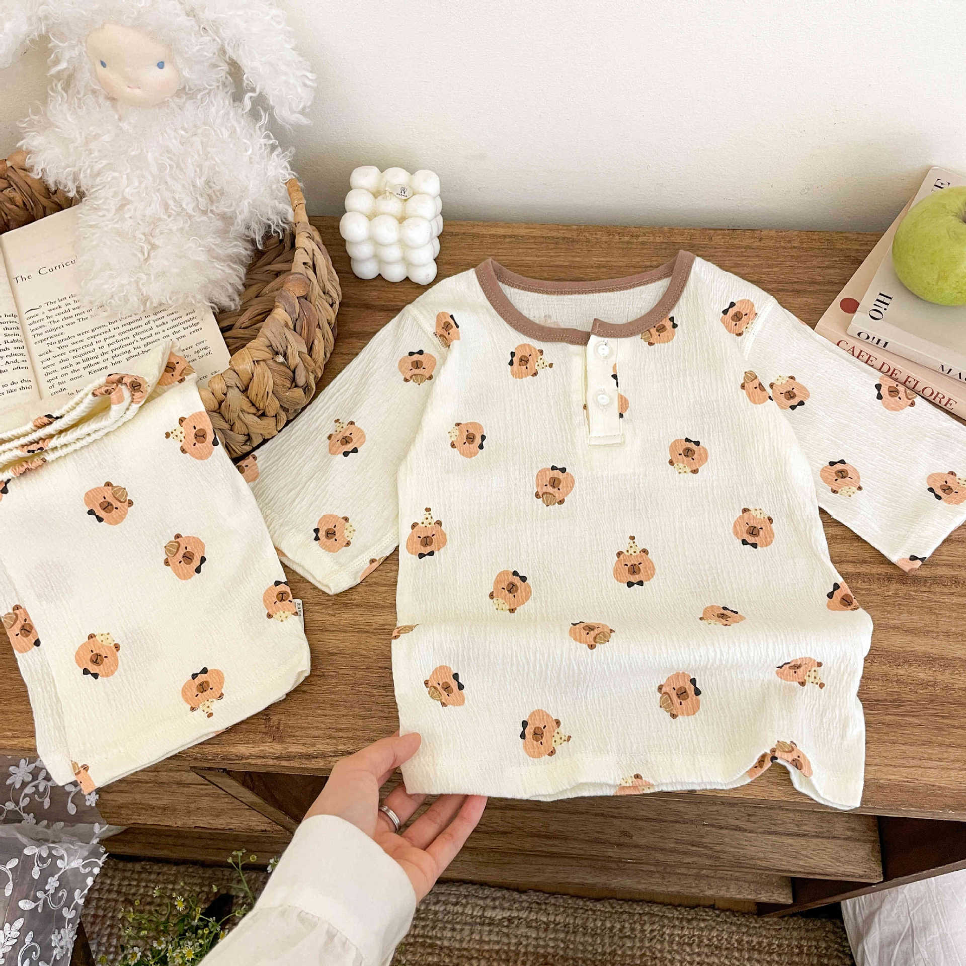 여름 얇은 주름진 면화 아기 순면 에어컨 의류 세트 스플릿 잠옷 소년과 소녀 7부 소매 가정 의류스토어 가기