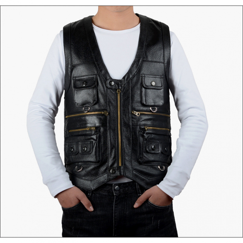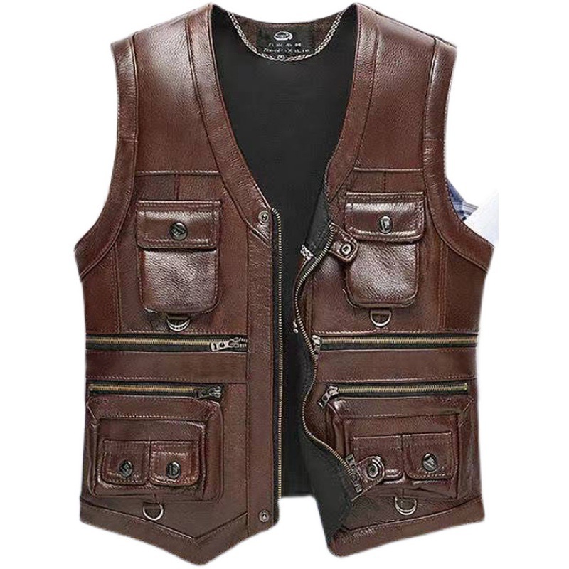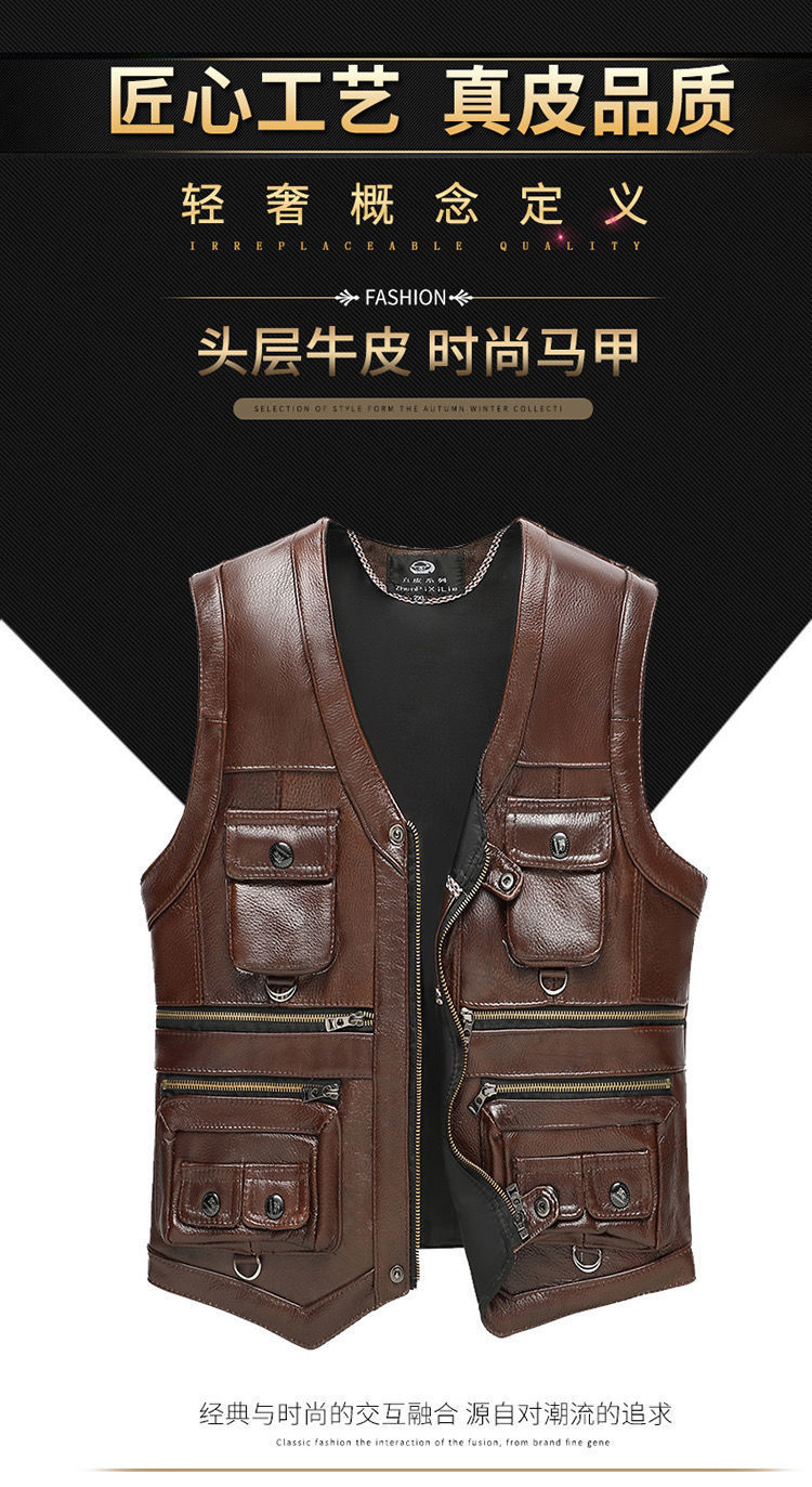 중년 및 노년층을 위한 천연가죽 조끼, 1층 소가죽, 멀티포켓, 봄, 가을, 겨울 캐주얼 아웃도어 남성 등산 조끼, 저널리스트 조끼스토어 가기