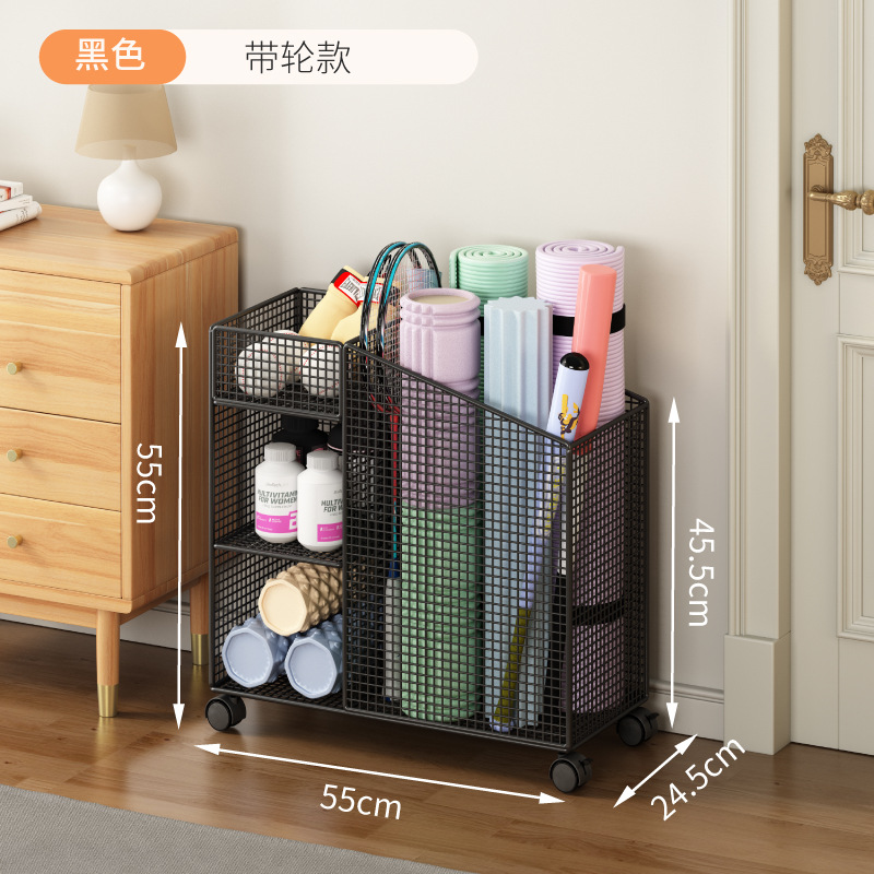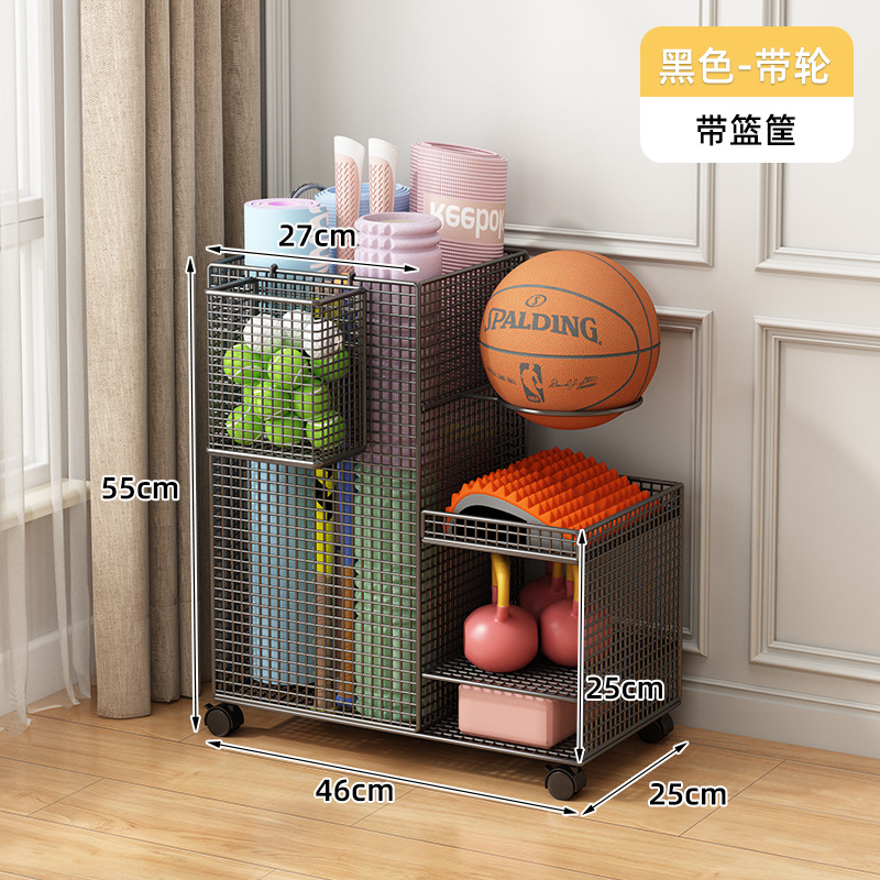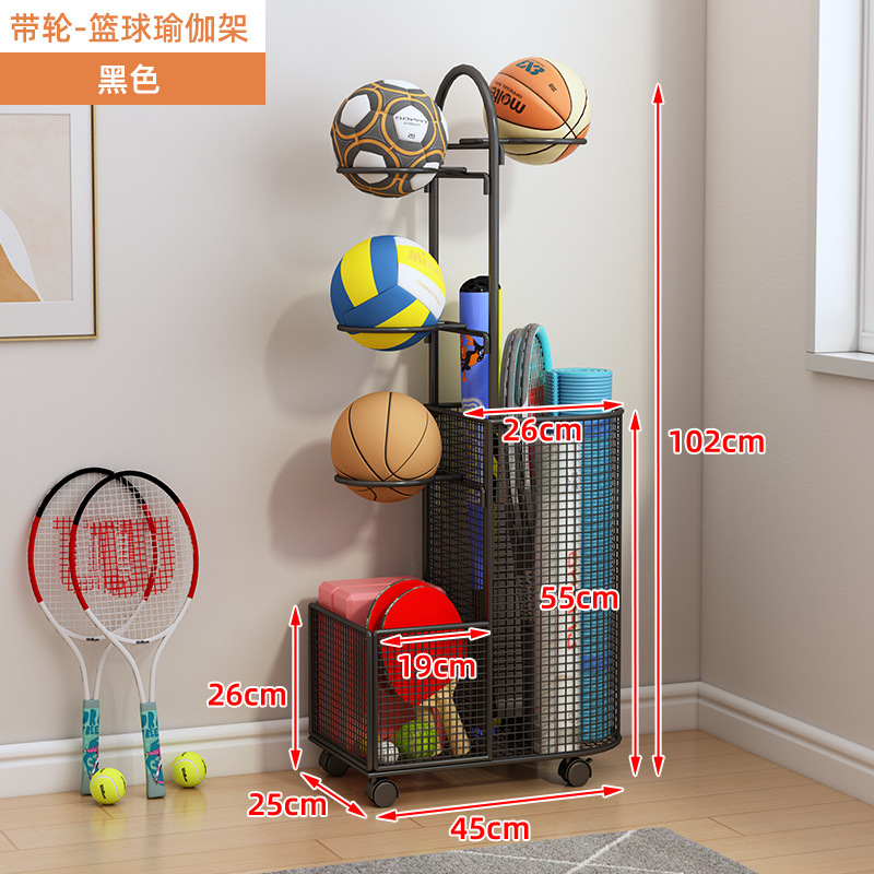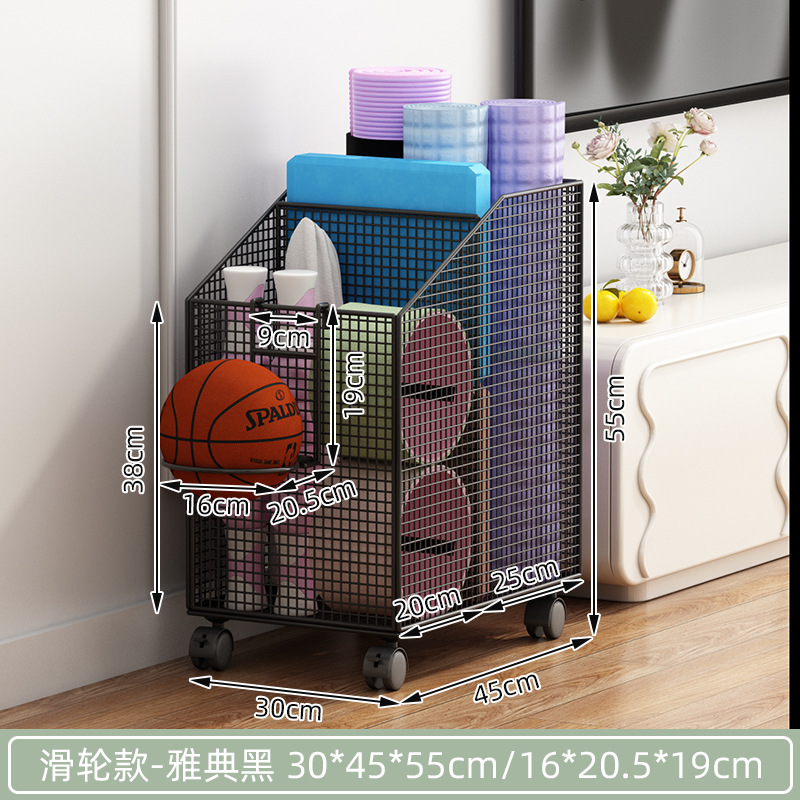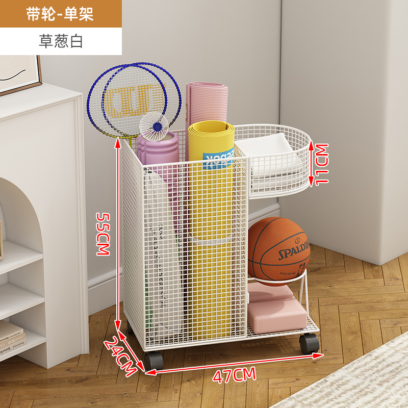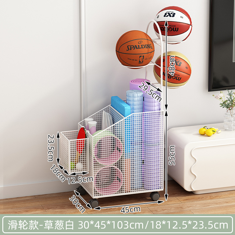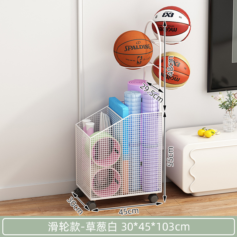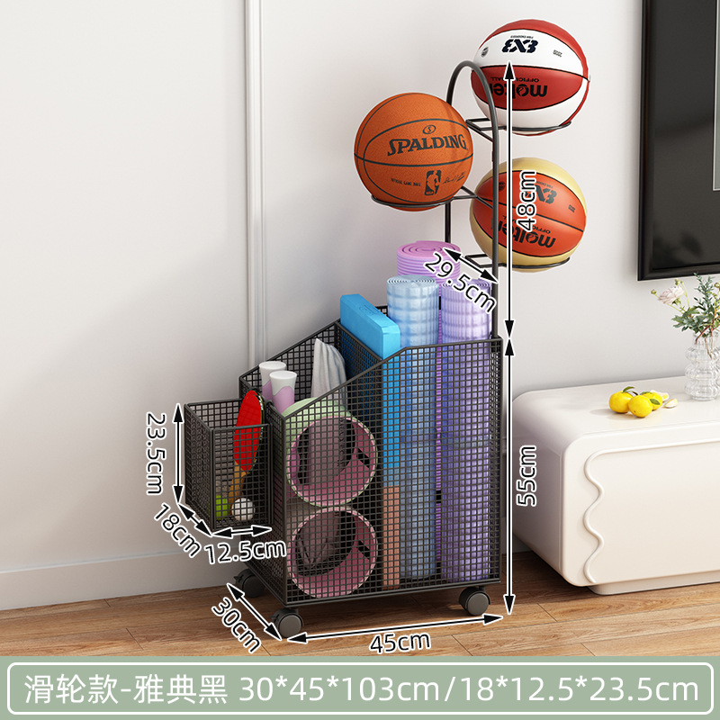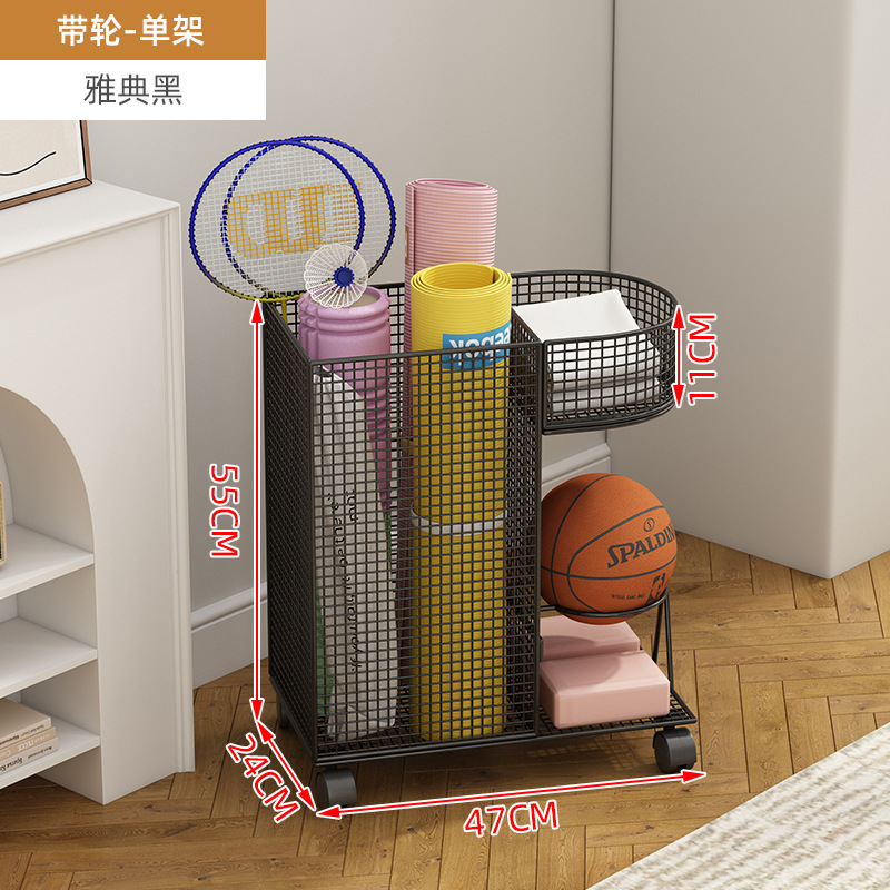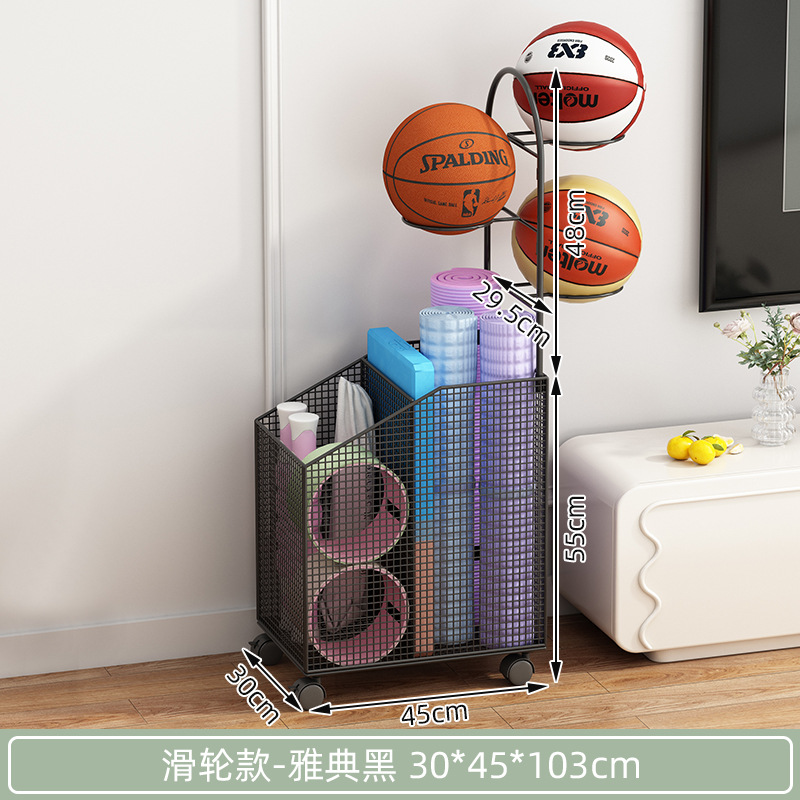 바퀴가 달린 요가 매트 보관 바구니 피트니스 스포츠 장비 보관 랙 가정용 이동식 장난감 농구 보관 랙