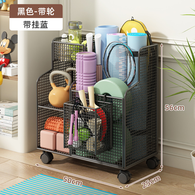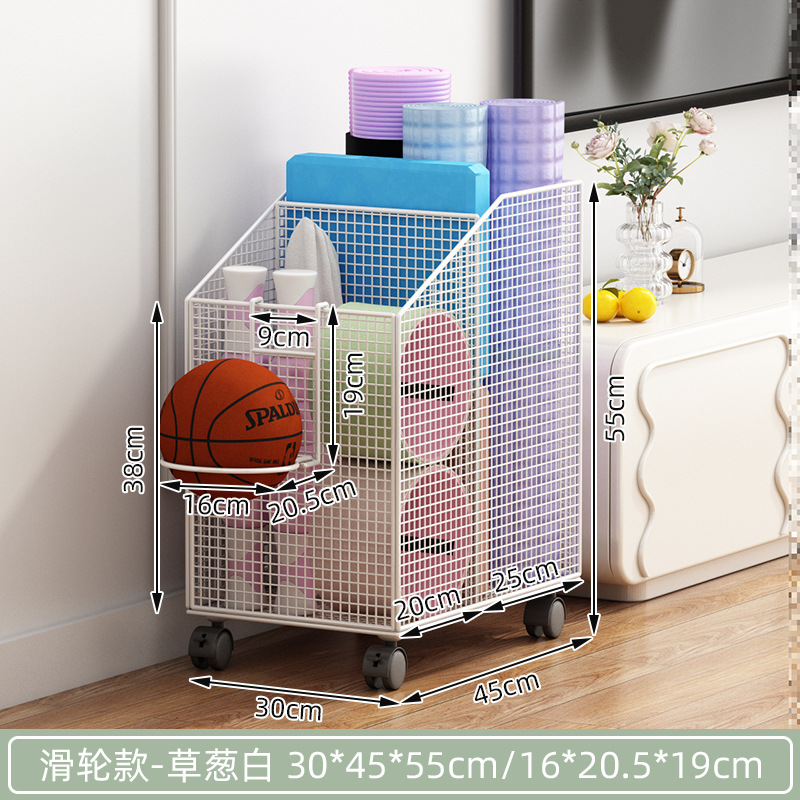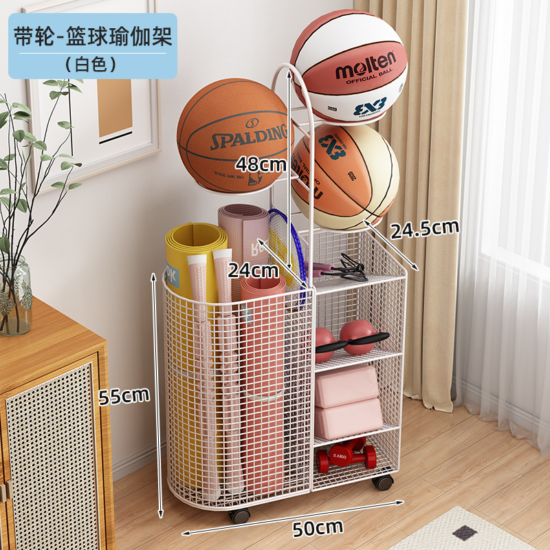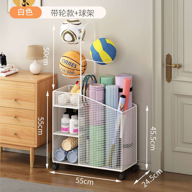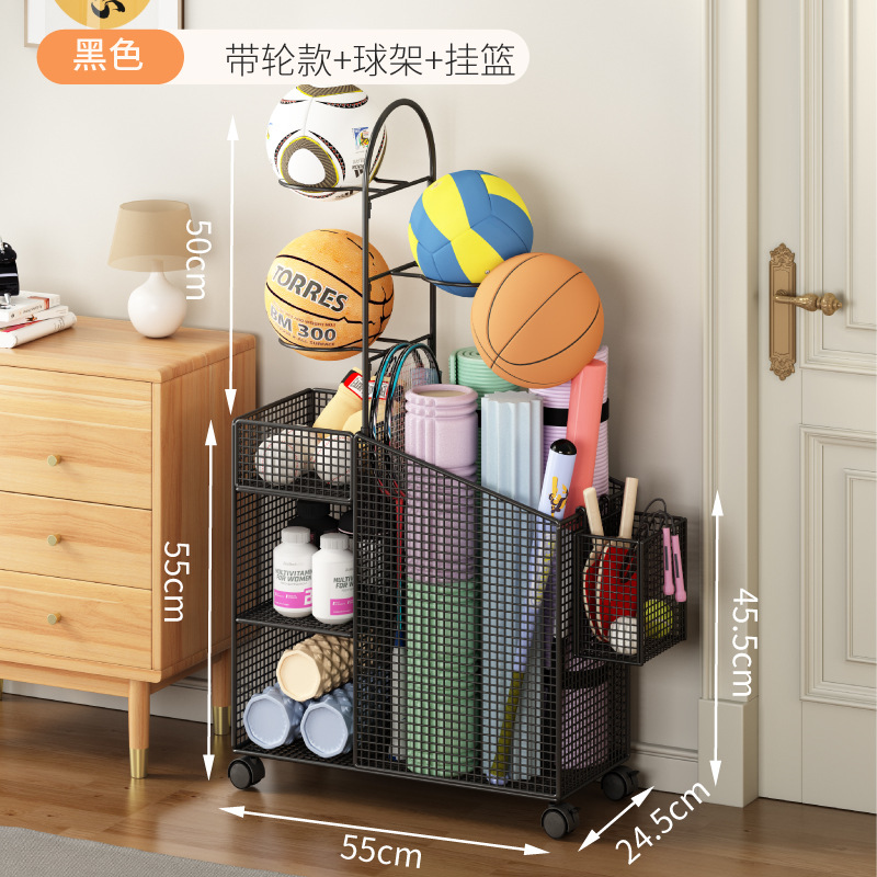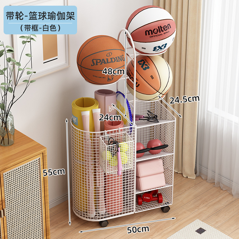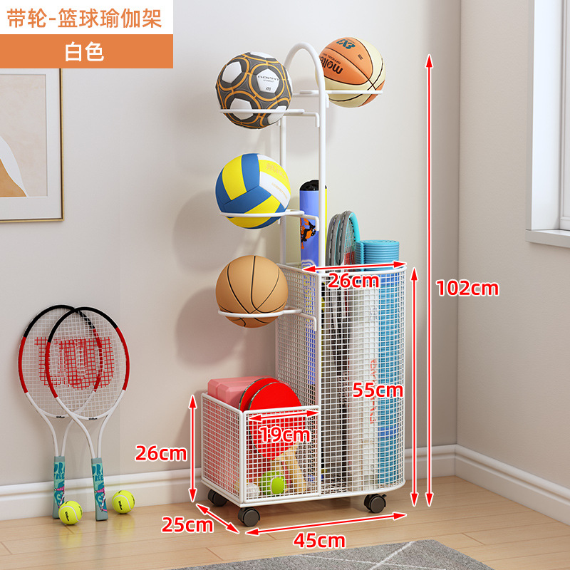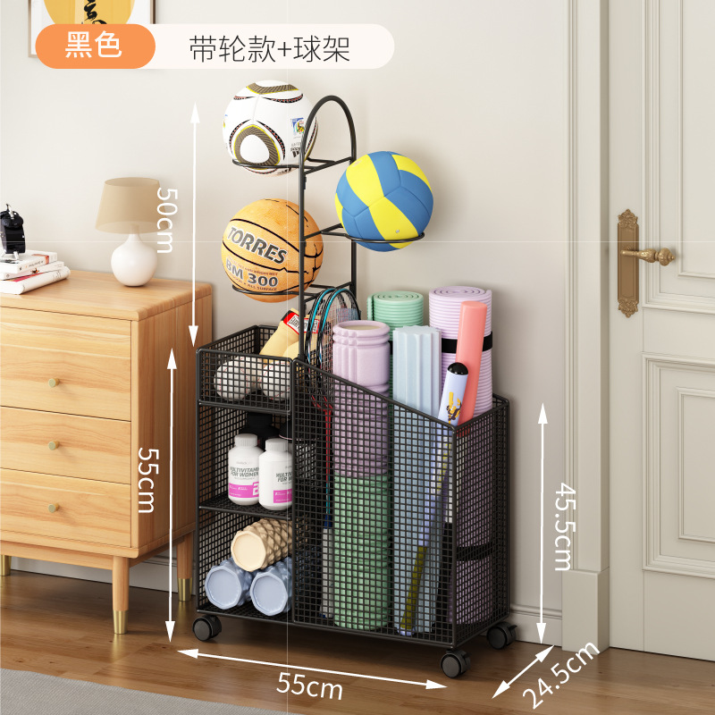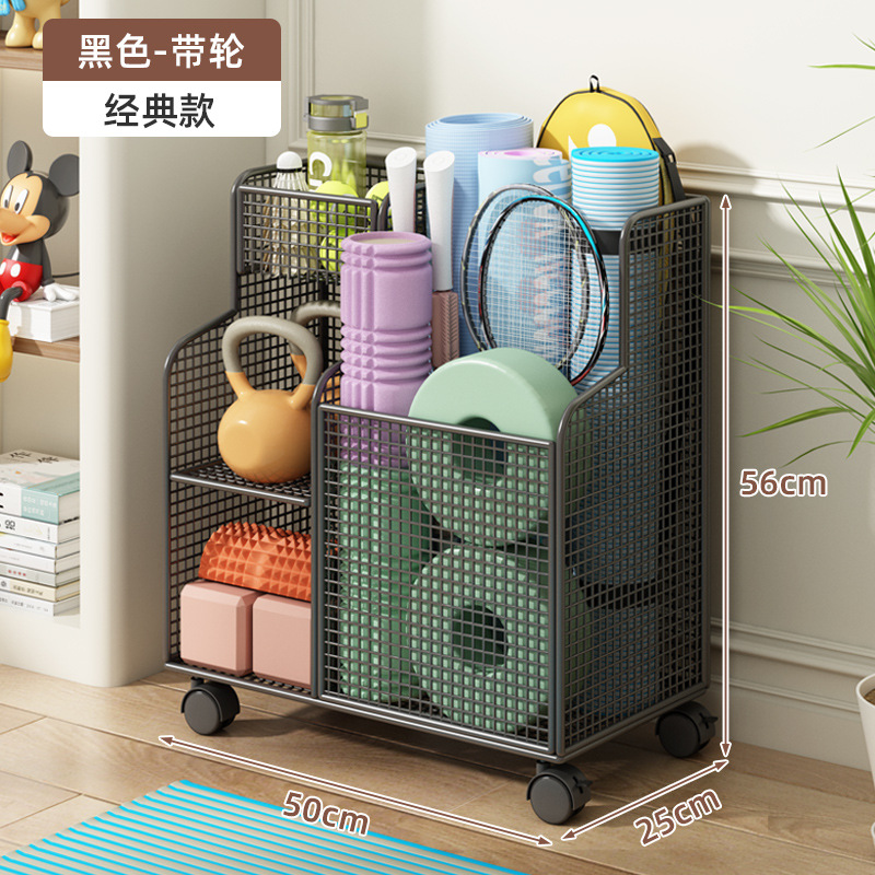 바퀴가 달린 요가 매트 보관 바구니 피트니스 스포츠 장비 보관 랙 가정용 이동식 장난감 농구 보관 랙