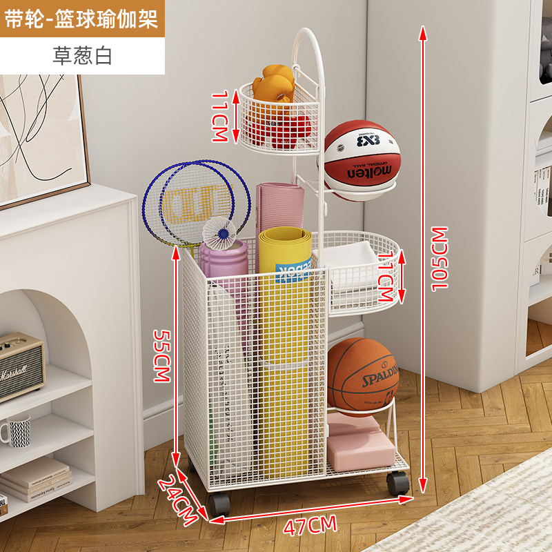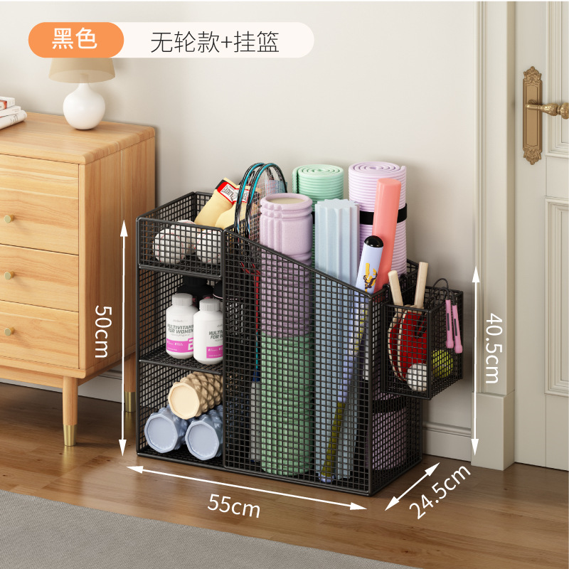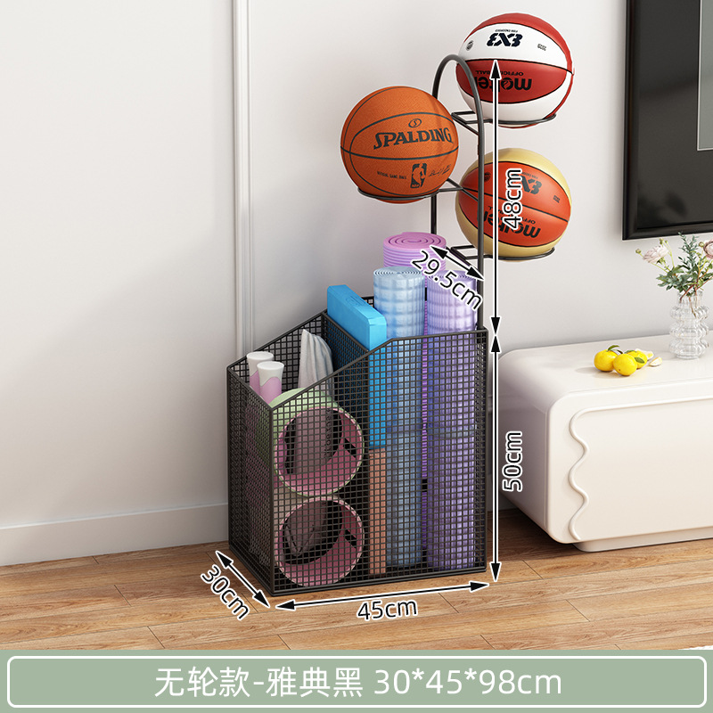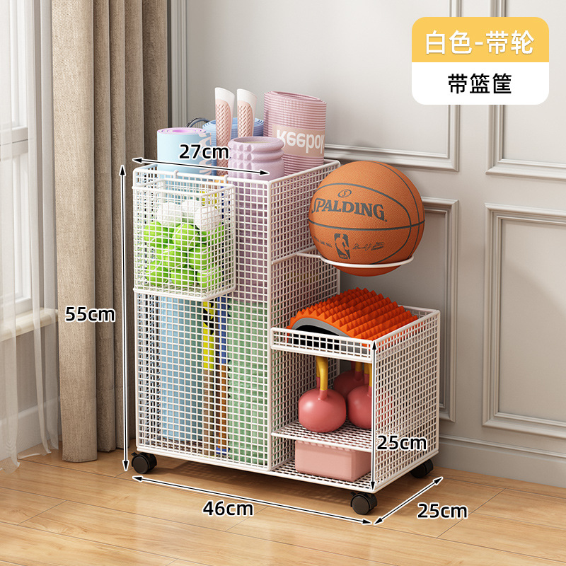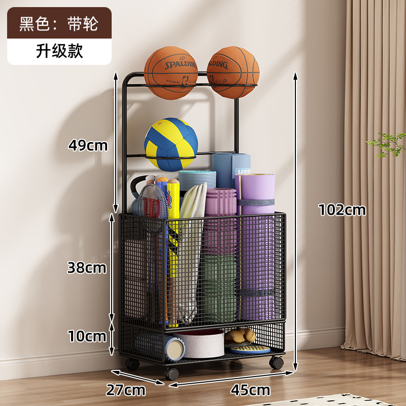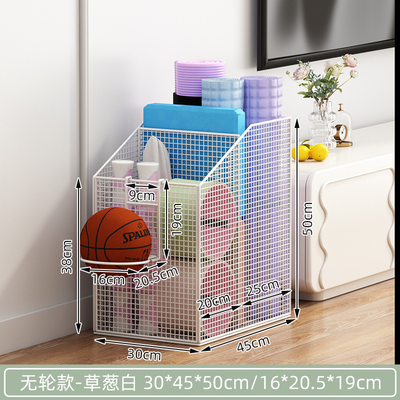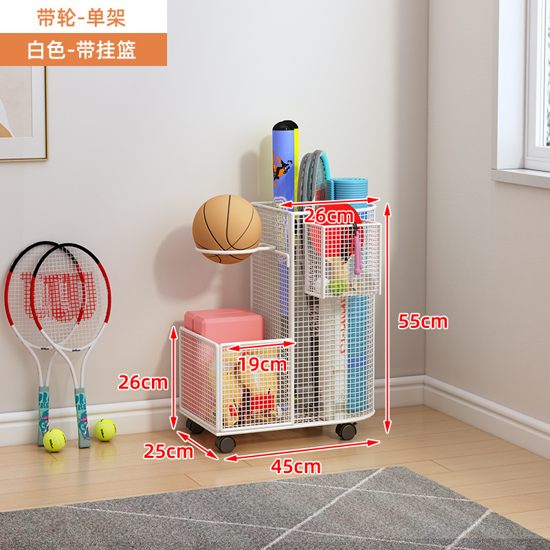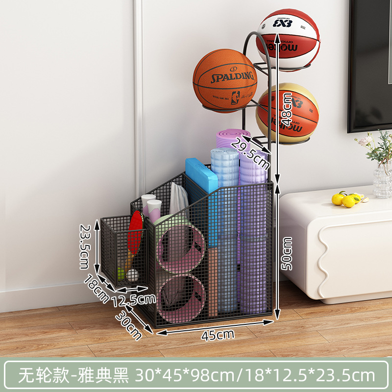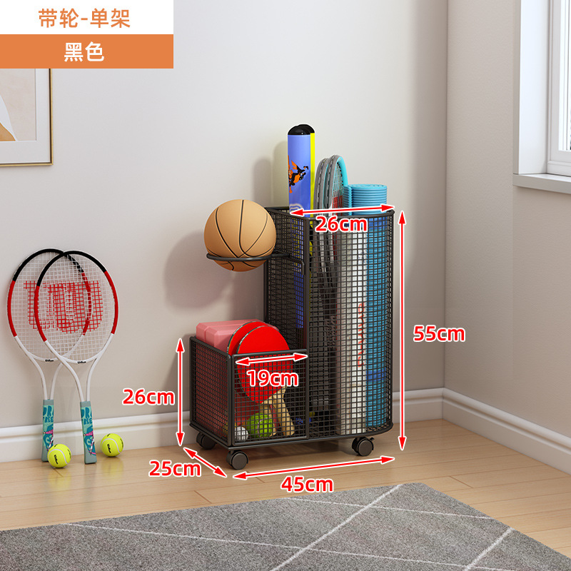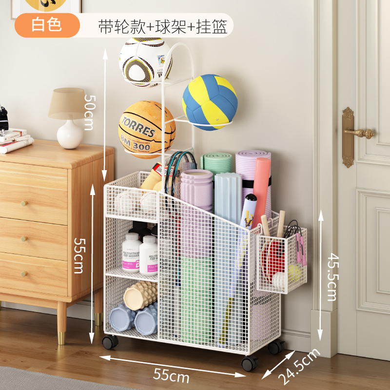 바퀴가 달린 요가 매트 보관 바구니 피트니스 스포츠 장비 보관 랙 가정용 이동식 장난감 농구 보관 랙