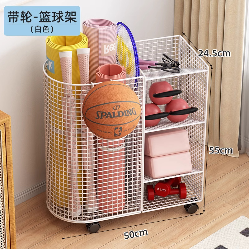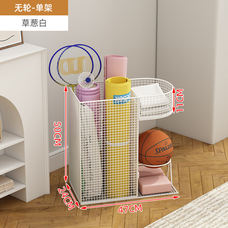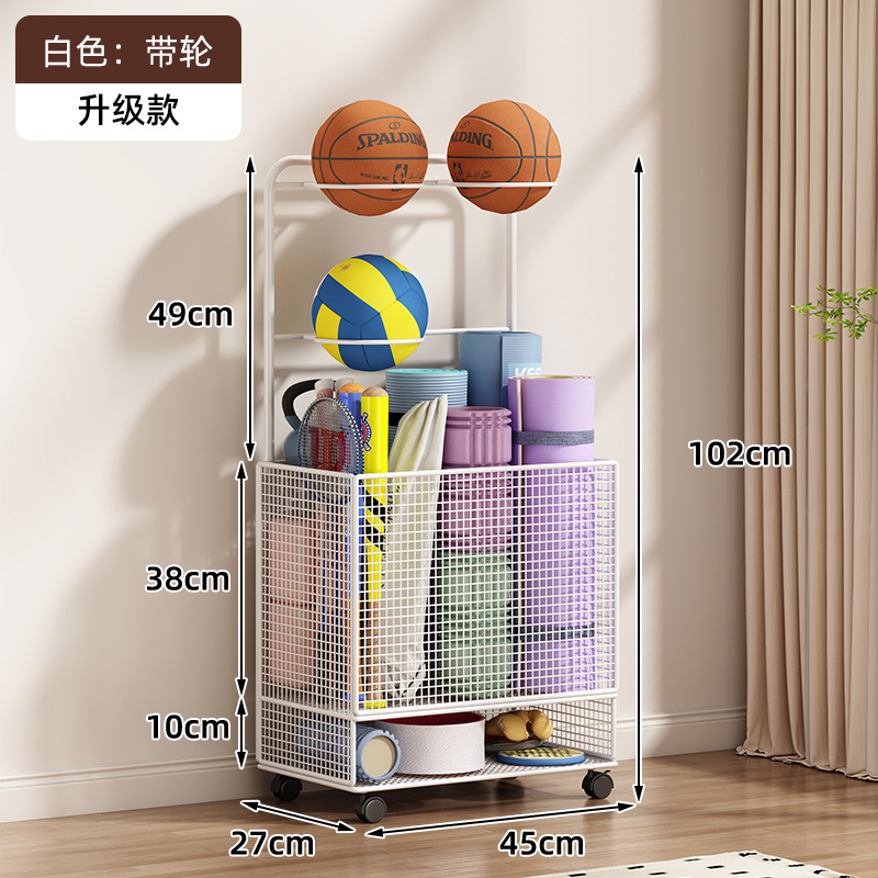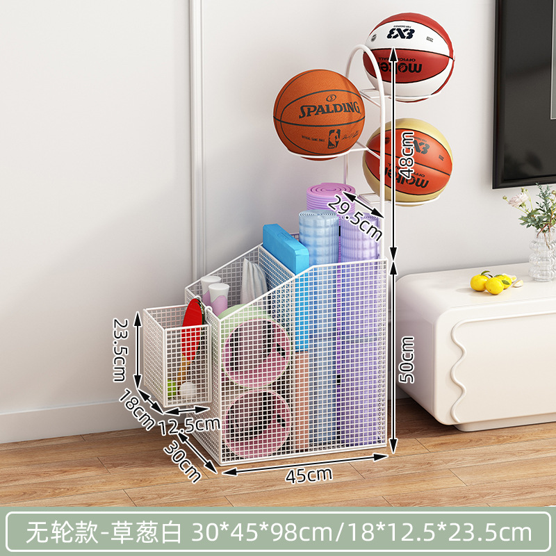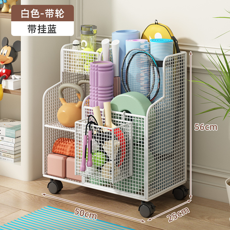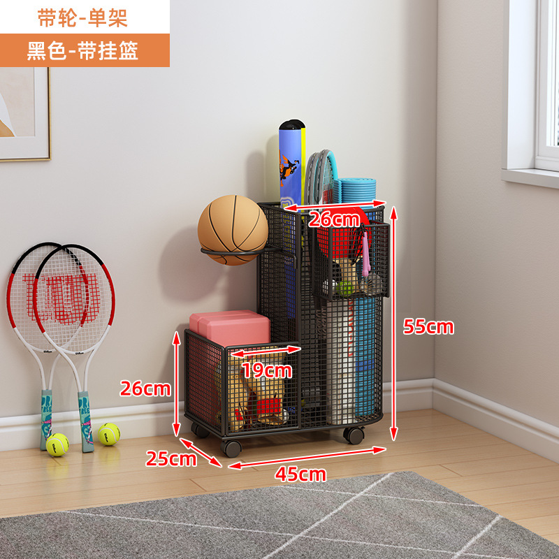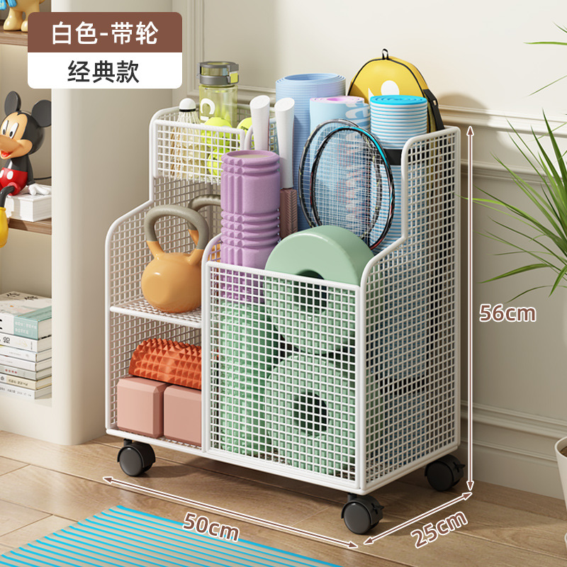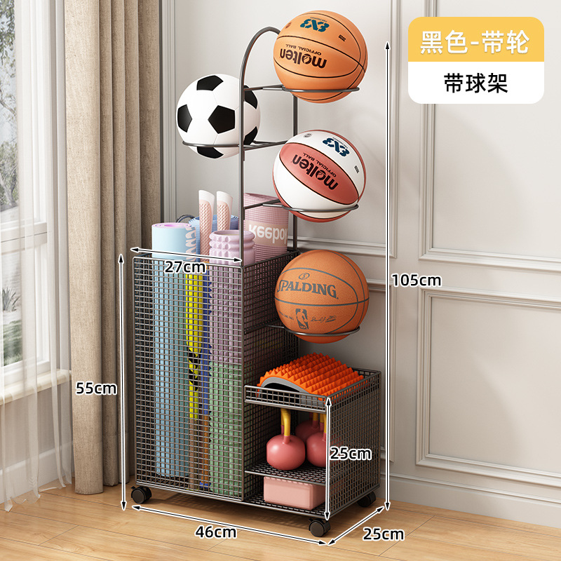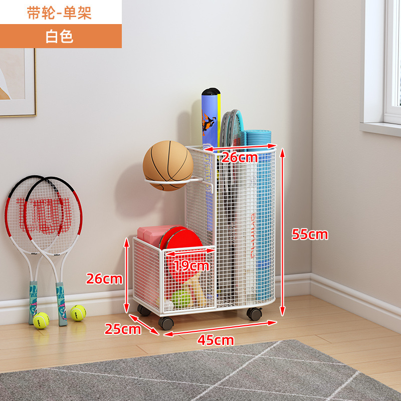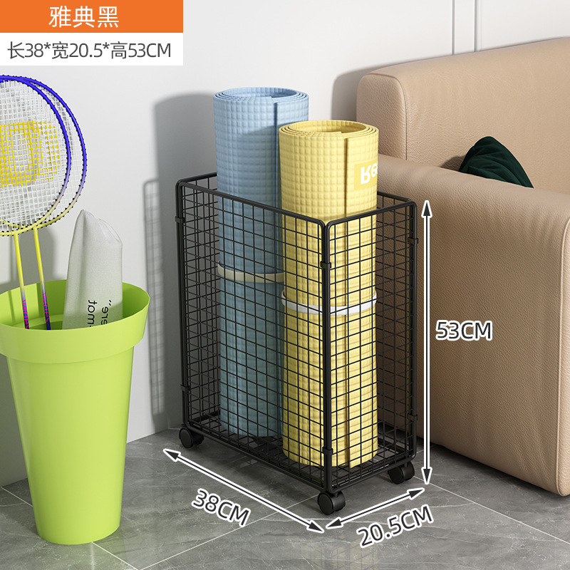 바퀴가 달린 요가 매트 보관 바구니 피트니스 스포츠 장비 보관 랙 가정용 이동식 장난감 농구 보관 랙