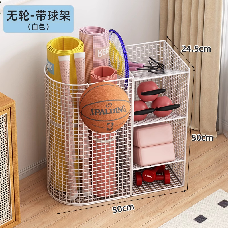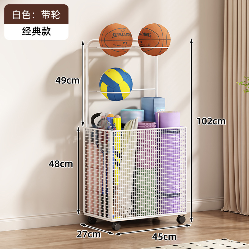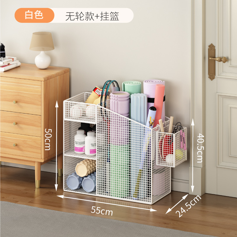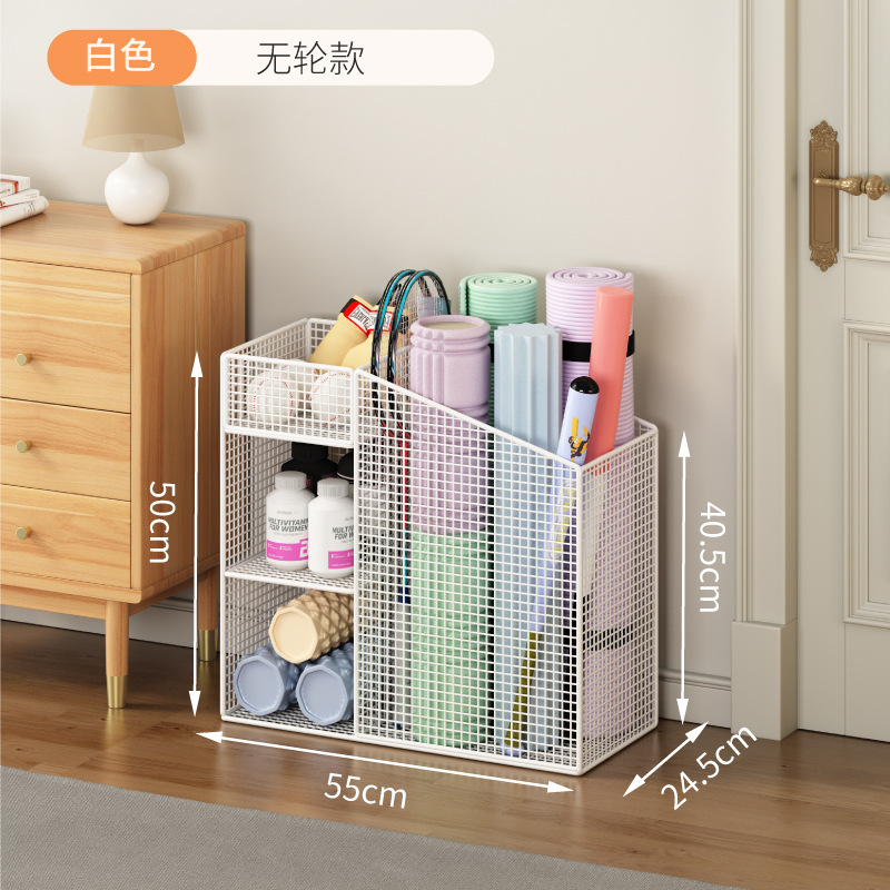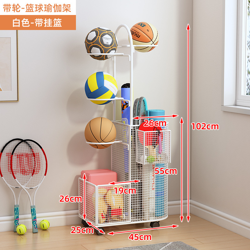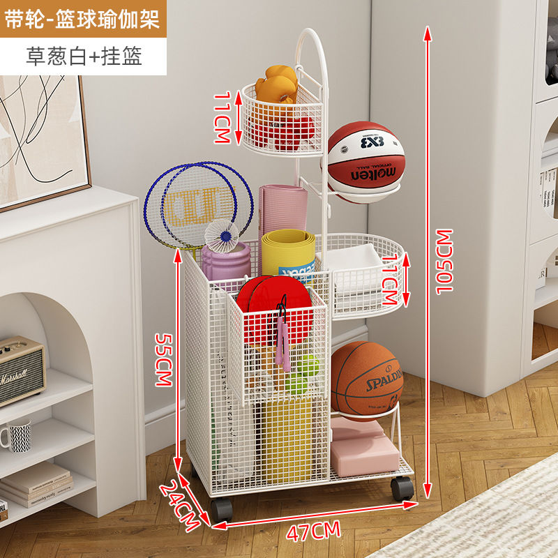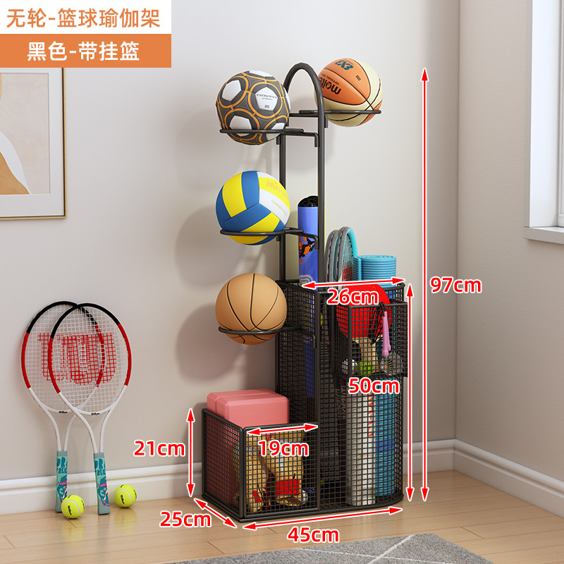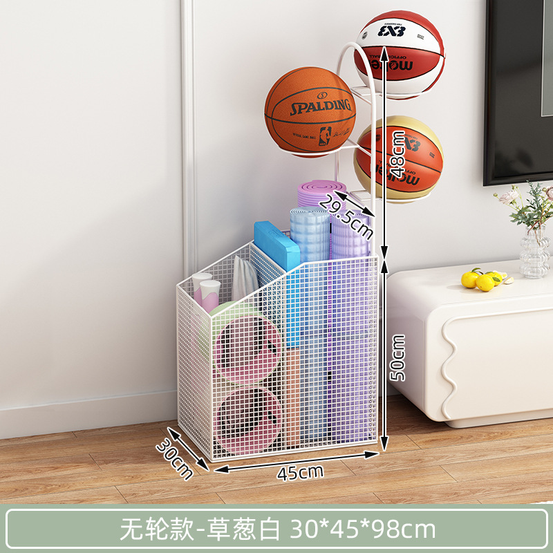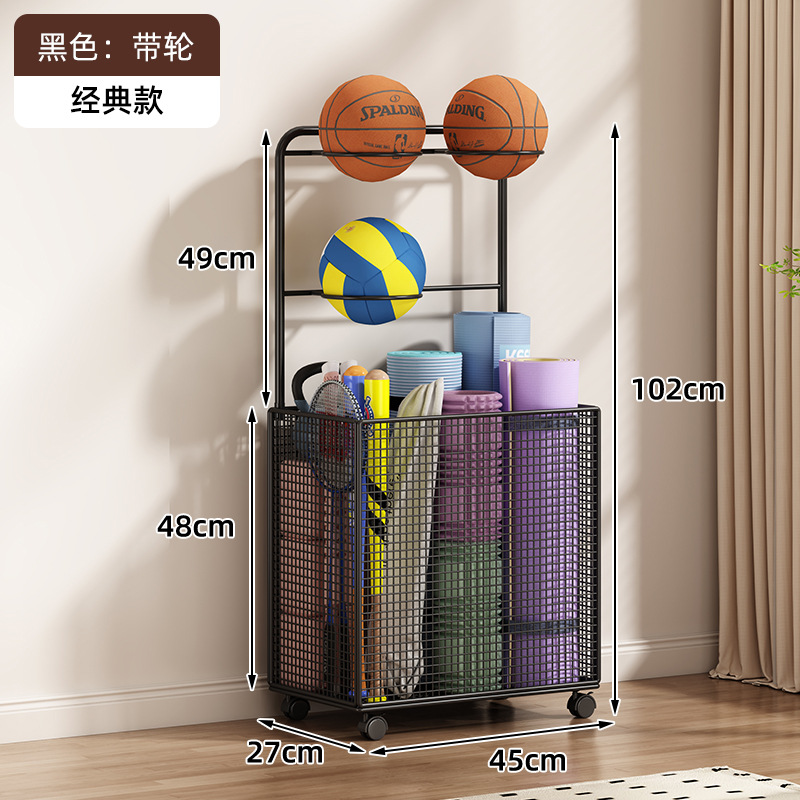 바퀴가 달린 요가 매트 보관 바구니 피트니스 스포츠 장비 보관 랙 가정용 이동식 장난감 농구 보관 랙