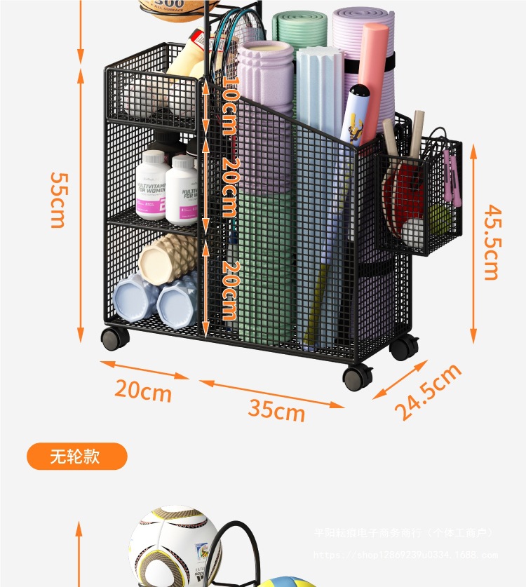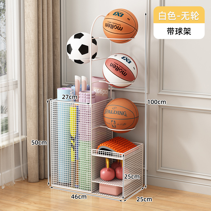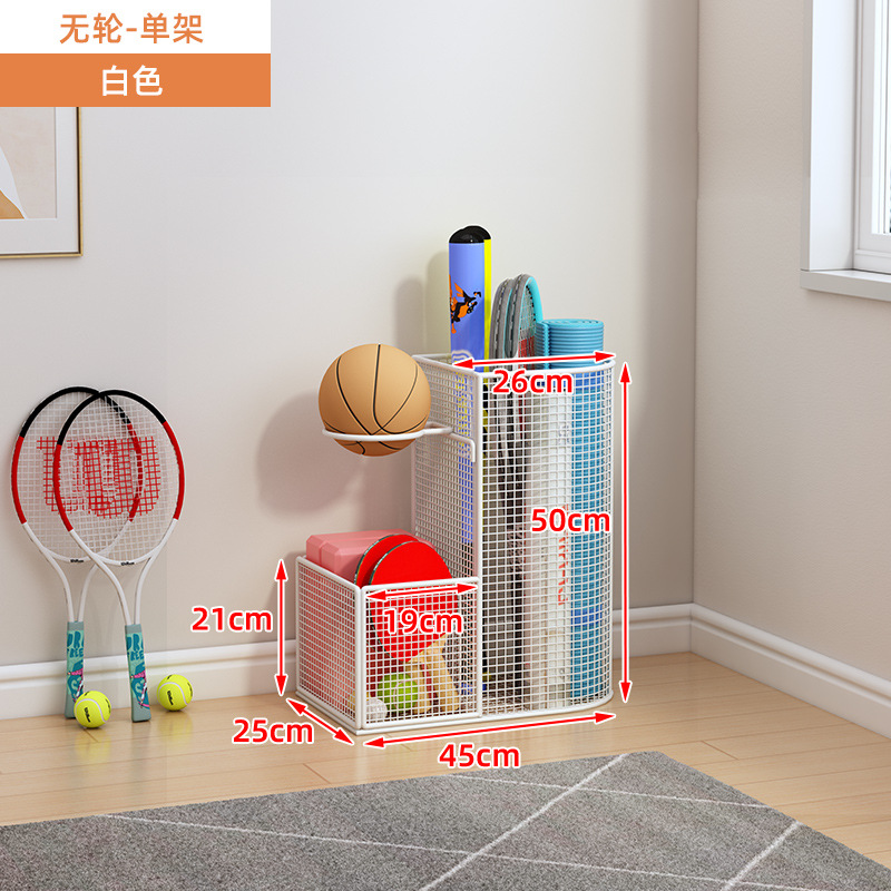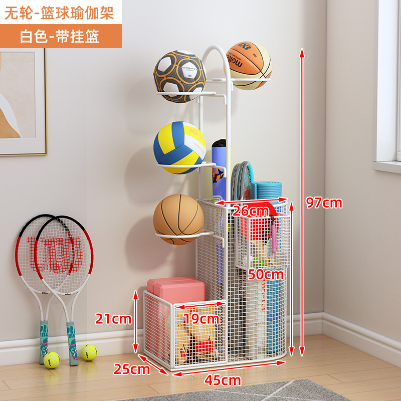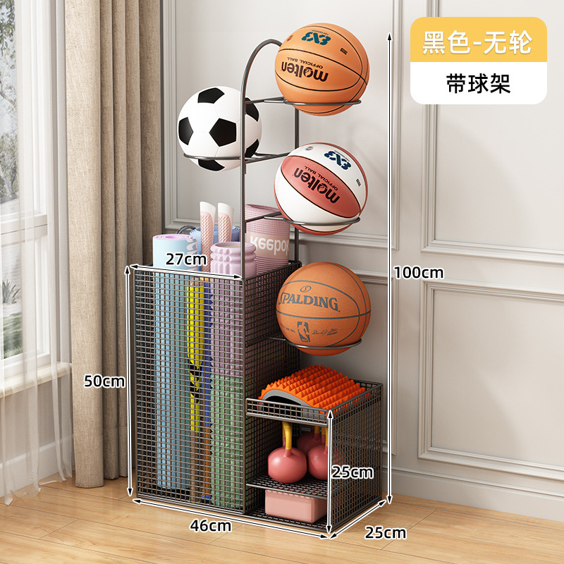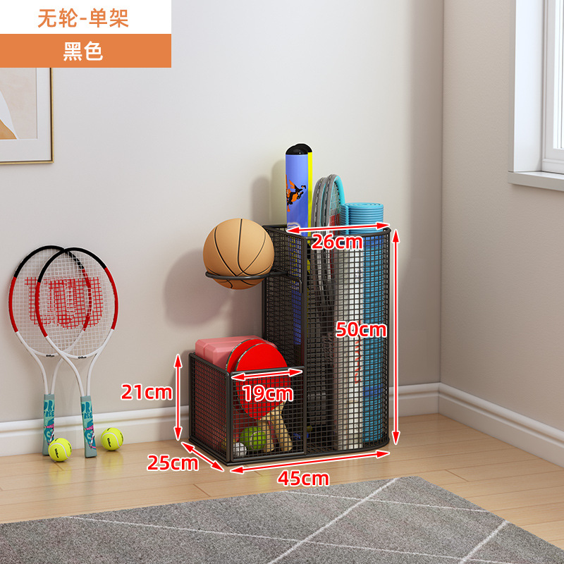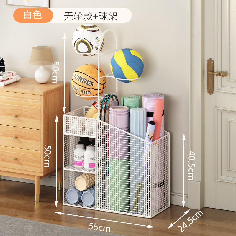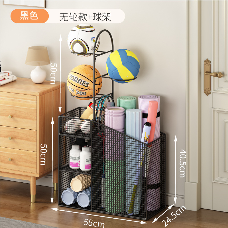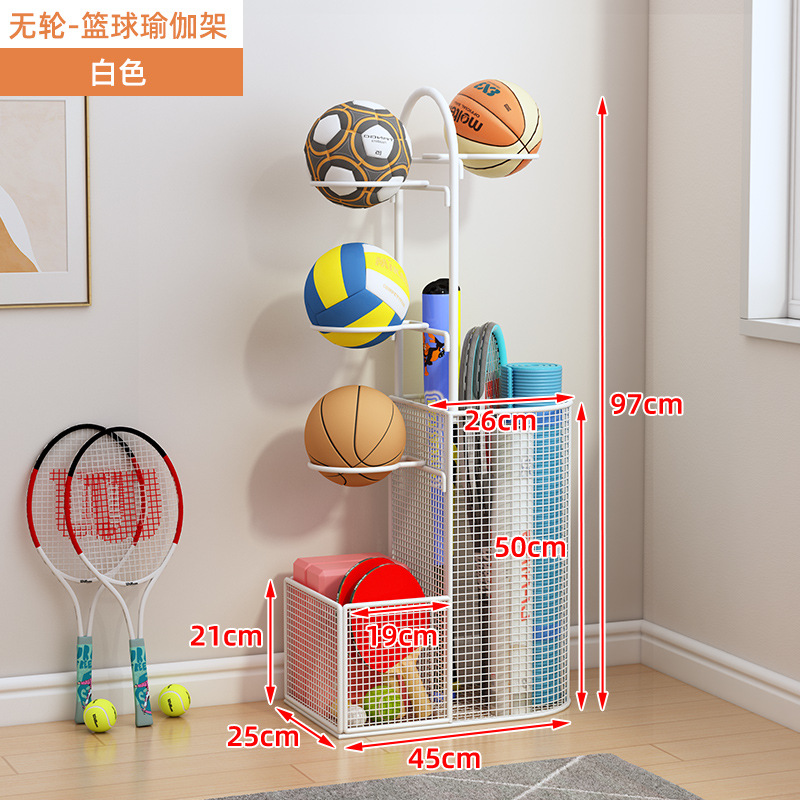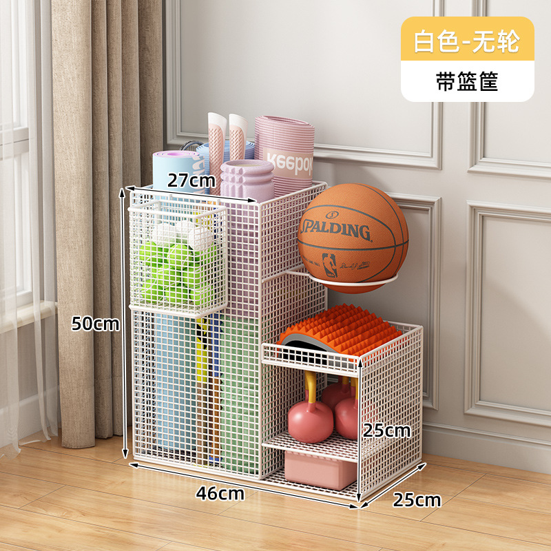 바퀴가 달린 요가 매트 보관 바구니 피트니스 스포츠 장비 보관 랙 가정용 이동식 장난감 농구 보관 랙
