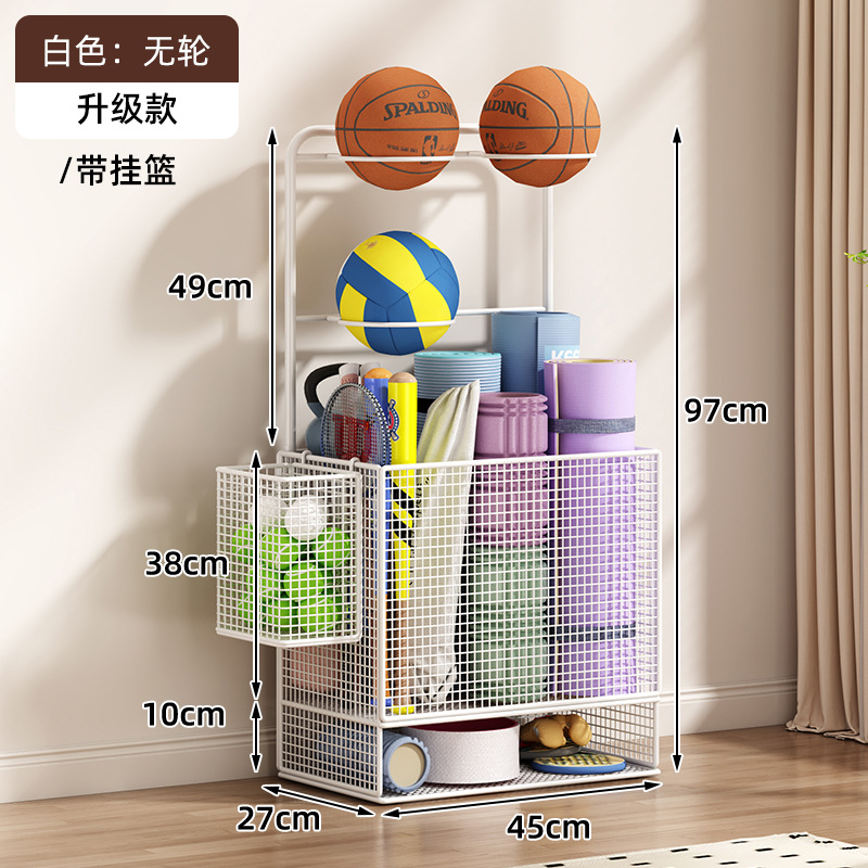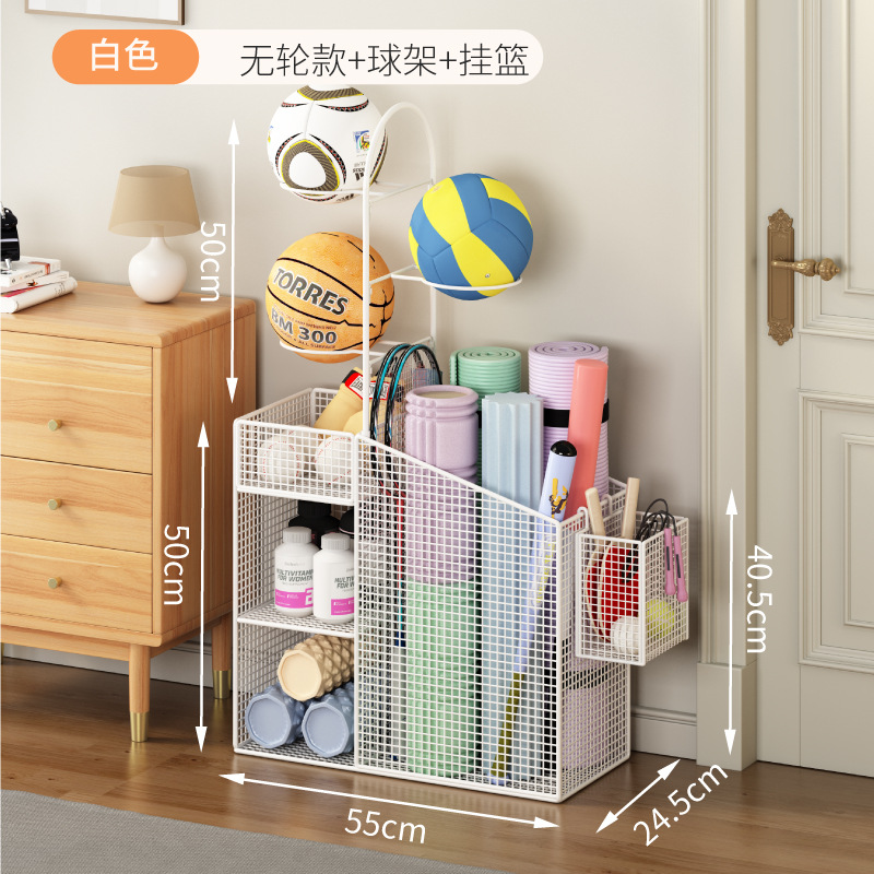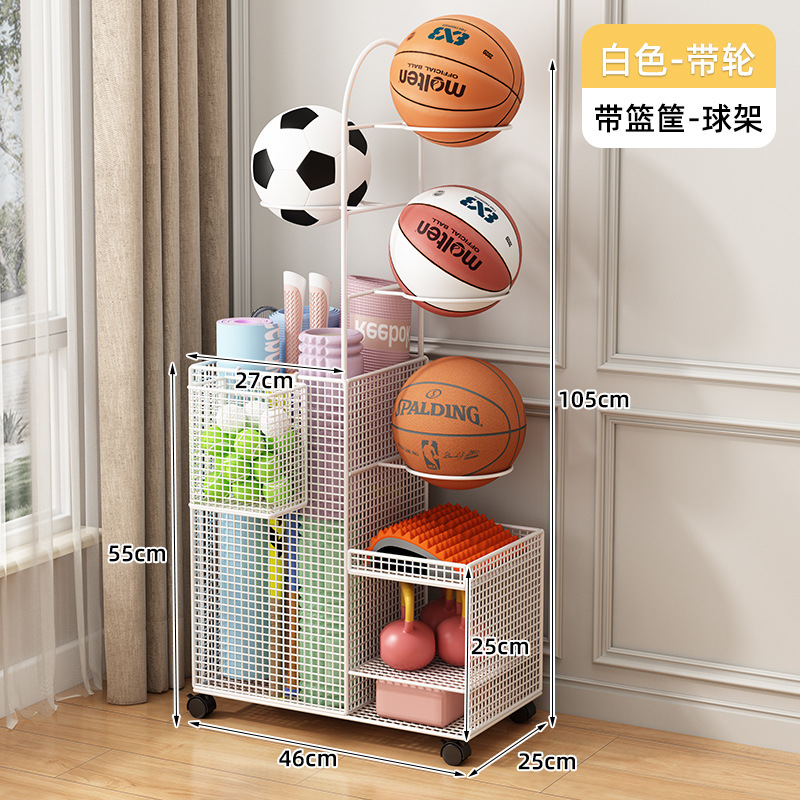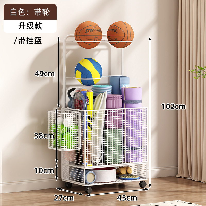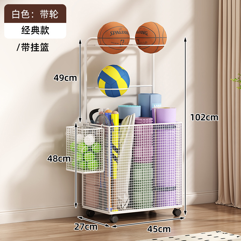 • [다기능 수납 모델 A] 흰색 - 바퀴 달린 [업그레이드된 농구대] 바구니 걸이 포함