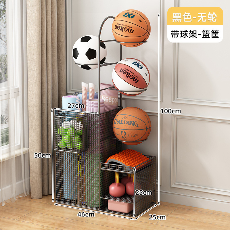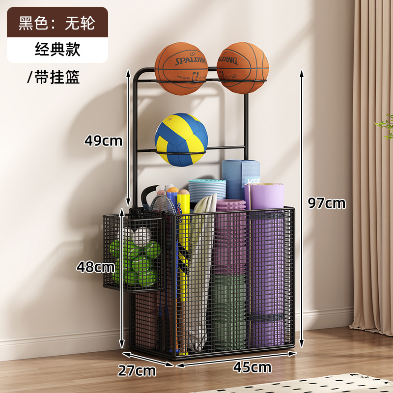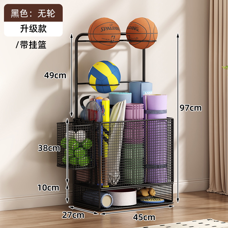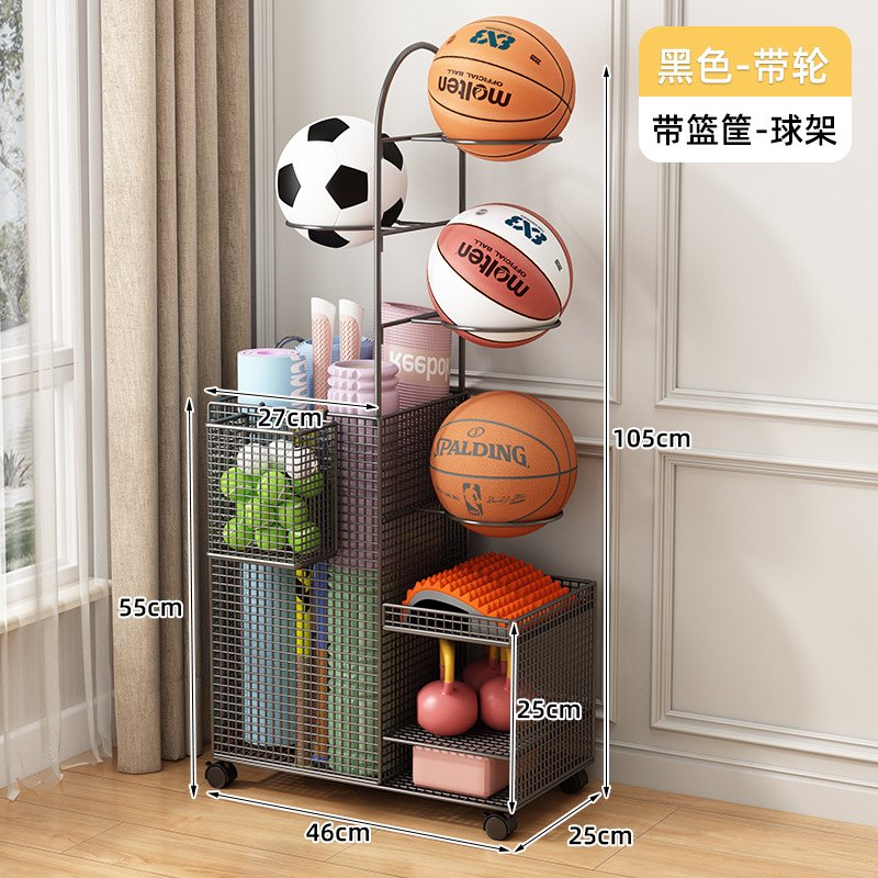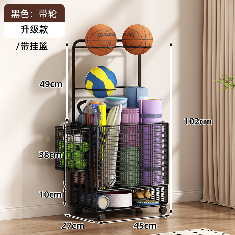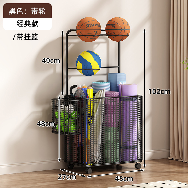 • [다기능 수납 모델 A] 블랙 - 바퀴 달린 [업그레이드된 농구대] 바구니 걸이 포함