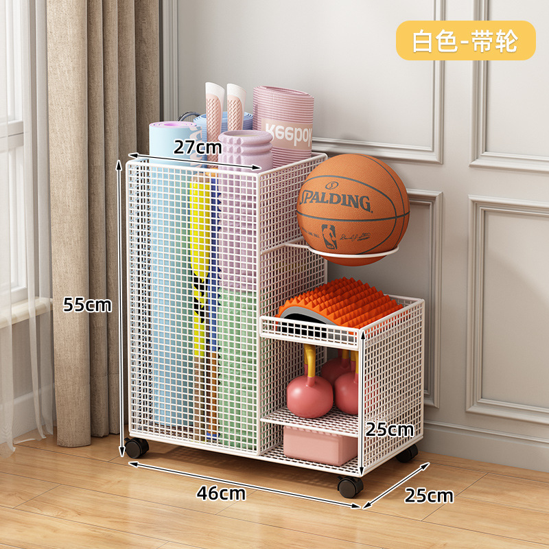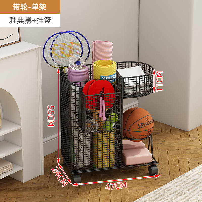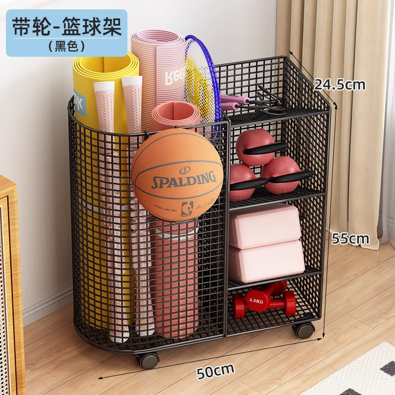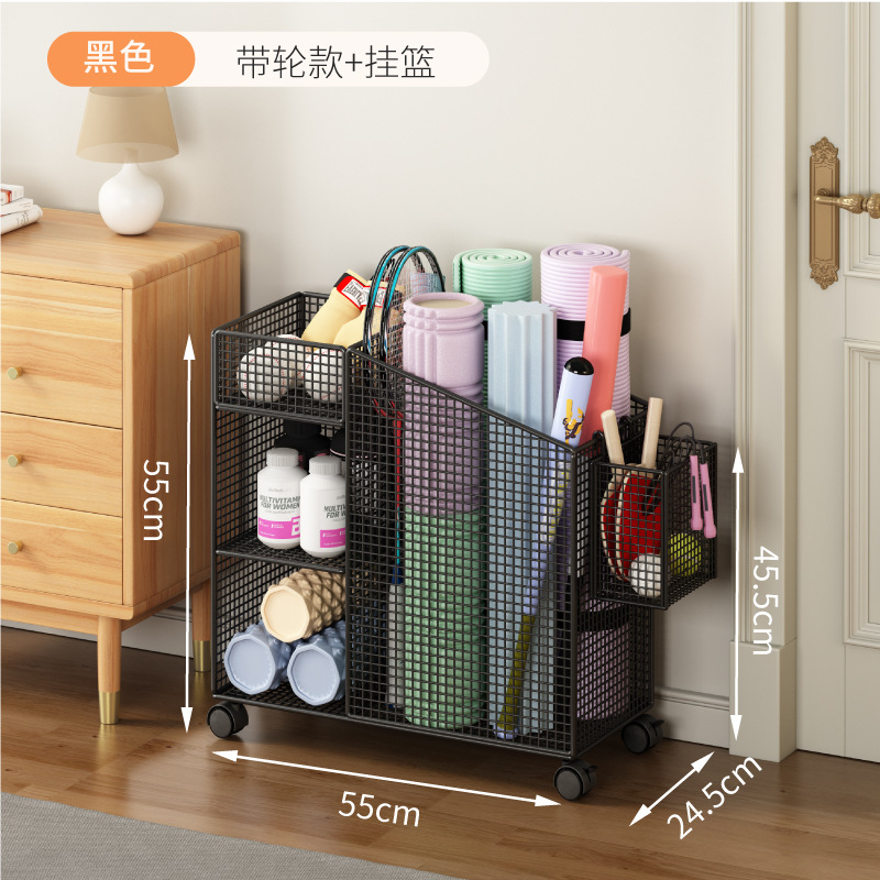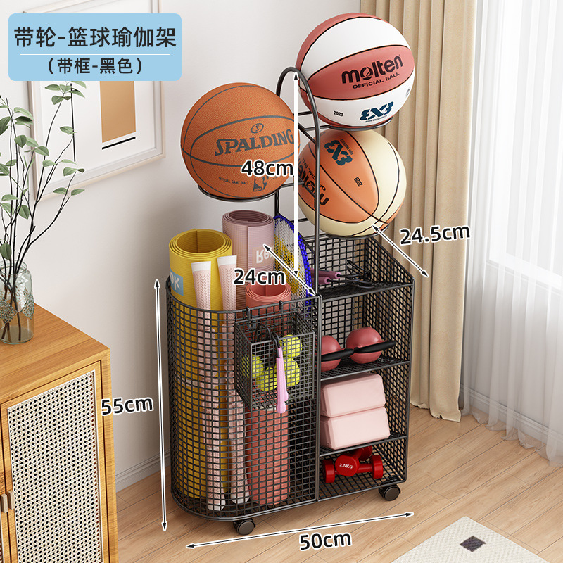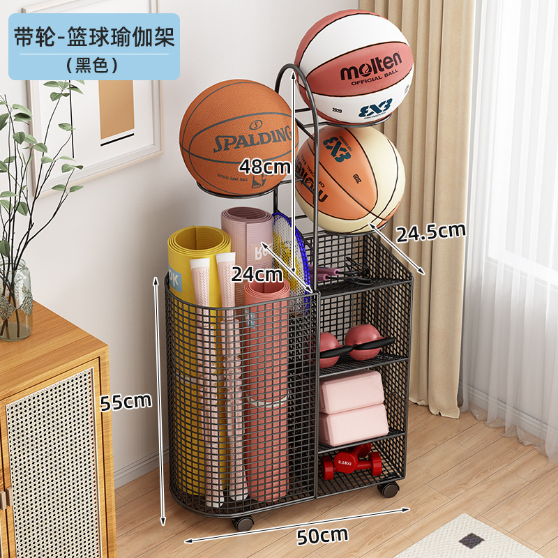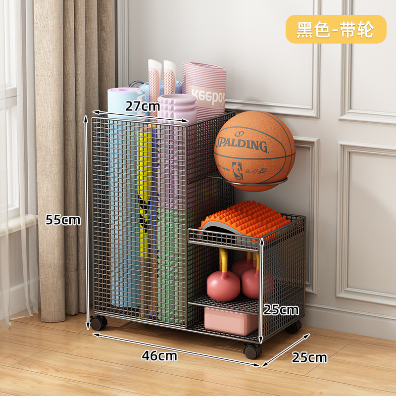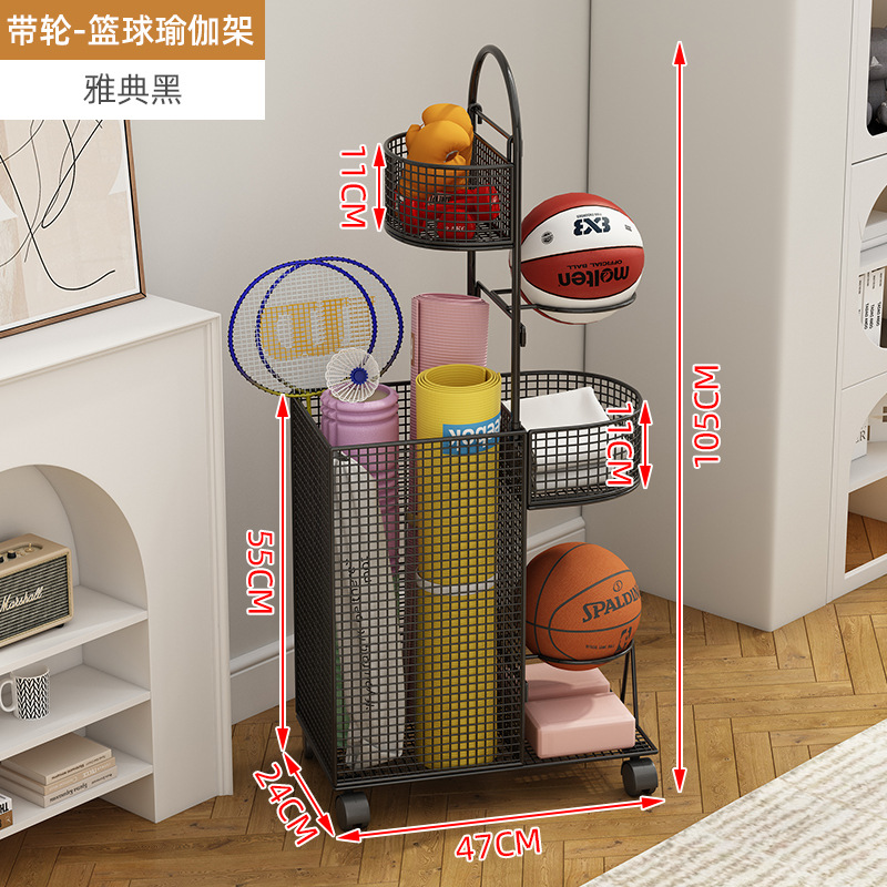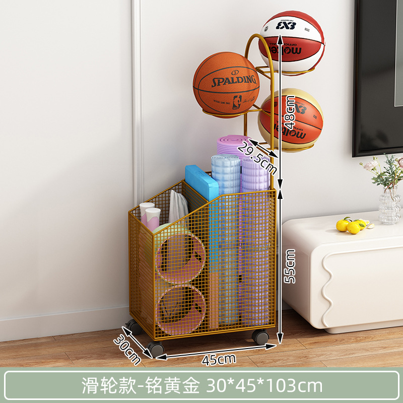 바퀴가 달린 요가 매트 보관 바구니 피트니스 스포츠 장비 보관 랙 가정용 이동식 장난감 농구 보관 랙스토어 가기