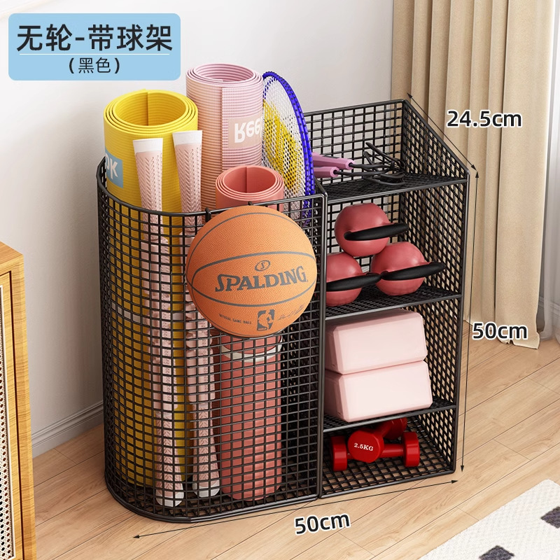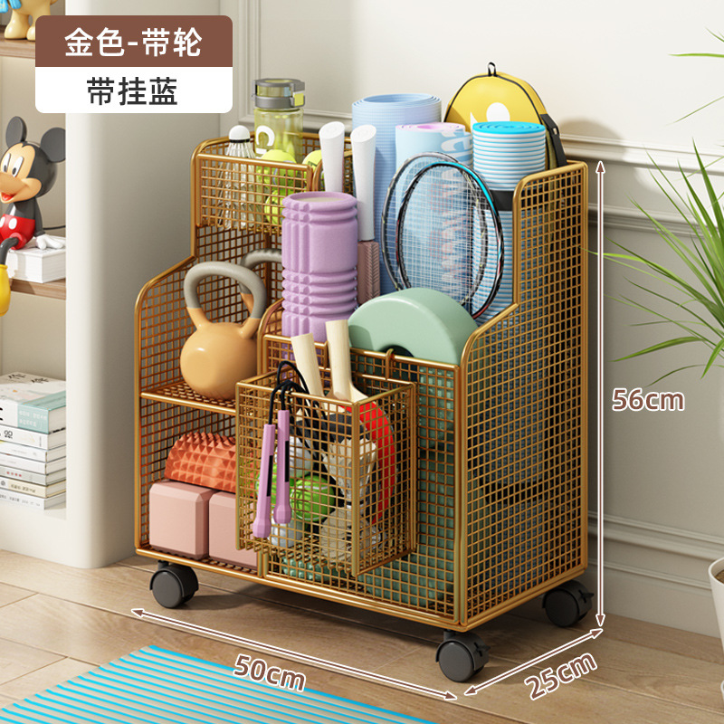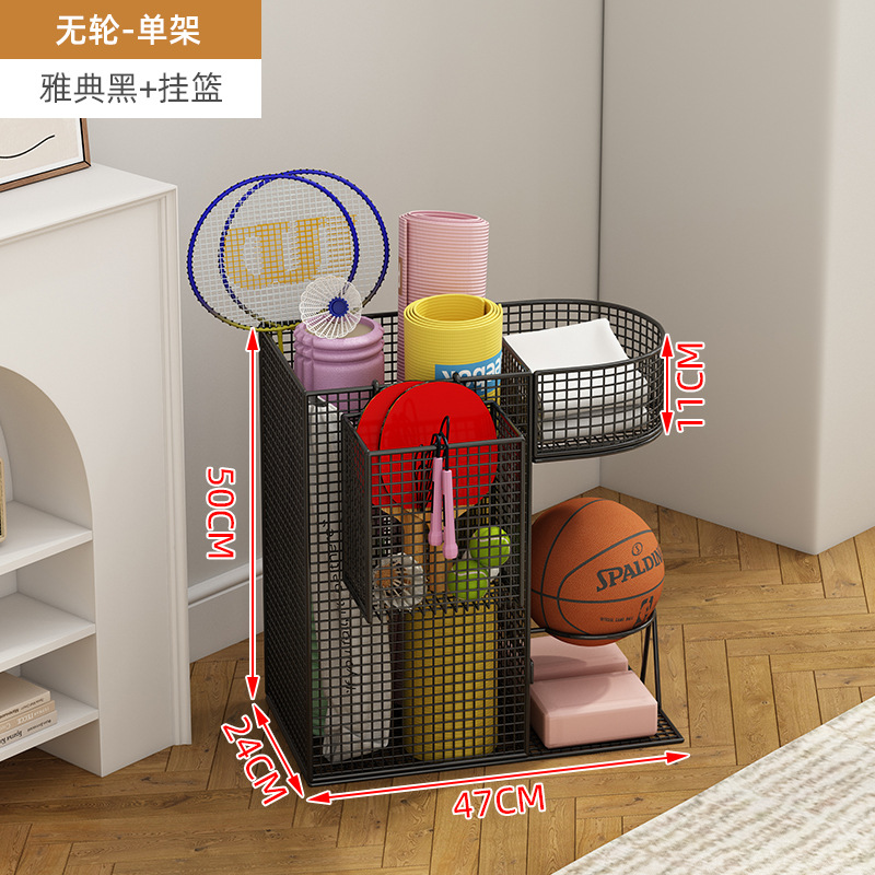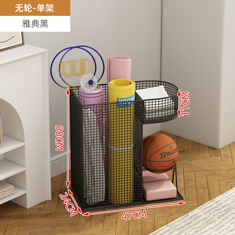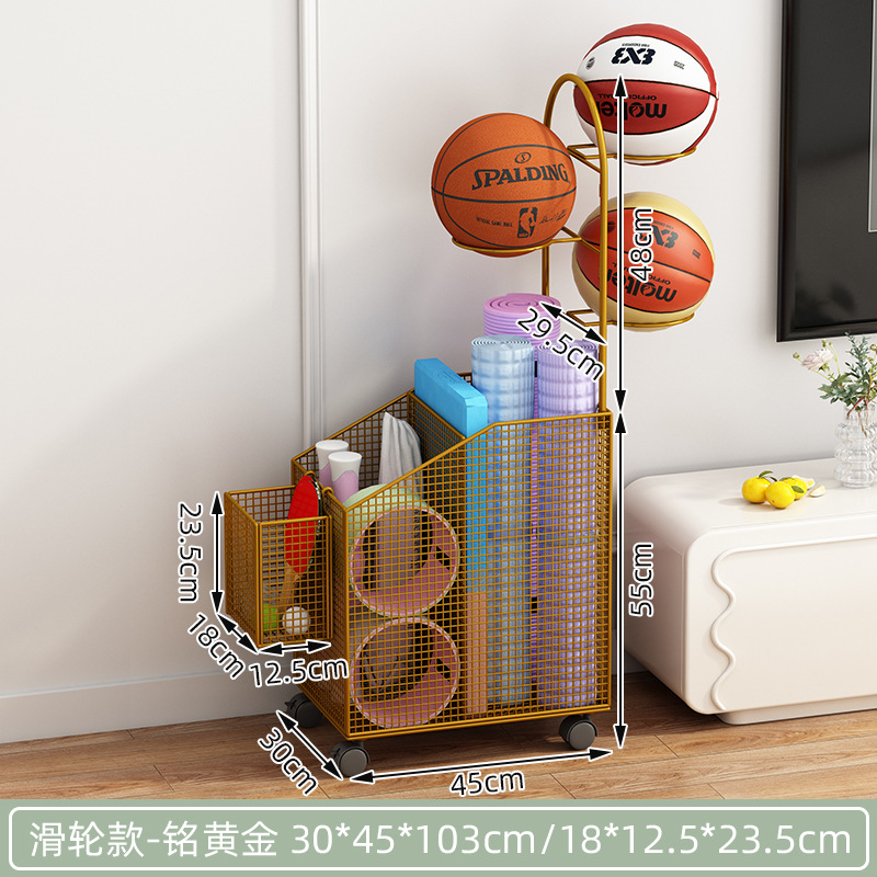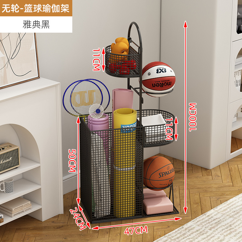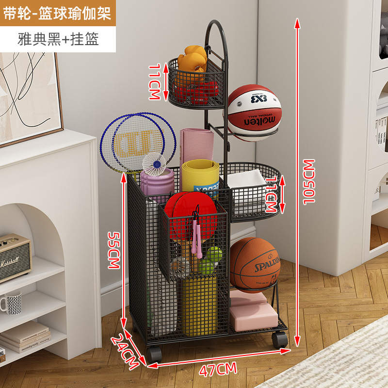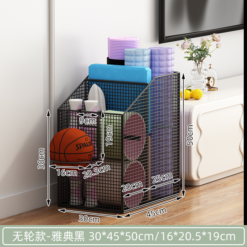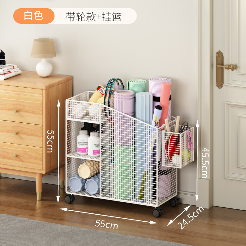 바퀴가 달린 요가 매트 보관 바구니 피트니스 스포츠 장비 보관 랙 가정용 이동식 장난감 농구 보관 랙스토어 가기