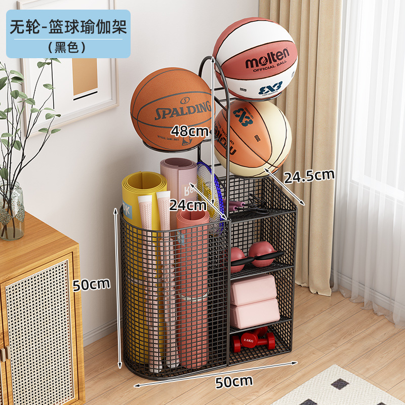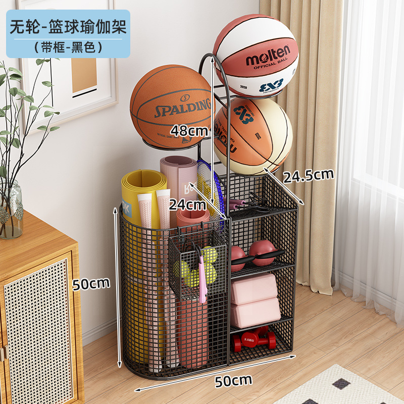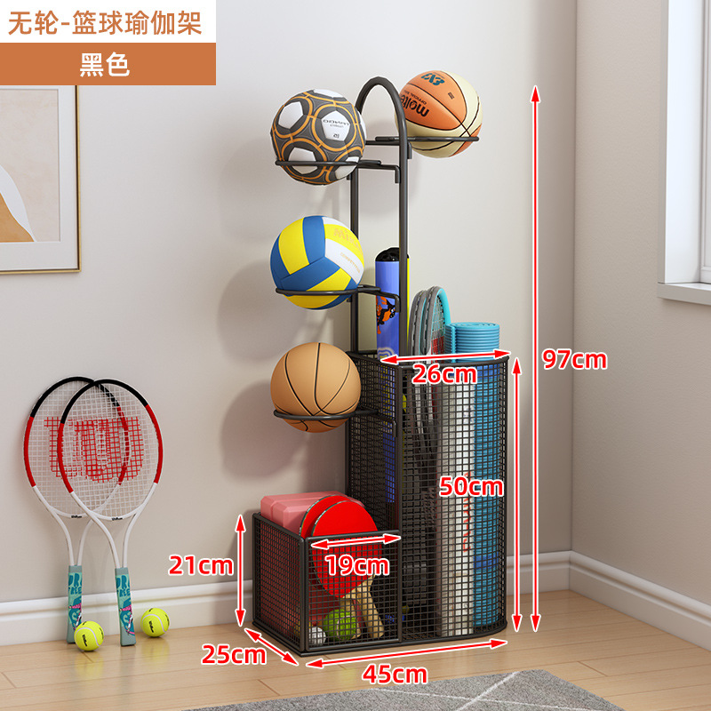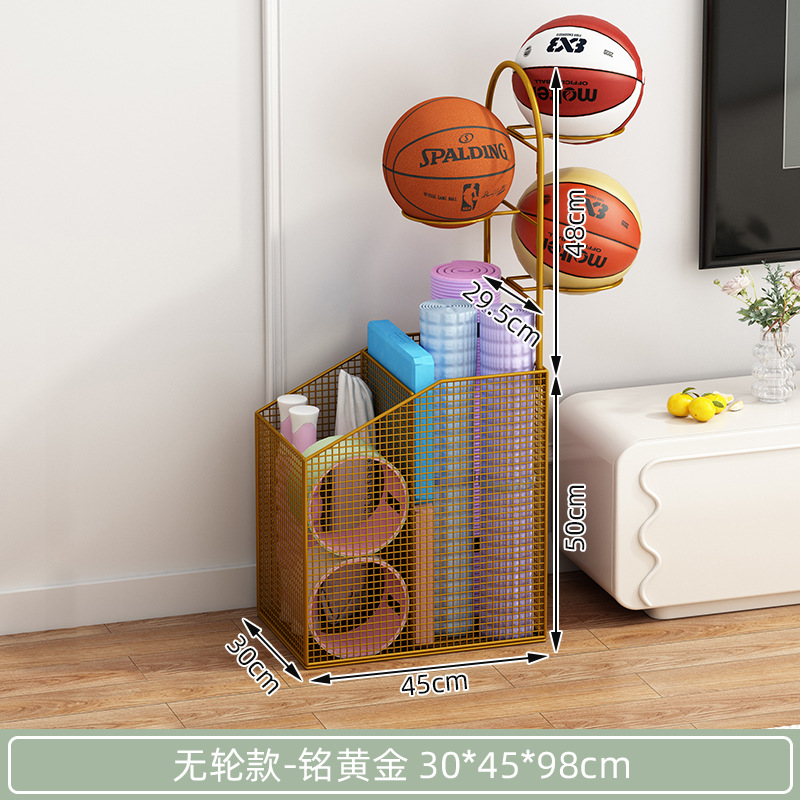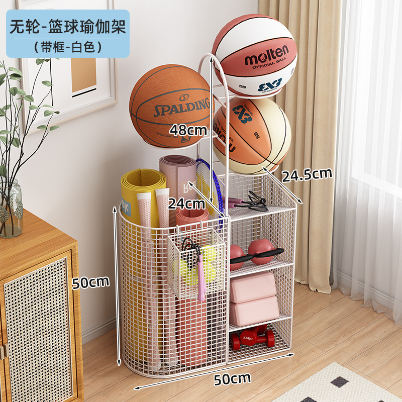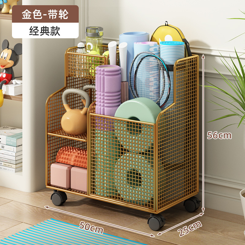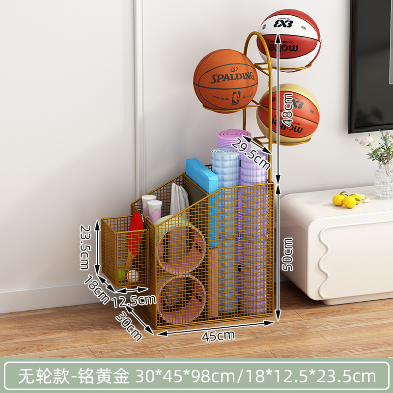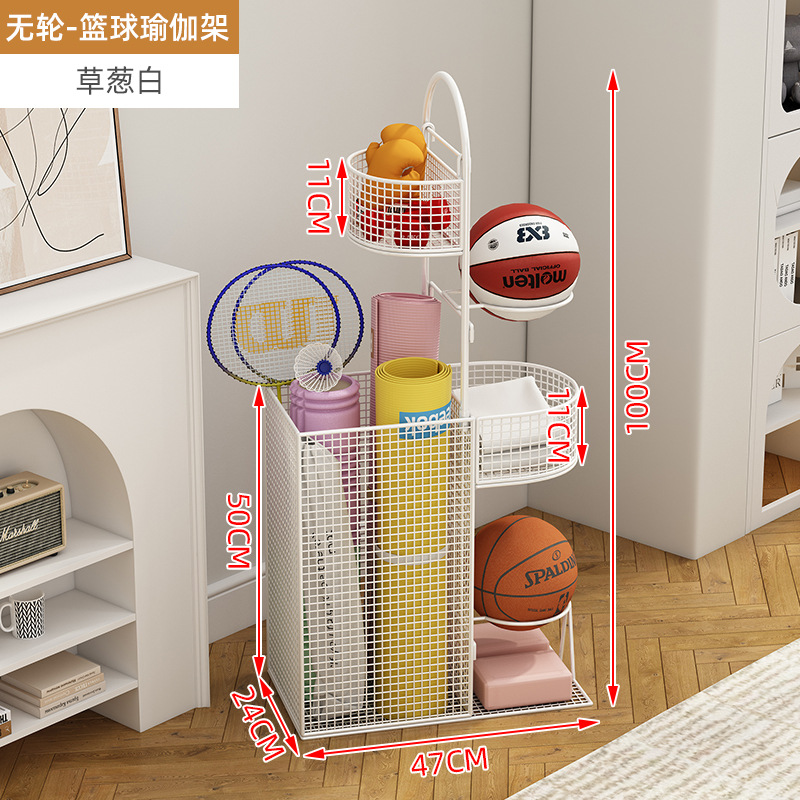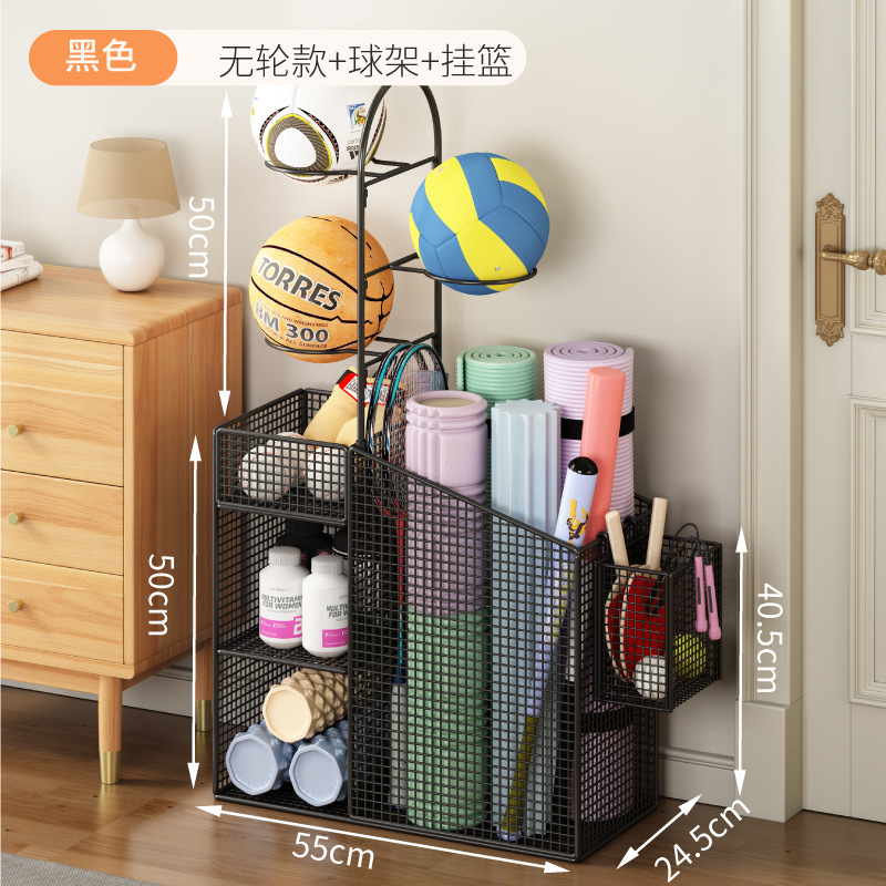 바퀴가 달린 요가 매트 보관 바구니 피트니스 스포츠 장비 보관 랙 가정용 이동식 장난감 농구 보관 랙스토어 가기