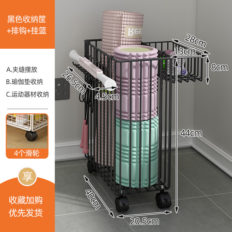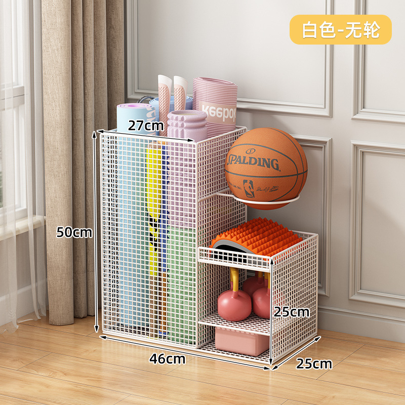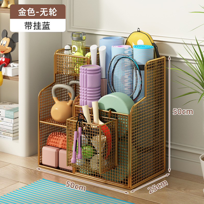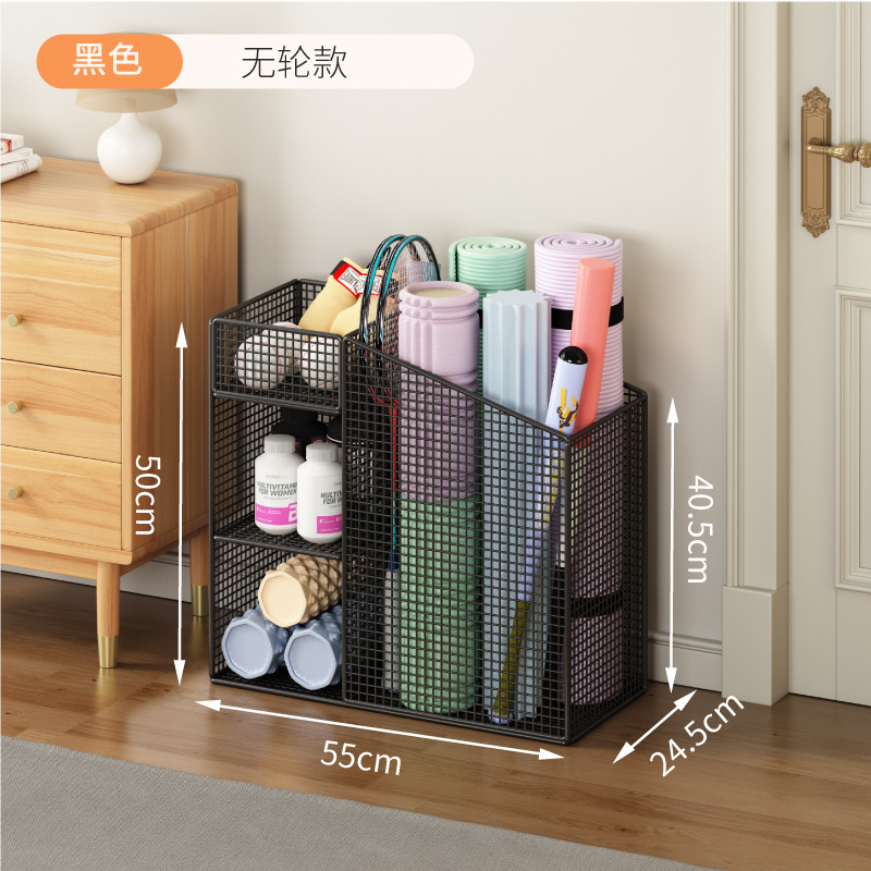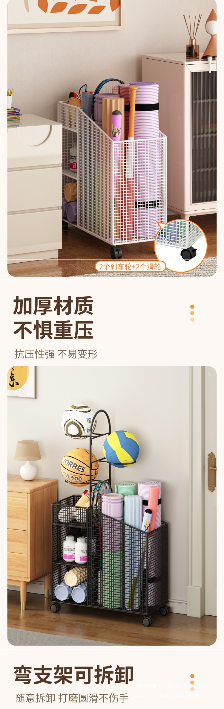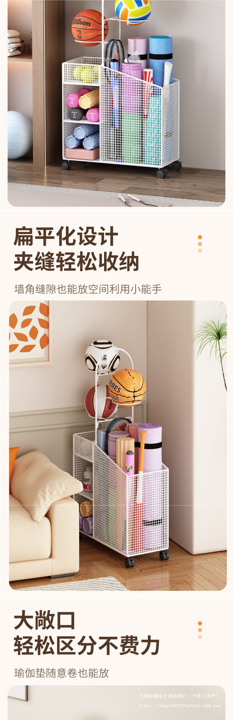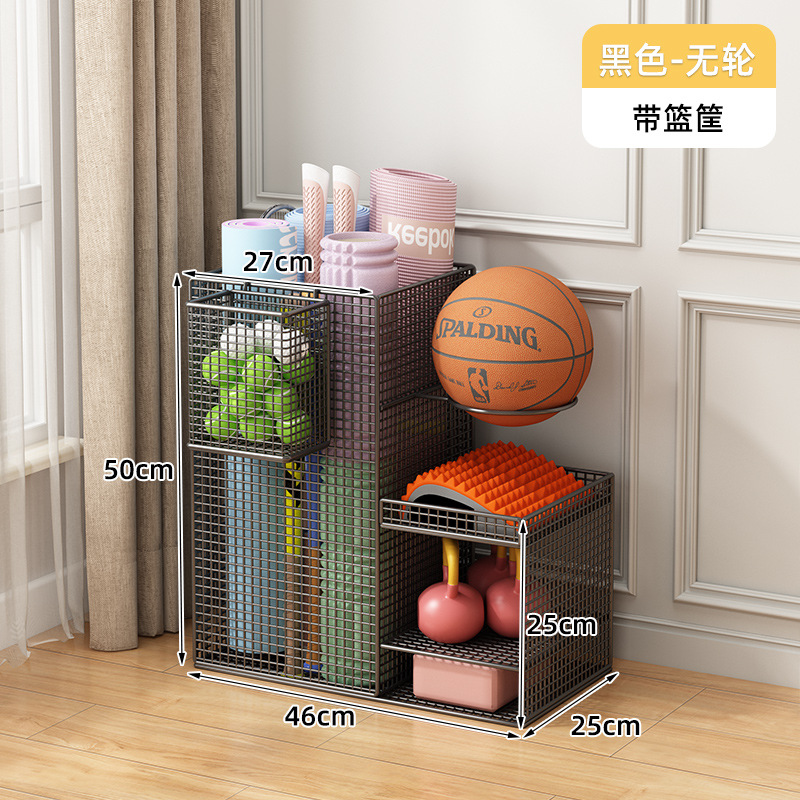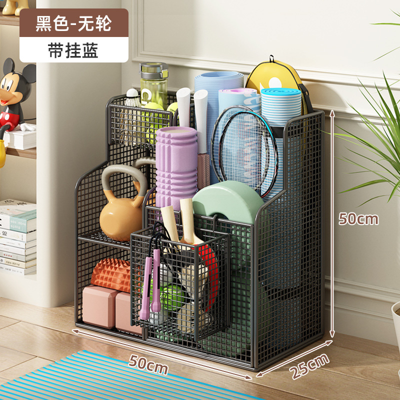바퀴가 달린 요가 매트 보관 바구니 피트니스 스포츠 장비 보관 랙 가정용 이동식 장난감 농구 보관 랙스토어 가기