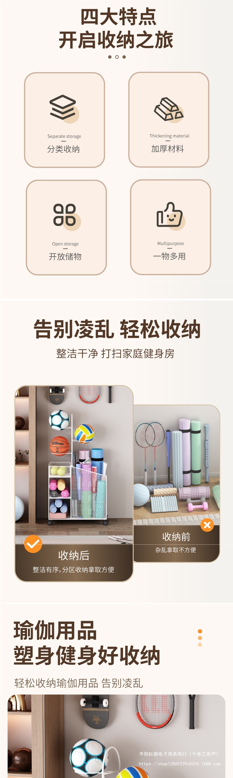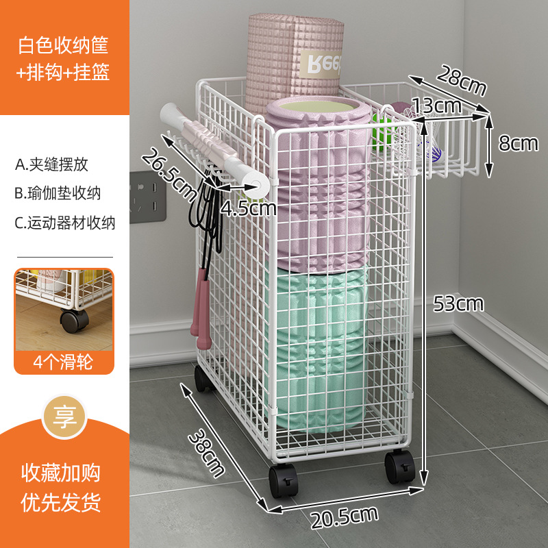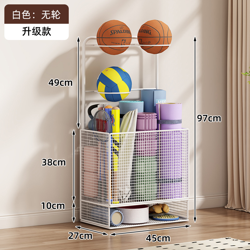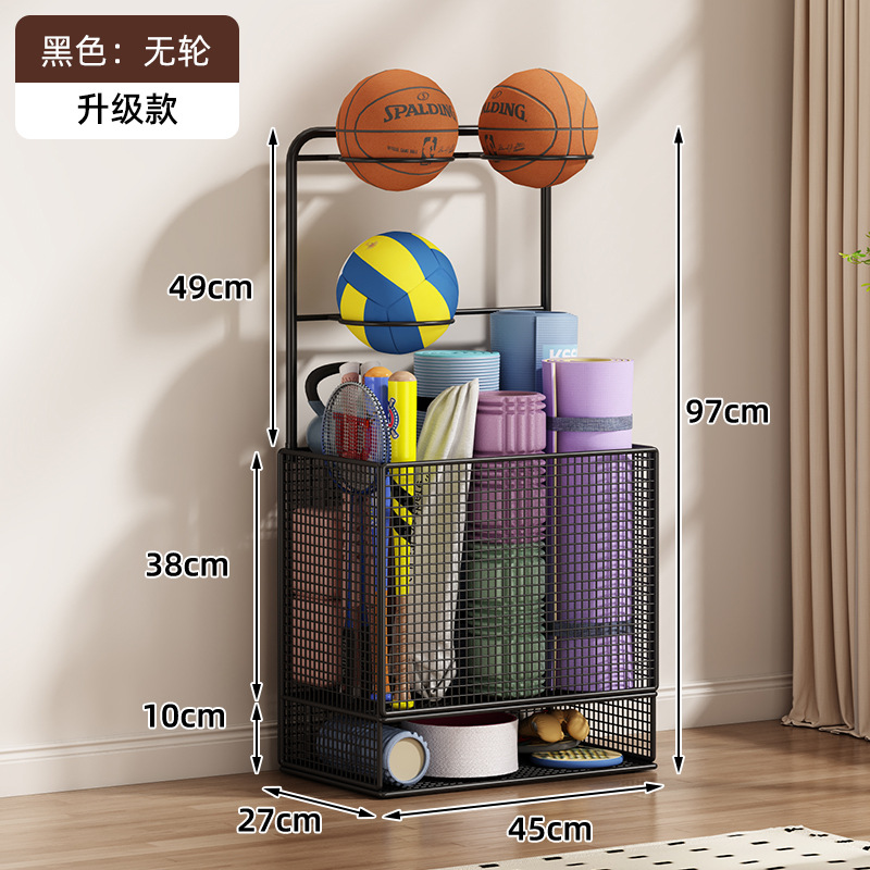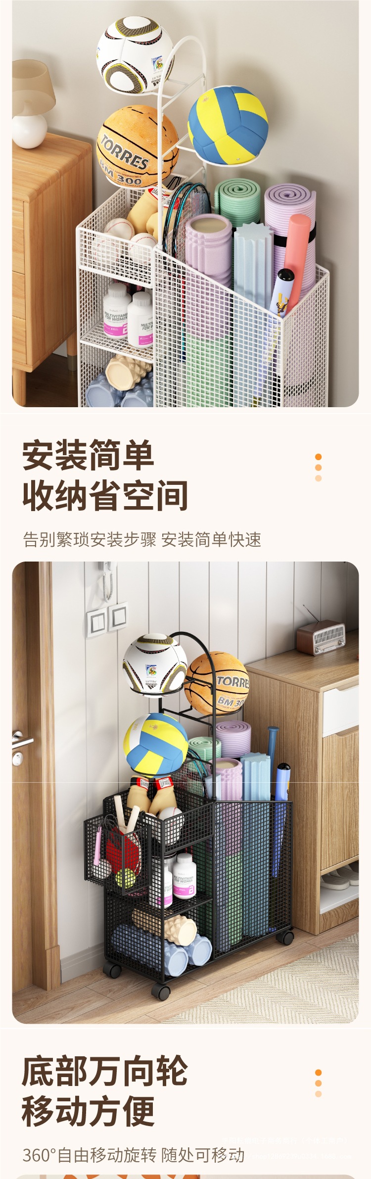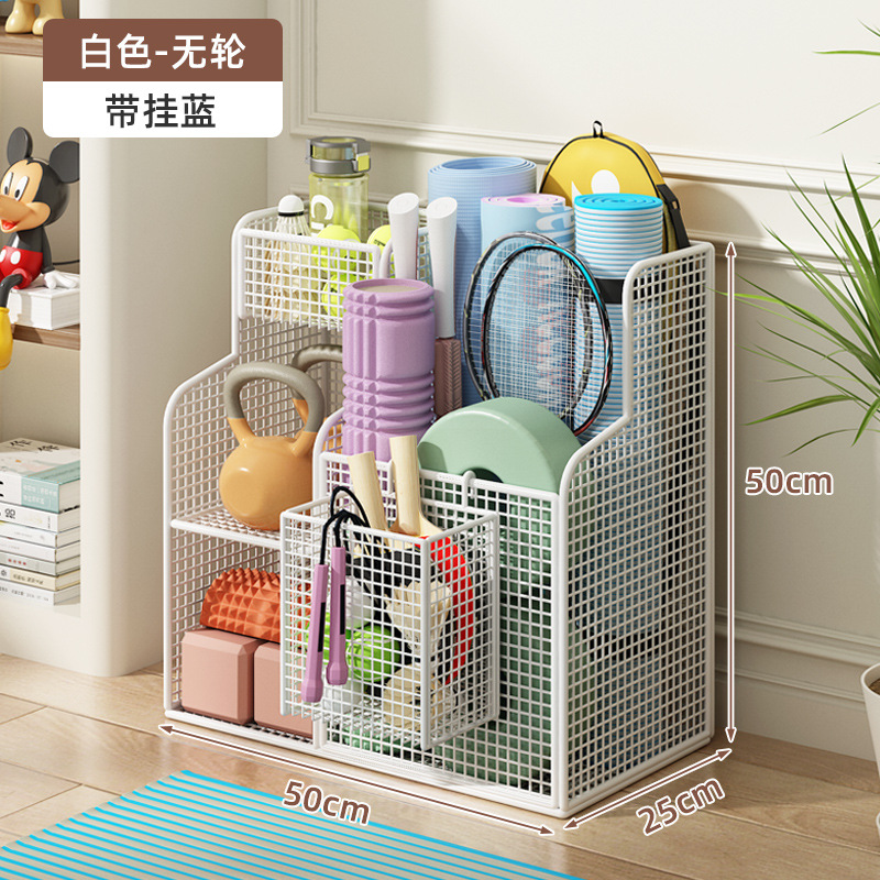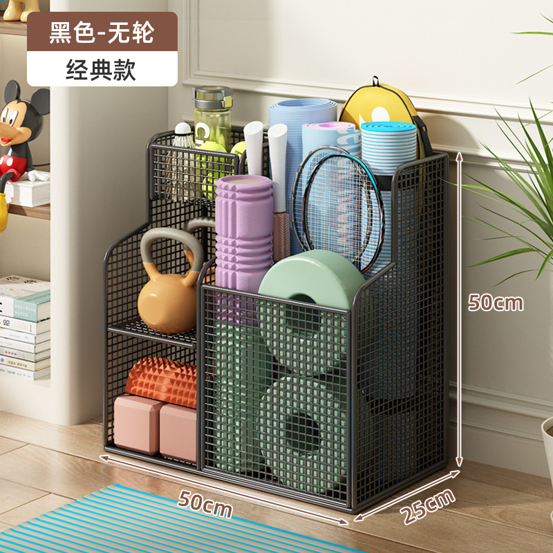 바퀴가 달린 요가 매트 보관 바구니 피트니스 스포츠 장비 보관 랙 가정용 이동식 장난감 농구 보관 랙스토어 가기