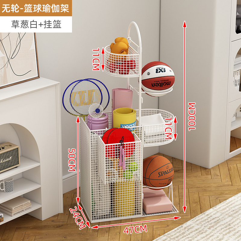 • 바퀴 없음-농구 요가 스탠드-잔디 흰색+걸이 바구니-F 스타일