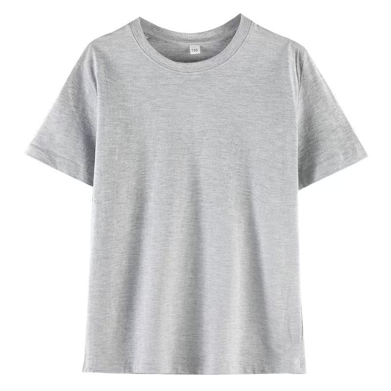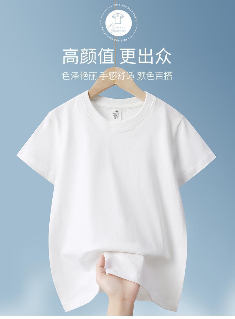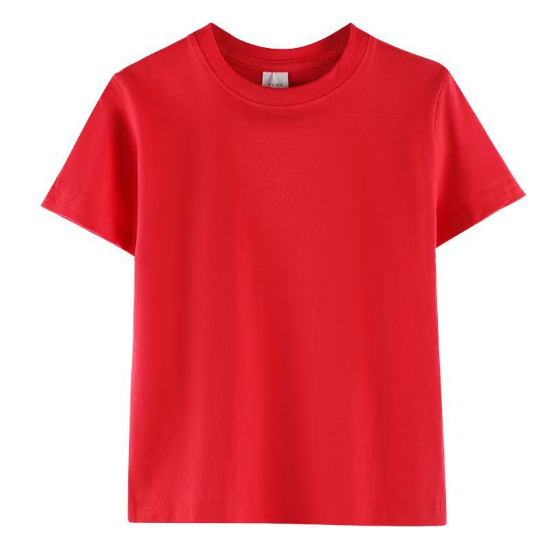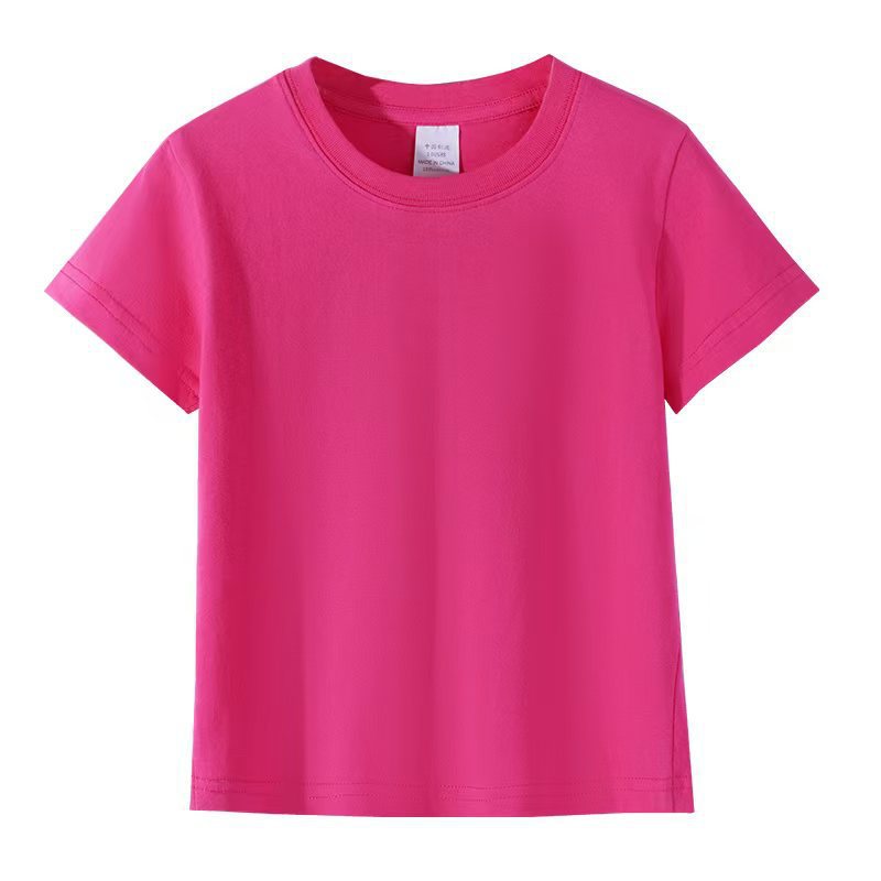로고가 인쇄된 빗질면 아동용 라운드 넥 티셔츠, 중대형 아동용 캔디 컬러 반팔 유치원 교복, 인쇄 가능