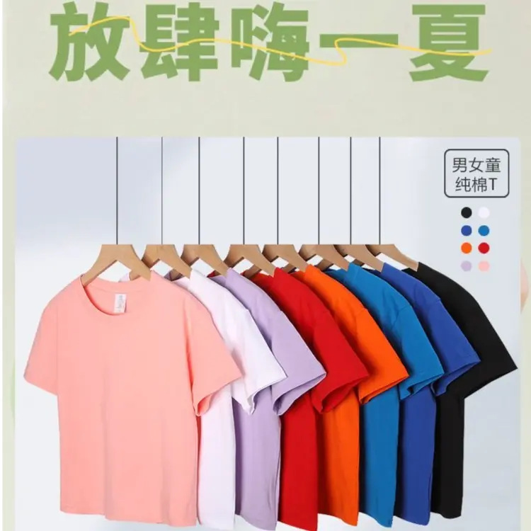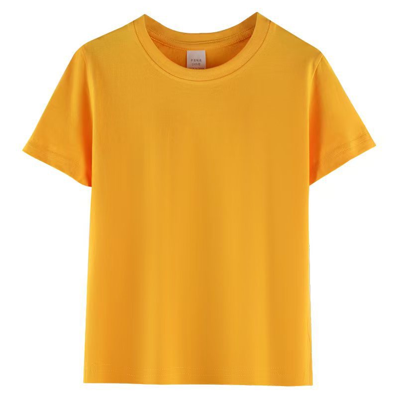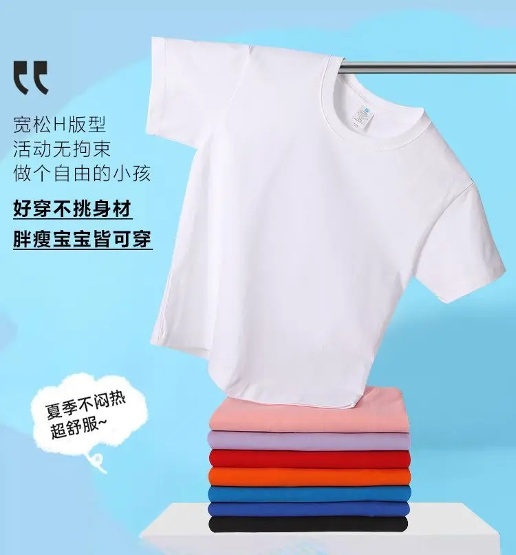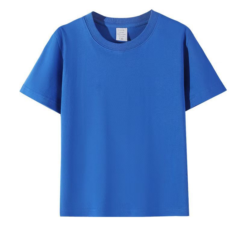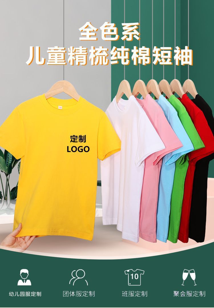 로고가 인쇄된 빗질면 아동용 라운드 넥 티셔츠, 중대형 아동용 캔디 컬러 반팔 유치원 교복, 인쇄 가능스토어 가기