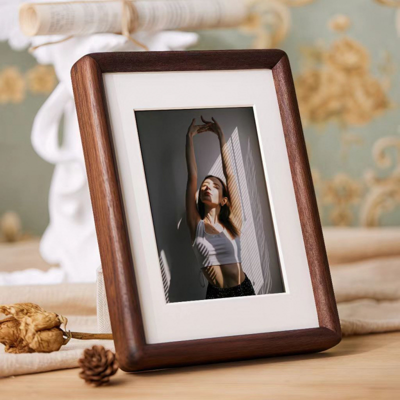 블랙 호두 사진 프레임 고급 단단한 나무 테이블 모양 사진 프레임 벽걸이 A4 장식품 복고풍 사각형 데스크탑