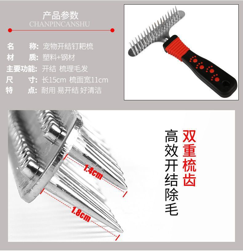 • 이중 이빨 손톱 갈퀴 빗 + 애완동물 매듭 빗 [특가 세트]