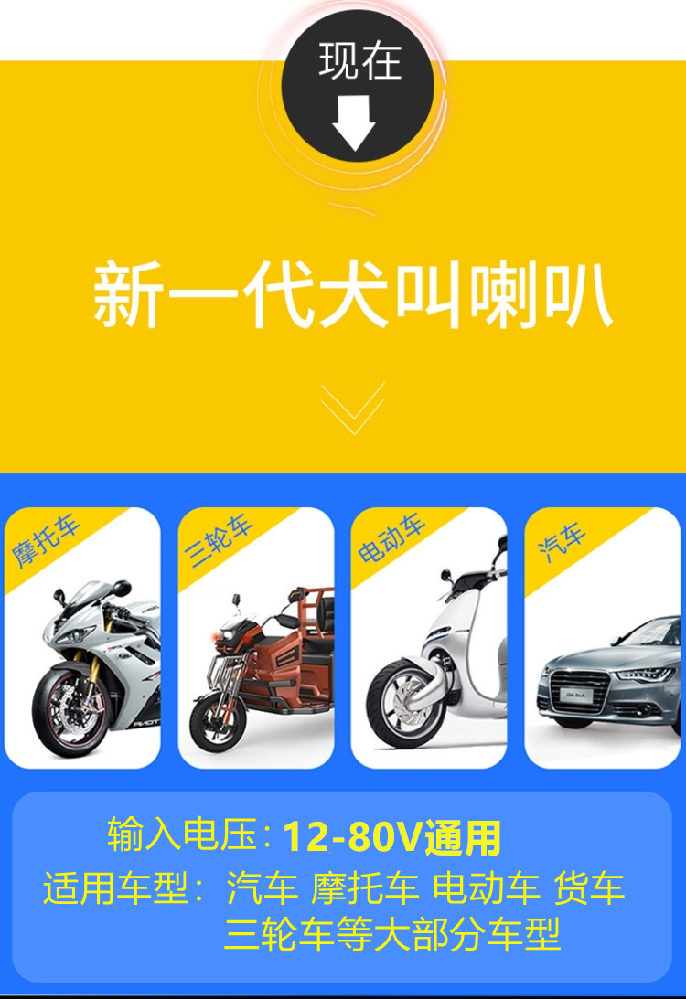 개 짖는 자동차 경적 12V24V60v 범용 개 짖는 소리 오토바이 맞춤형 역방향 음성 경적스토어 가기