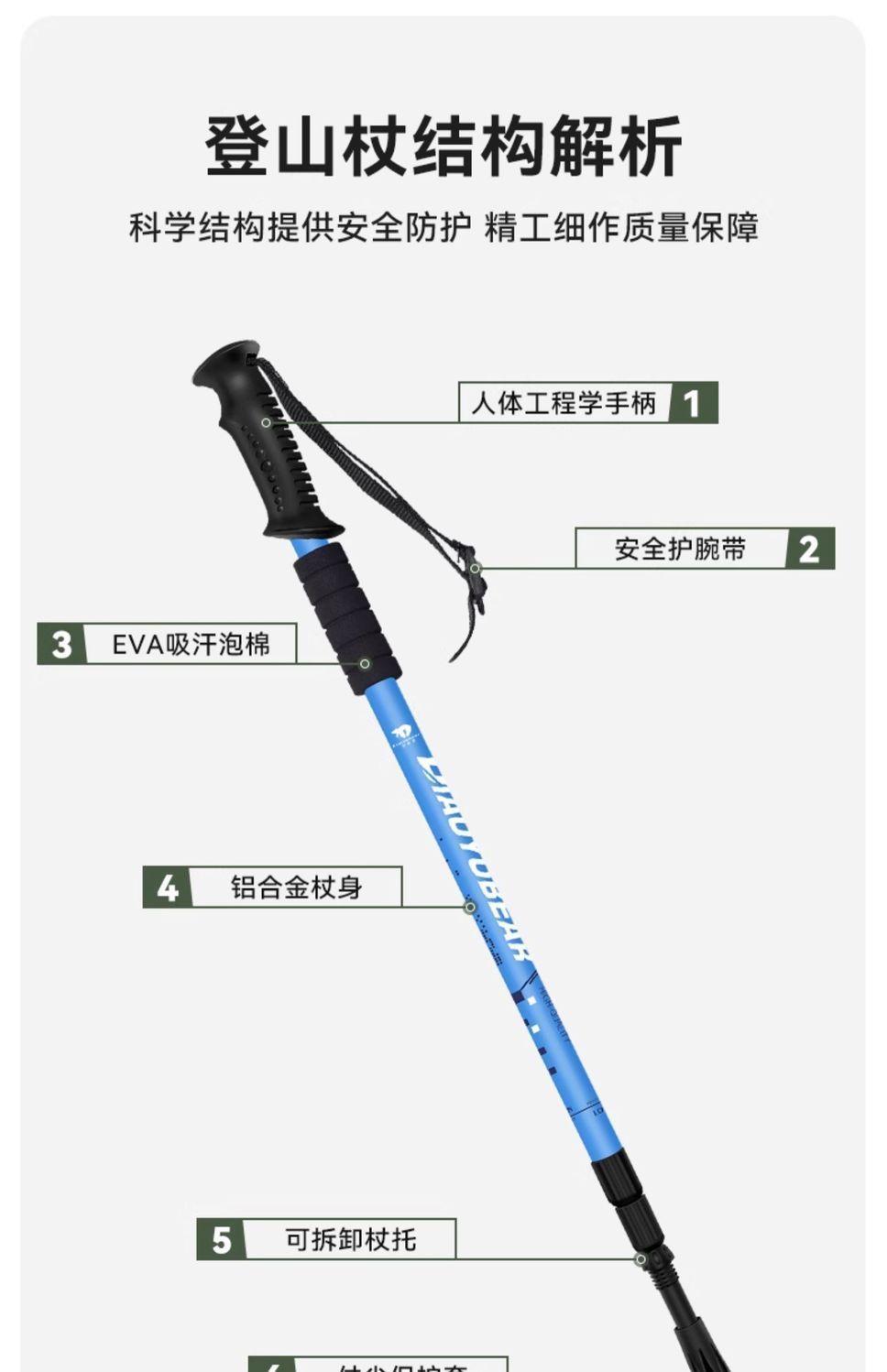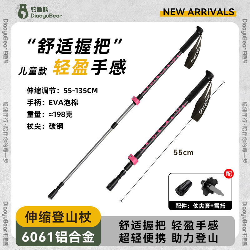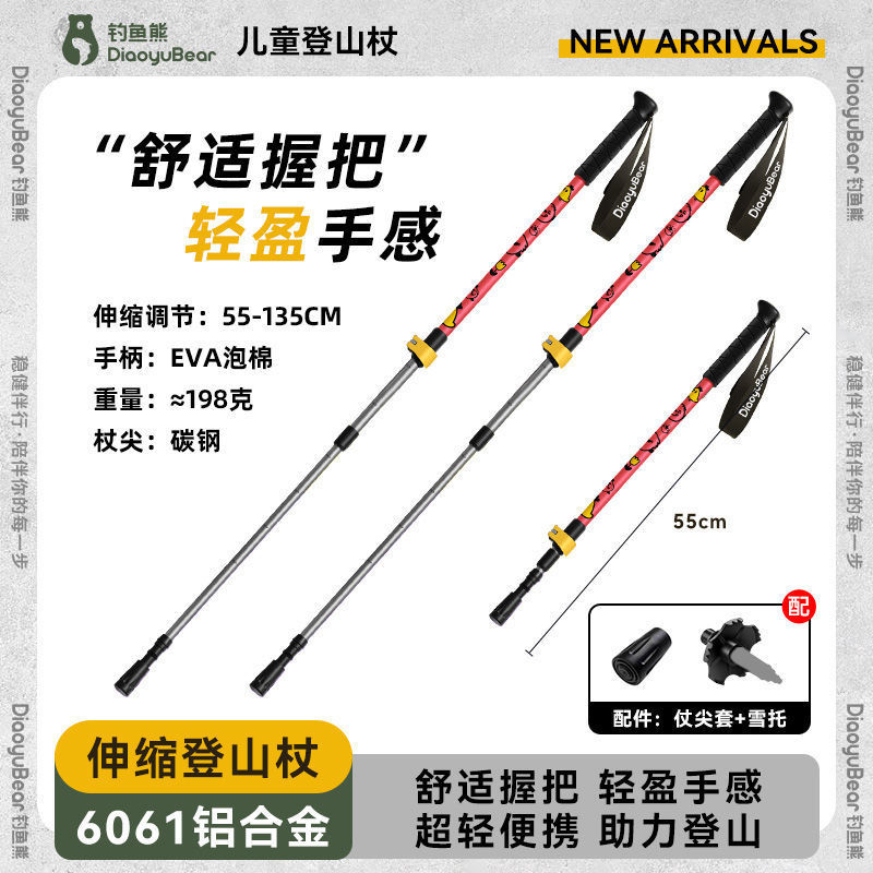 S1A 낚시 곰 어린이 트레킹 스틱 전문 야외 남성과 여성 하이킹 스틱 초경량 텔레스코픽 다기능 등산 스틱