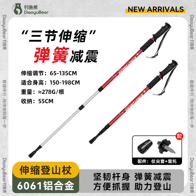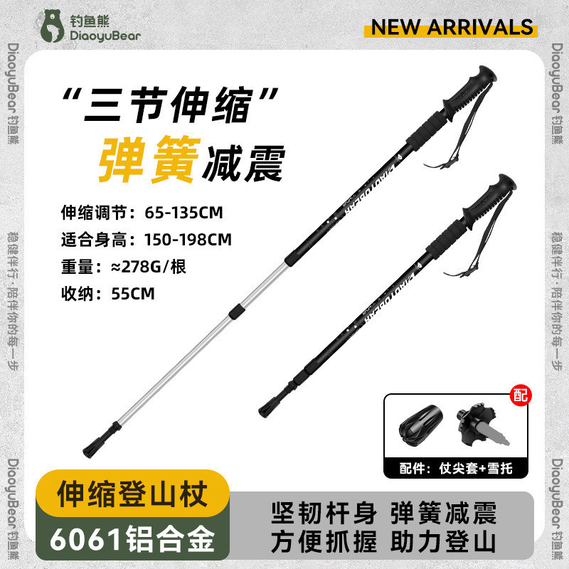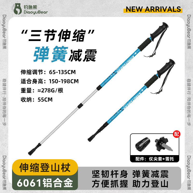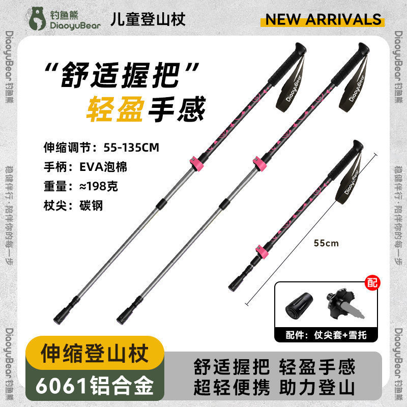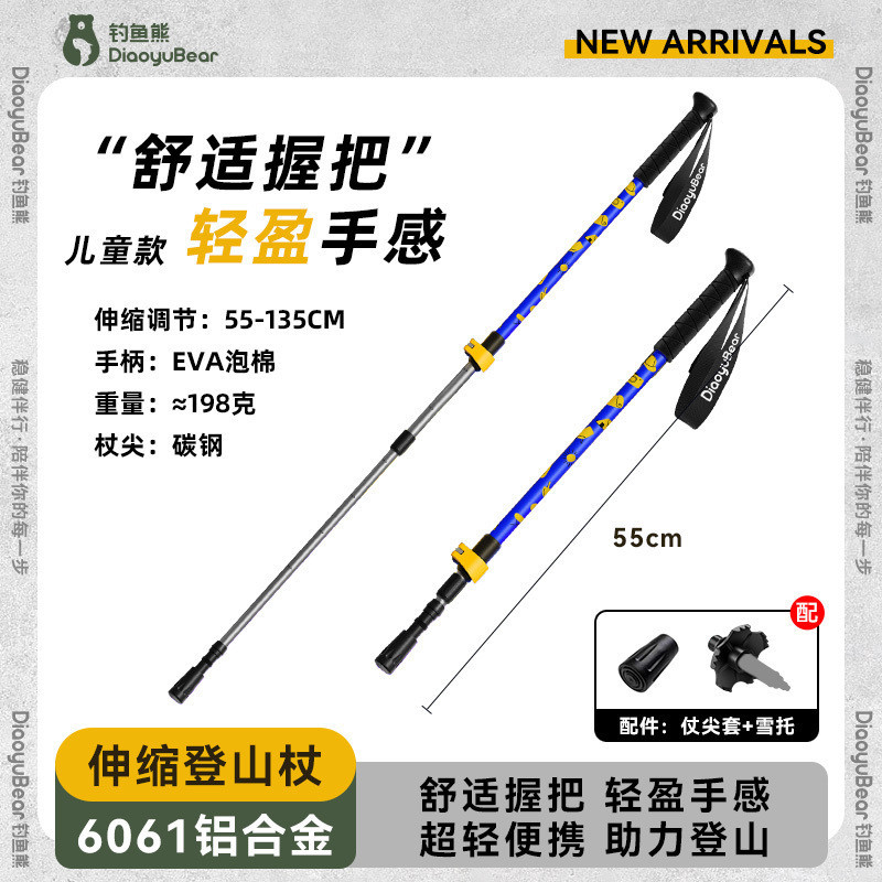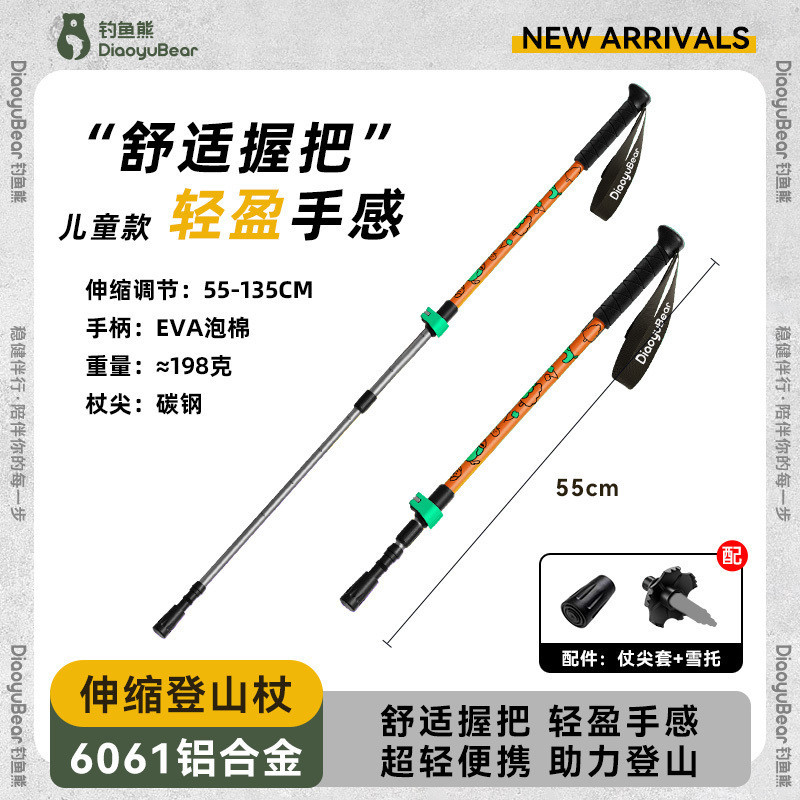 S1A 낚시 곰 어린이 트레킹 스틱 전문 야외 남성과 여성 하이킹 스틱 초경량 텔레스코픽 다기능 등산 스틱스토어 가기