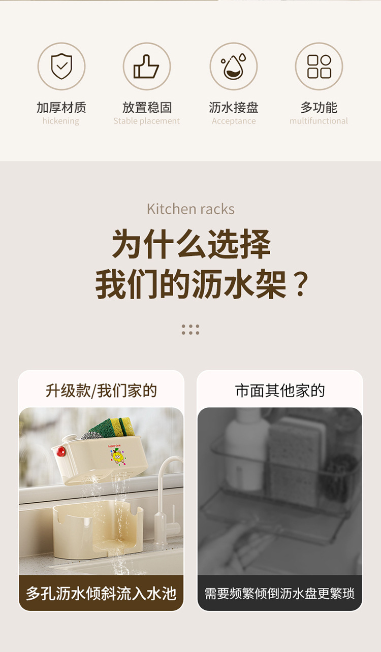 싱크대 배수구 보관함 주방 스펀지 걸레 배수구 걸이 식기 선반 조리대 대용량 걸레 식기 세척 보관함스토어 가기