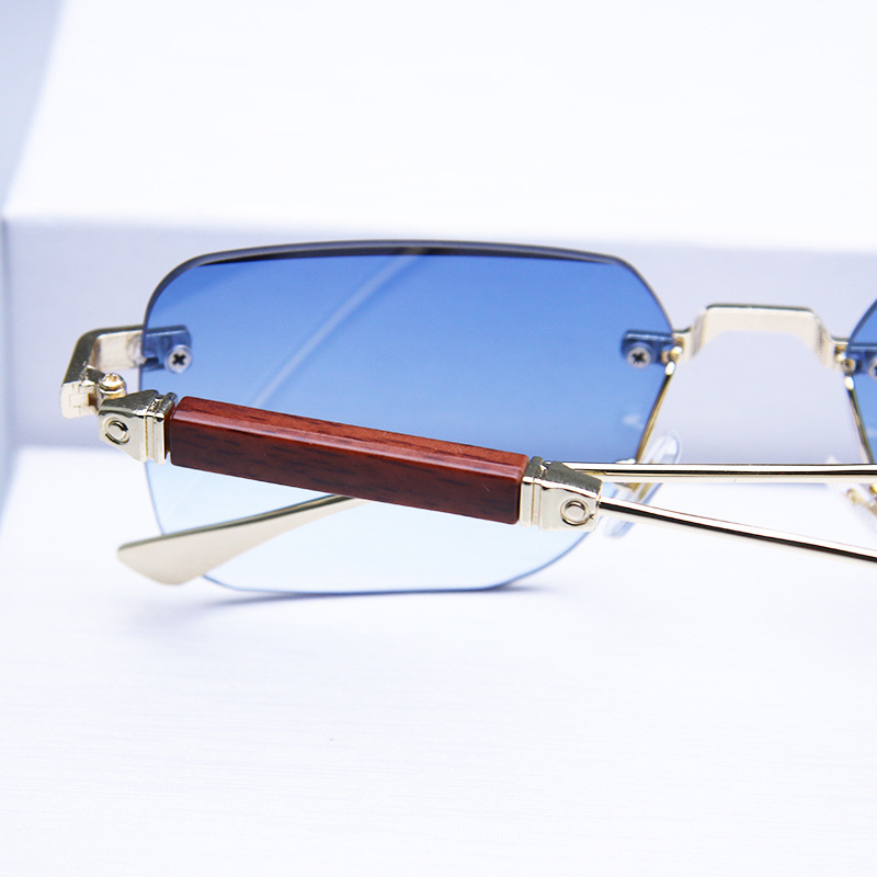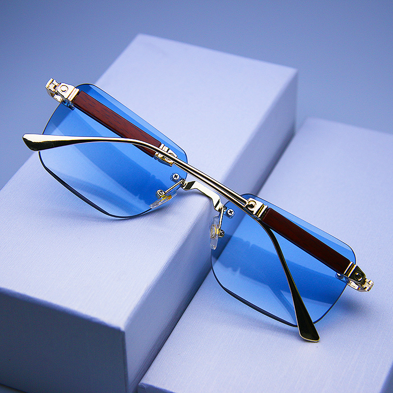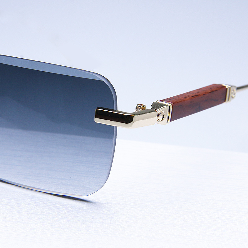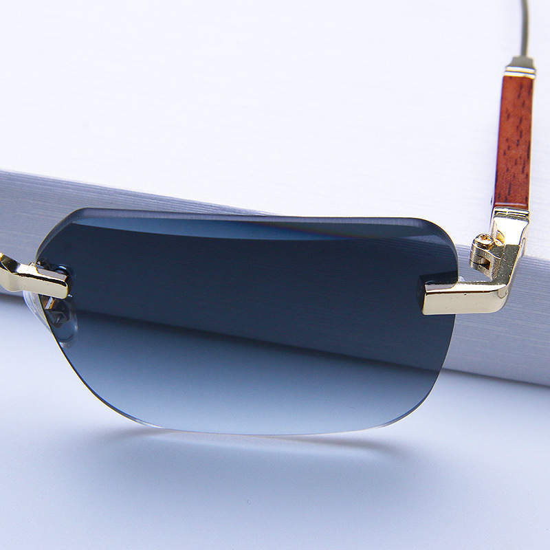 새로운 프레임리스 컷팅 선글라스 유럽 및 미국 패션 트렌드 나무결 그라데이션 컬러 선글라스 사각형 안경 해외 직구스토어 가기