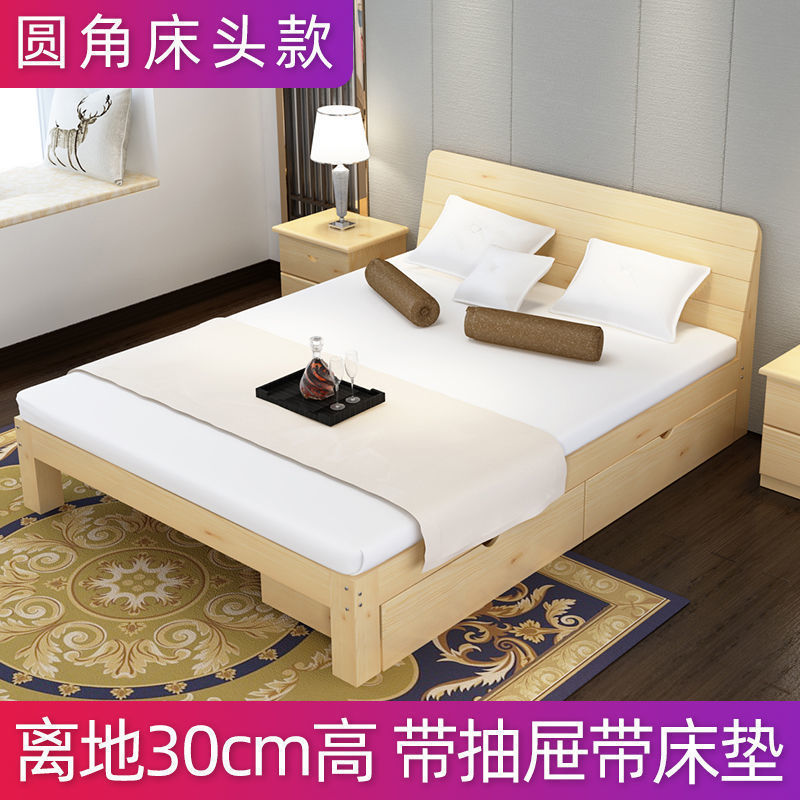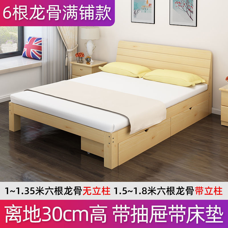 원목 침대 1.5m 소나무 더블 침대 1.8m 경제적인 모던 심플 임대실 심플 싱글 침대 프레임 1개