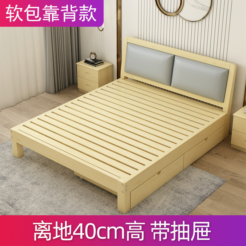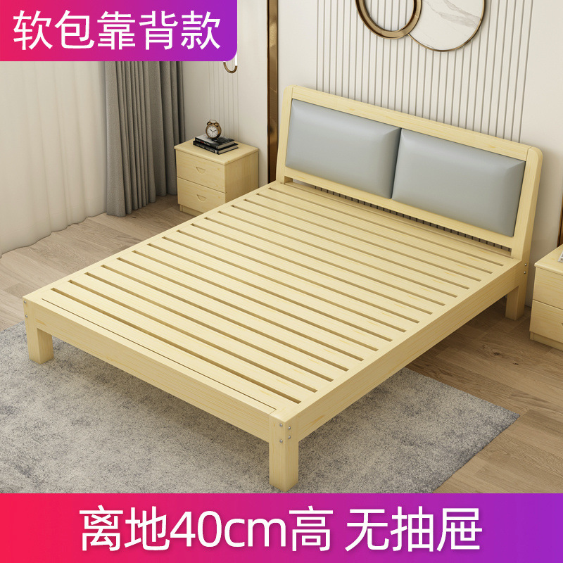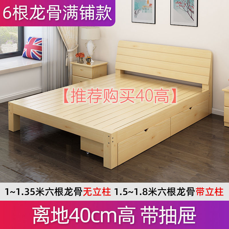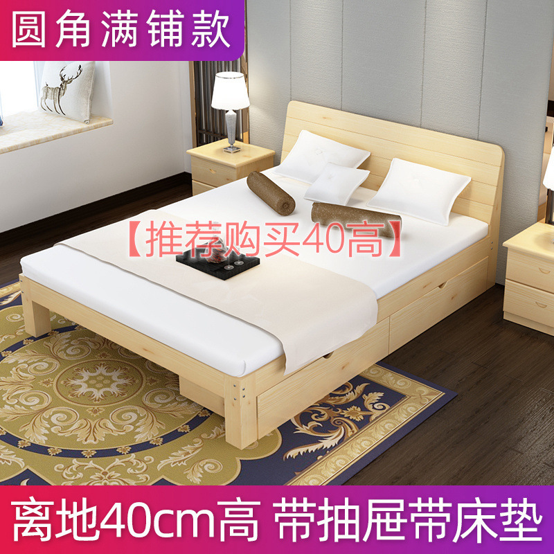 원목 침대 1.5m 소나무 더블 침대 1.8m 경제적인 모던 심플 임대실 심플 싱글 침대 프레임 1개스토어 가기