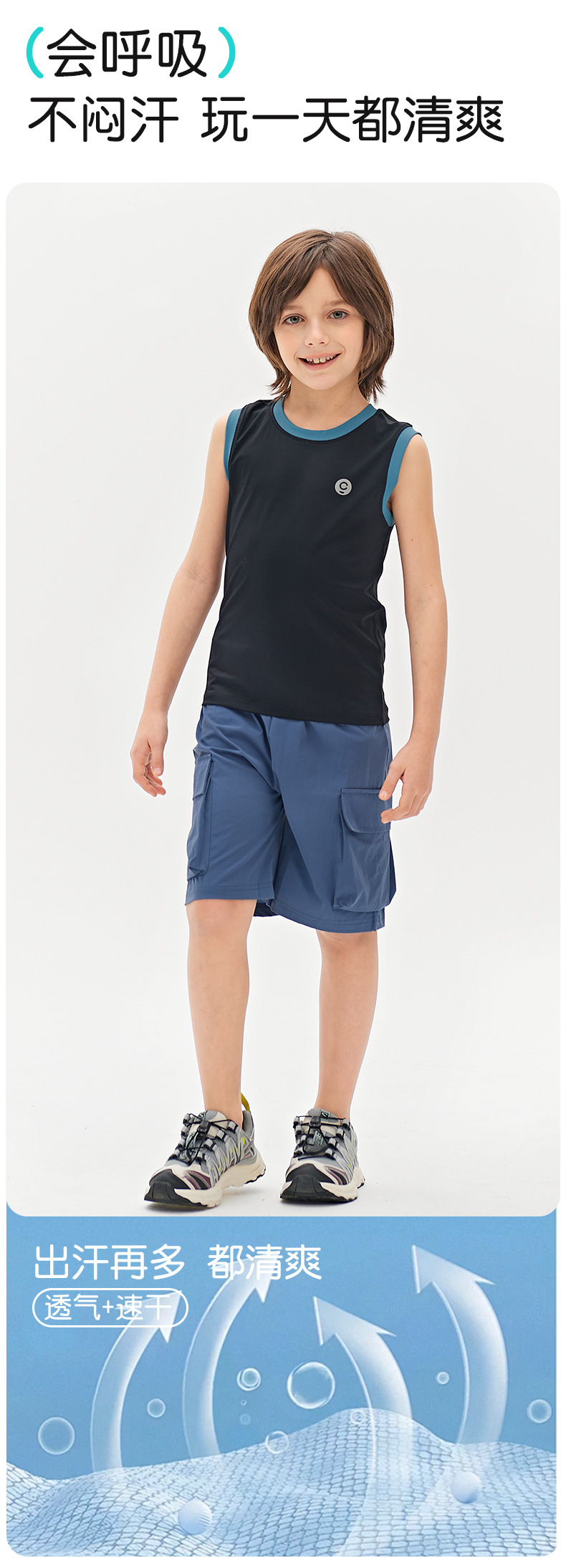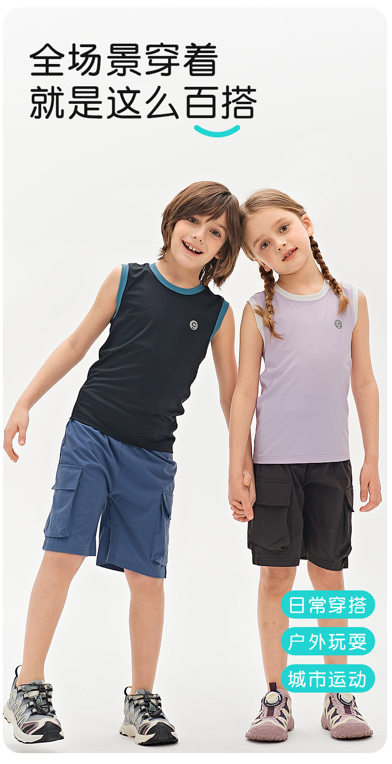 남성과 여성을 위한 새로운 아동복, 통기성이 뛰어난 스포츠 조끼, 아동용 여름 시원한 민소매 상의, 신축성 있고 편안함스토어 가기