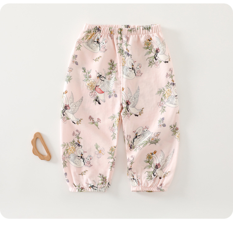 Anyang 유아 및 아동 의류 아기 모기 방지 바지 대나무 섬유 거즈 얇은 바지 소년과 소녀를위한 시원한 에어컨 레깅스