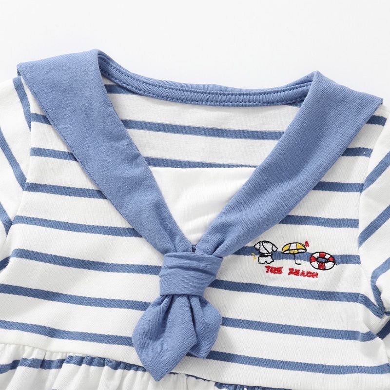 여자 여름 드레스 아기 유행 어린이 맞춤형 유행 해군 줄무늬 만화 수 놓은 편지 공주 드레스