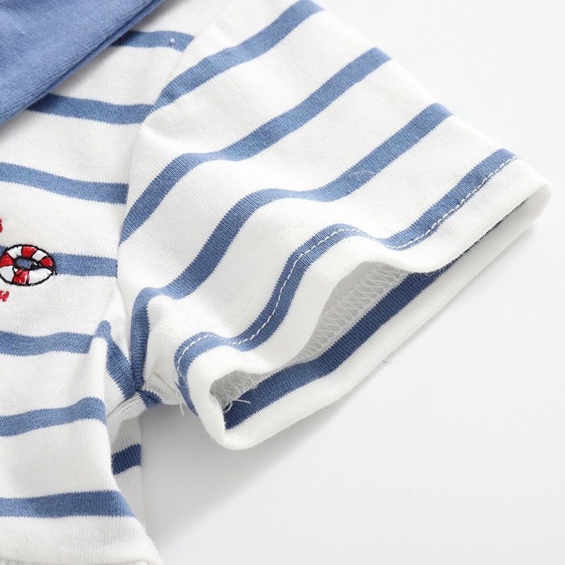 여자 여름 드레스 아기 유행 어린이 맞춤형 유행 해군 줄무늬 만화 수 놓은 편지 공주 드레스스토어 가기
