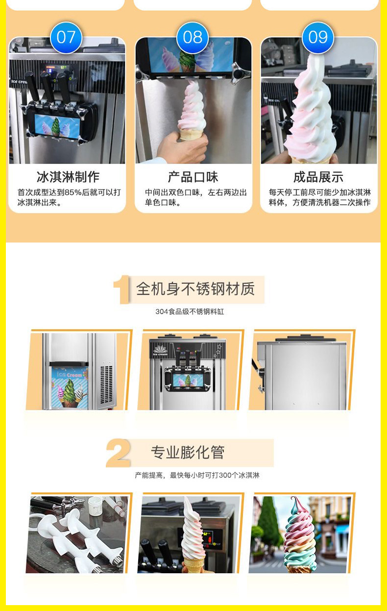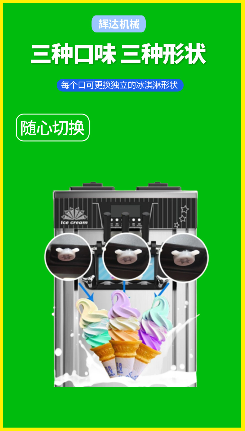 탁상형 소프트 아이스크림 기계, 상업용 아이스크림 기계, 완전 자동 아이스크림 기계, 3헤드 소형 콘 기계