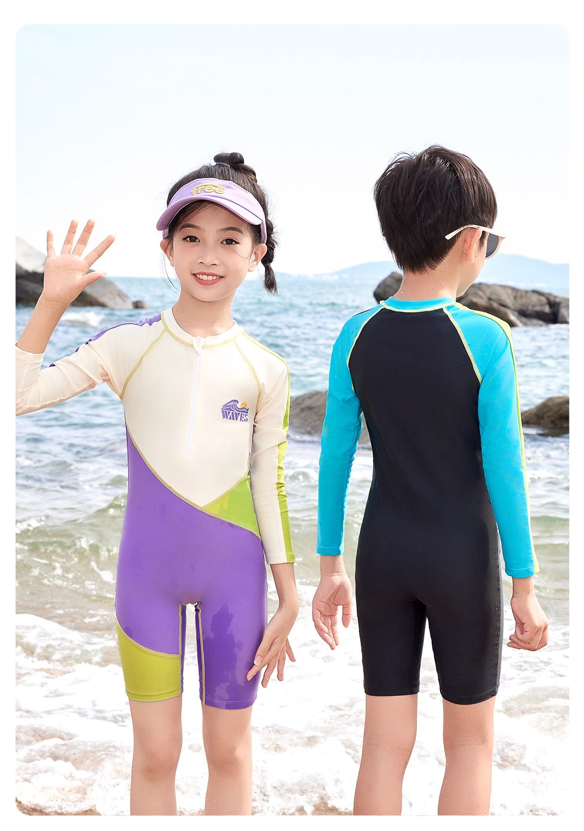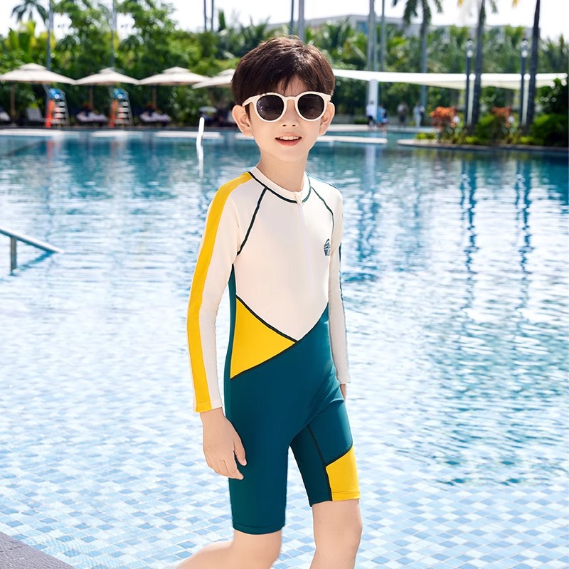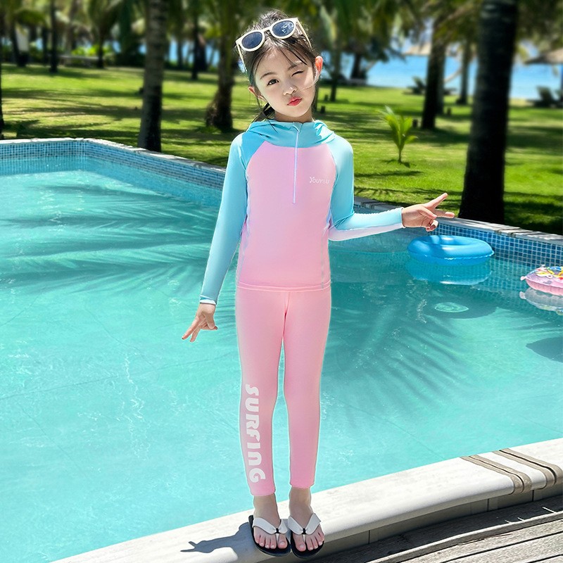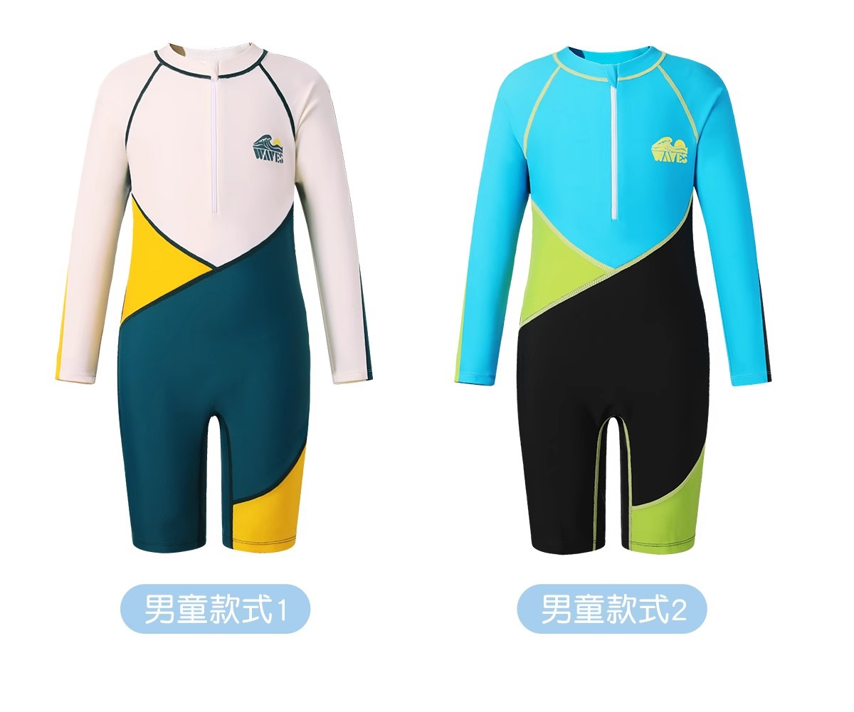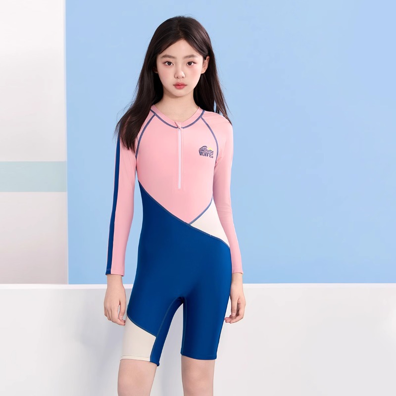 여성용 아동 수영복 2025 새로운 원피스 긴팔 반바지 중대형 어린이 전문 수영 훈련 자외선 차단제 속건성 수영복스토어 가기